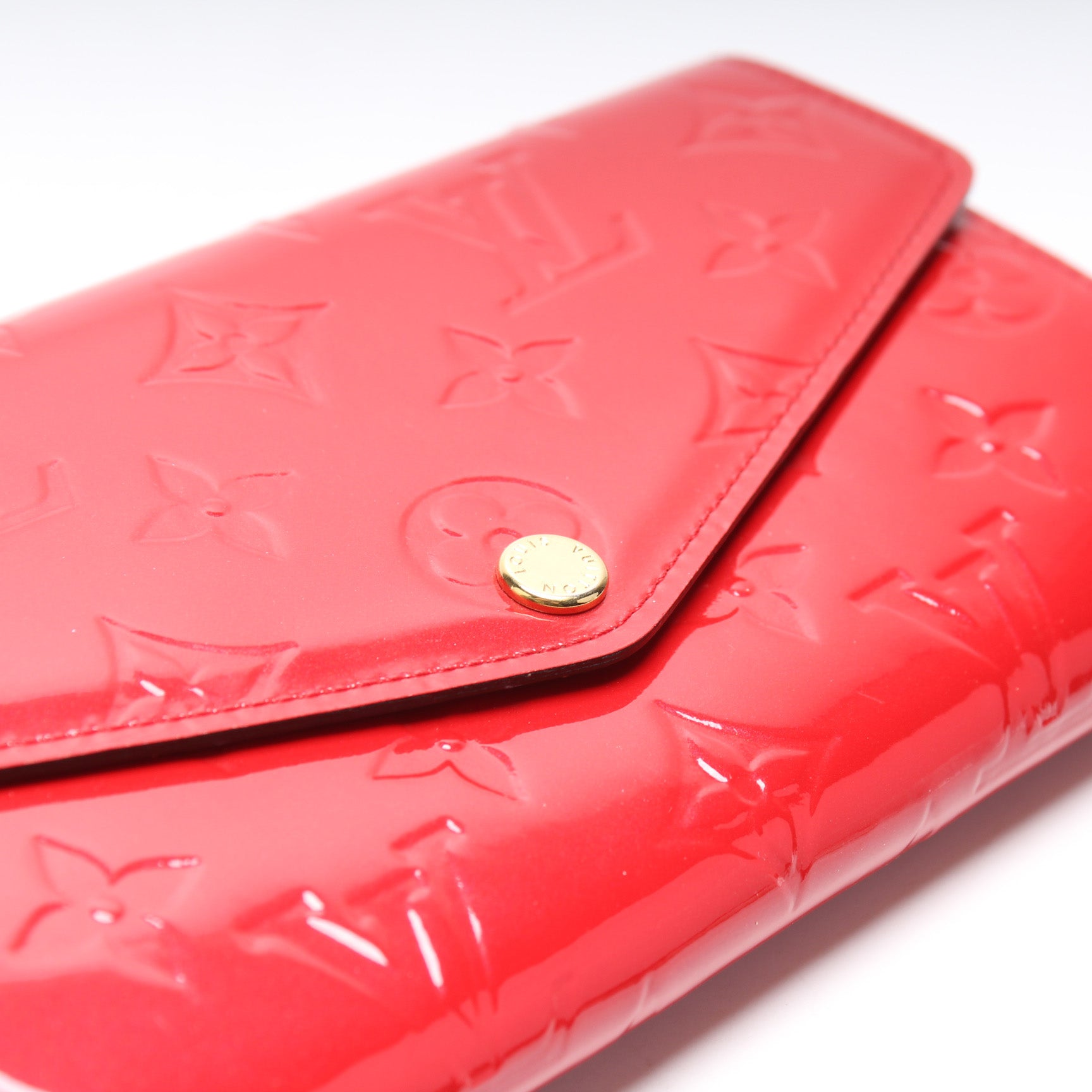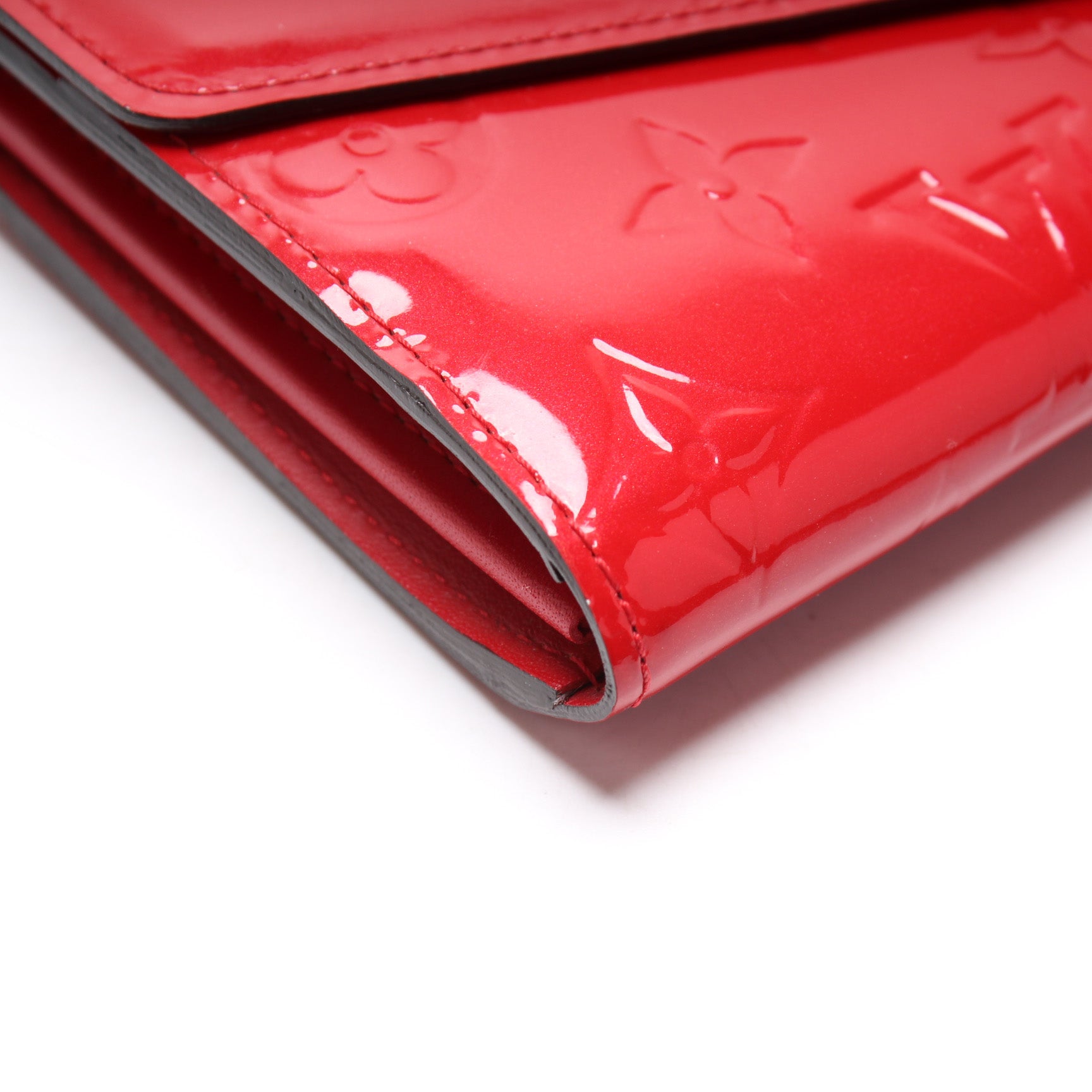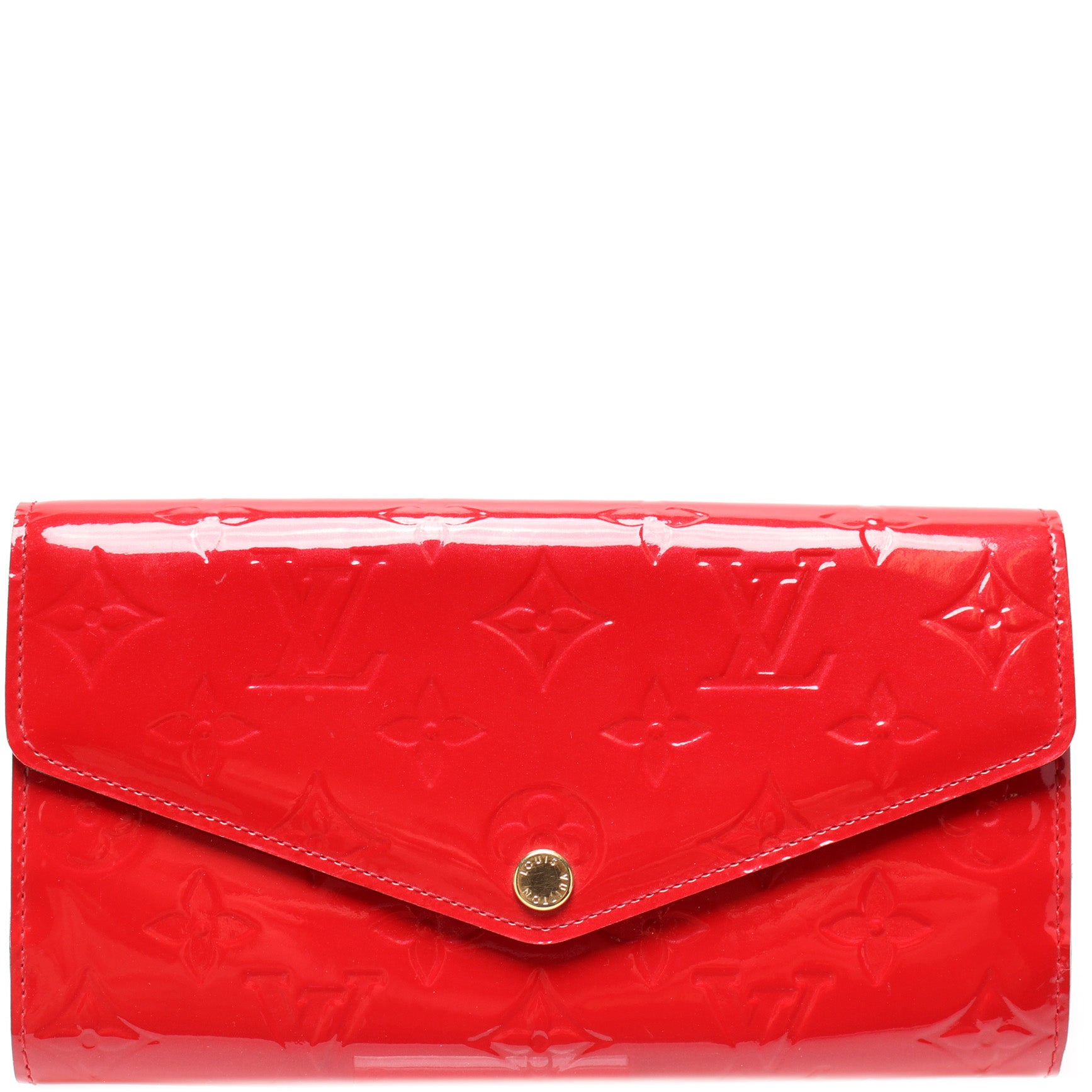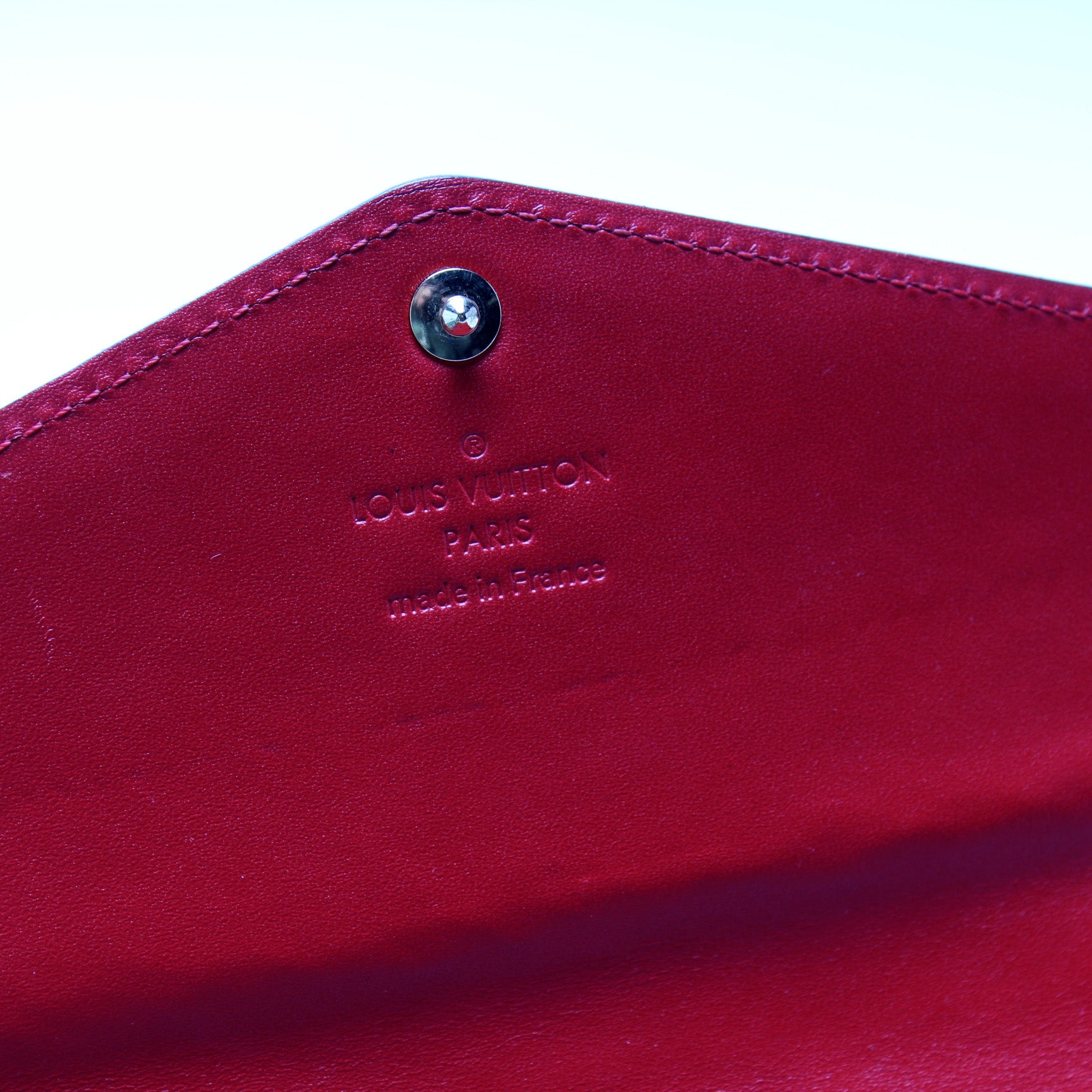 This pre-owned Louis Vuitton Sarah Wallet is guaranteed 100% authentic. The exterior is in the classic Louis Vuitton Vernis leather.