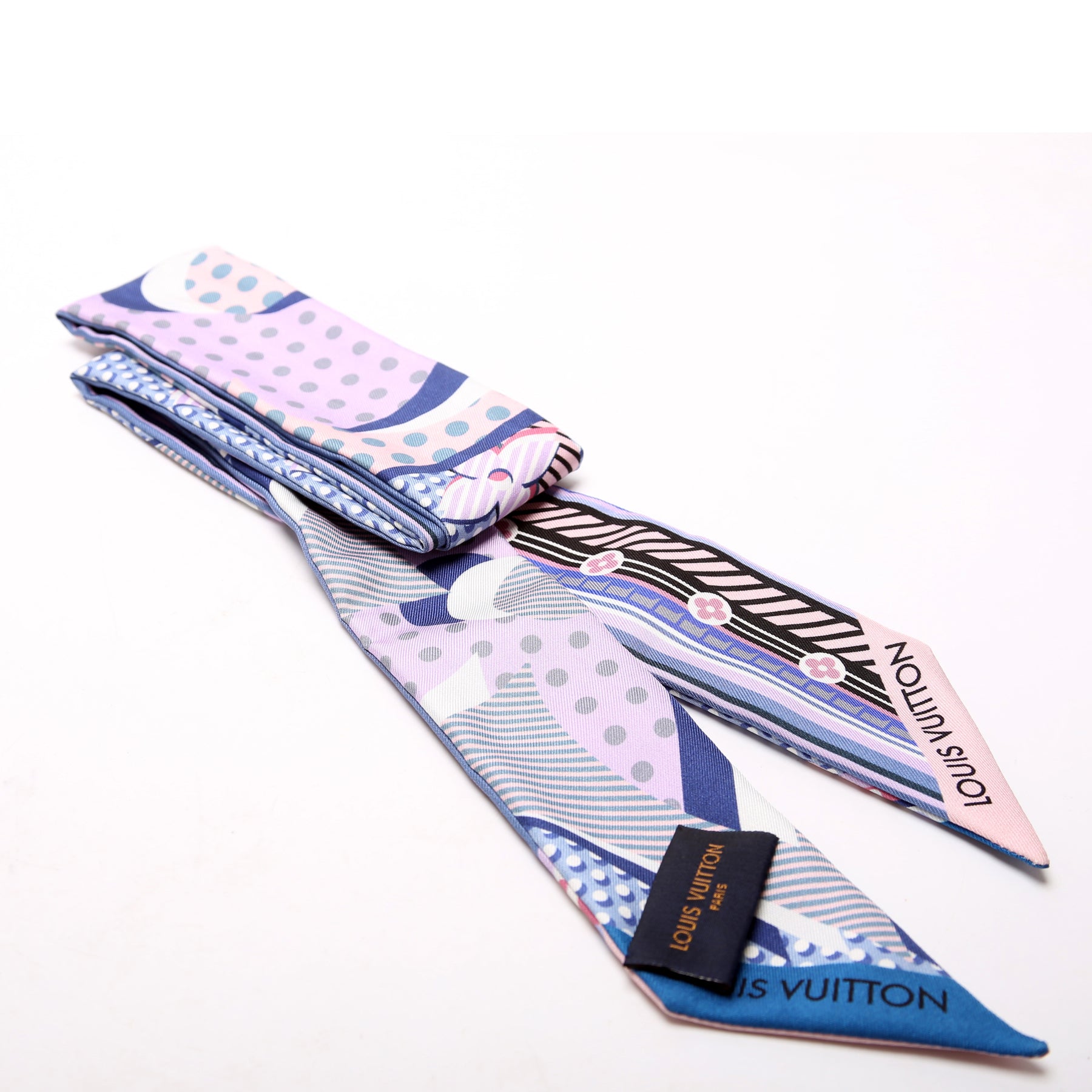 This pre-owned Louis Vuitton Silk Pop Monogram Bandeau Silk Scarf is guaranteed 100% authentic.