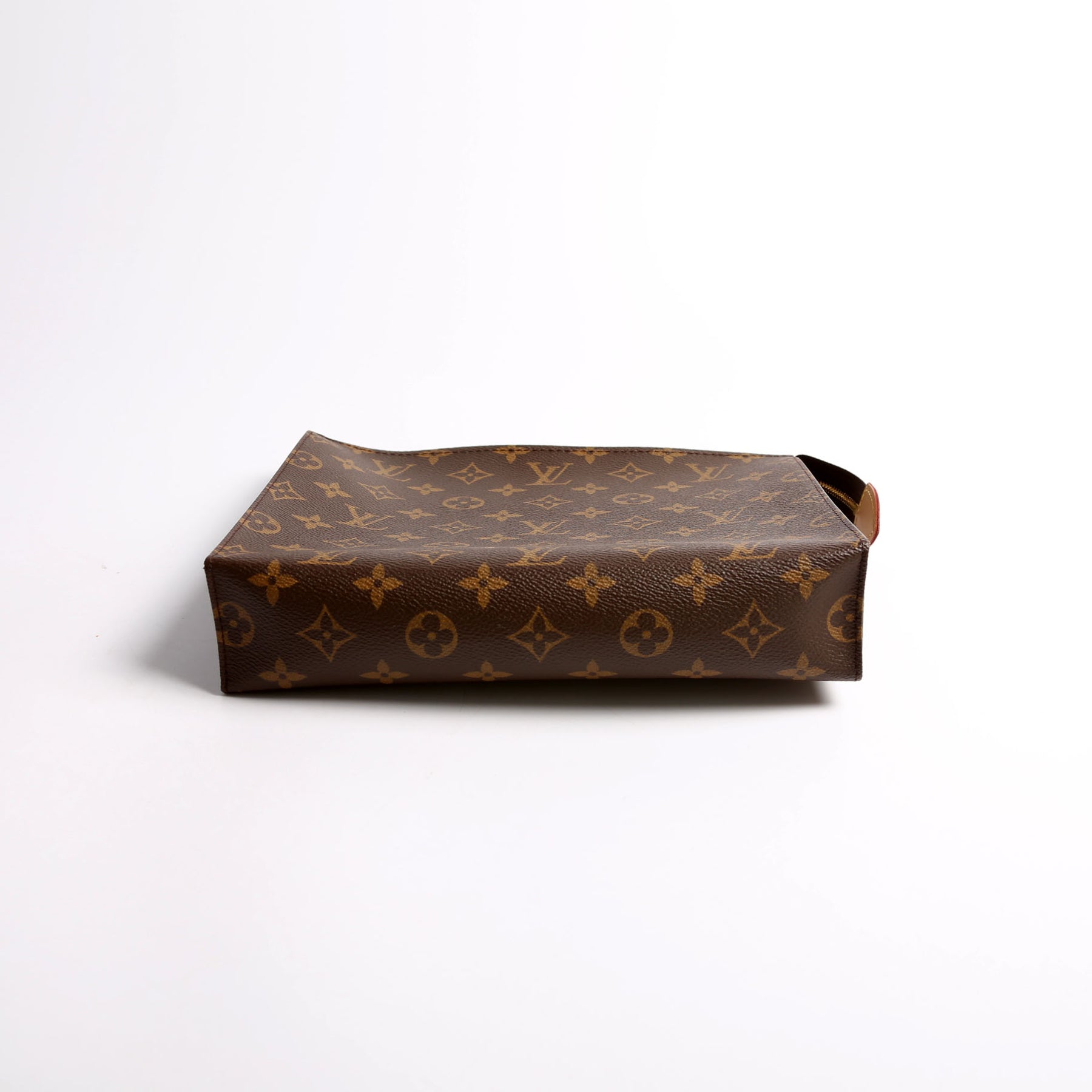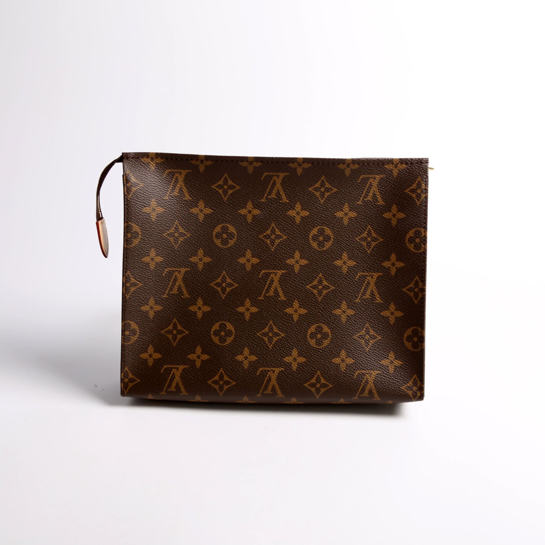 This pre-owned Louis Vuitton Toiletry Pouch 26 Newer is guaranteed 100% authentic. The exterior is in the classic Louis Vuitton Monogram coated canvas.