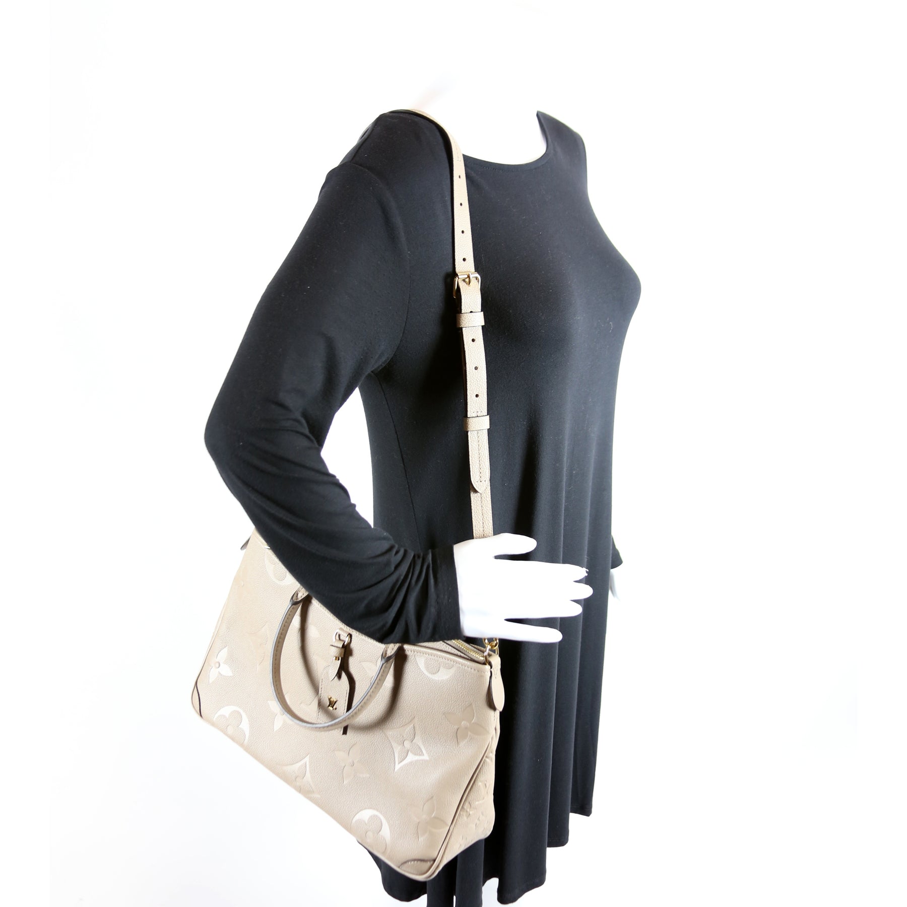 This pre-owned Louis Vuitton Trianon MM is guaranteed 100% authentic. The exterior is in the classic Empreinte leather.
