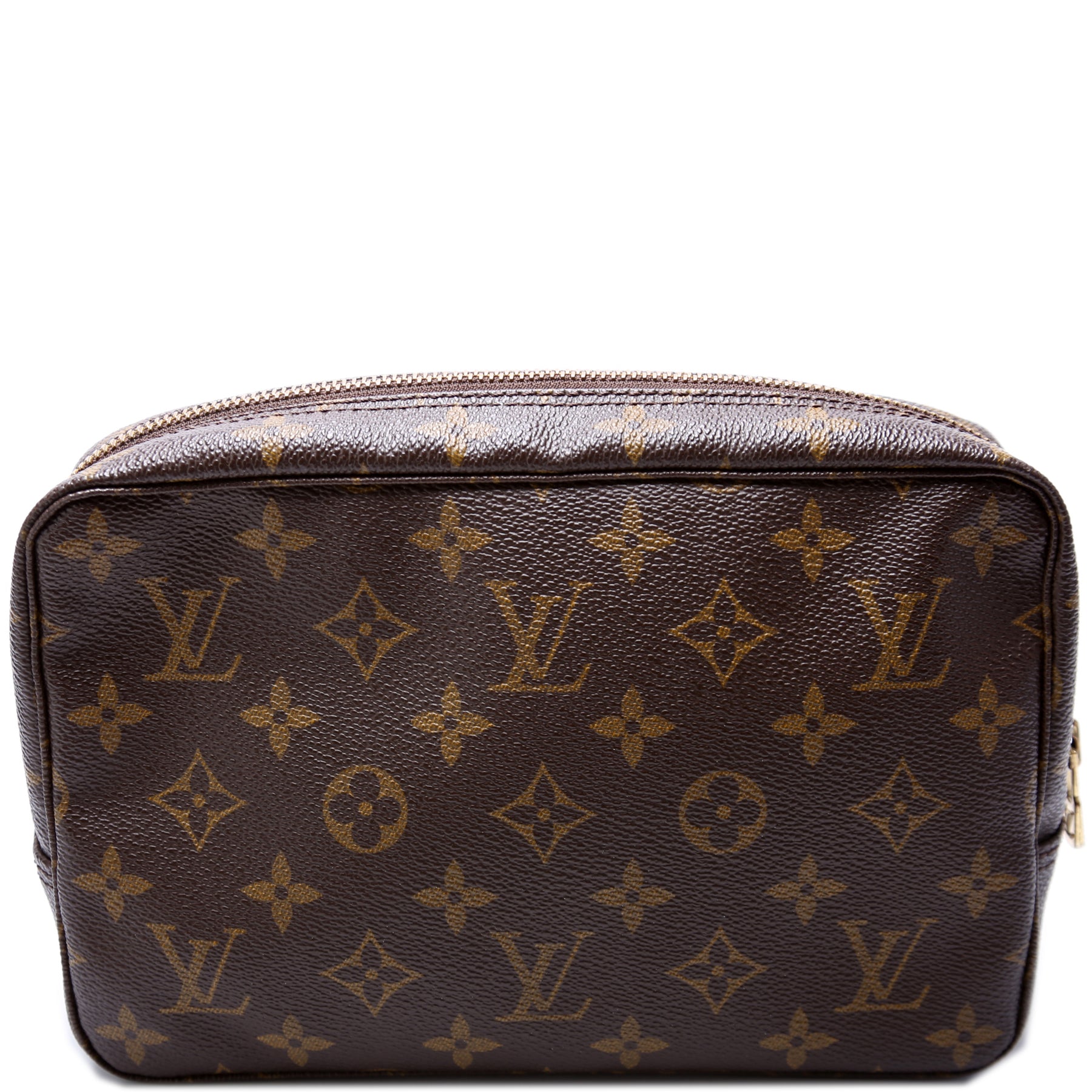 This pre-owned Louis Vuitton Trousse Toilette 23 is guaranteed 100% authentic. The exterior is in the classic Louis Vuitton Monogram coated canvas.