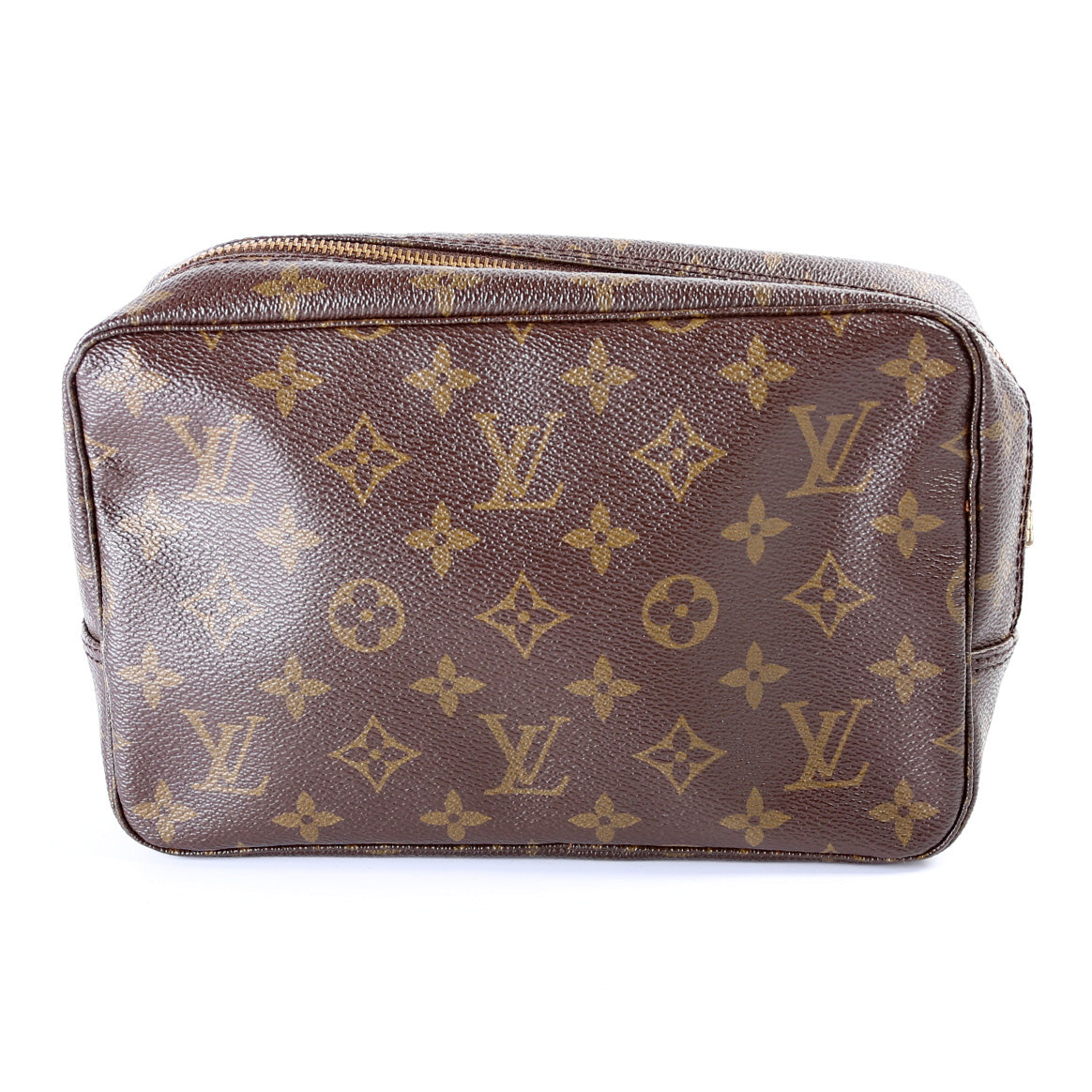 This pre-owned Louis Vuitton Trousse Toilette 23 is guaranteed 100% authentic. The exterior is in the classic Louis Vuitton Monogram coated canvas.