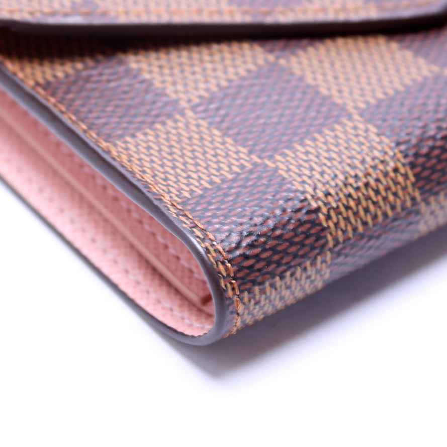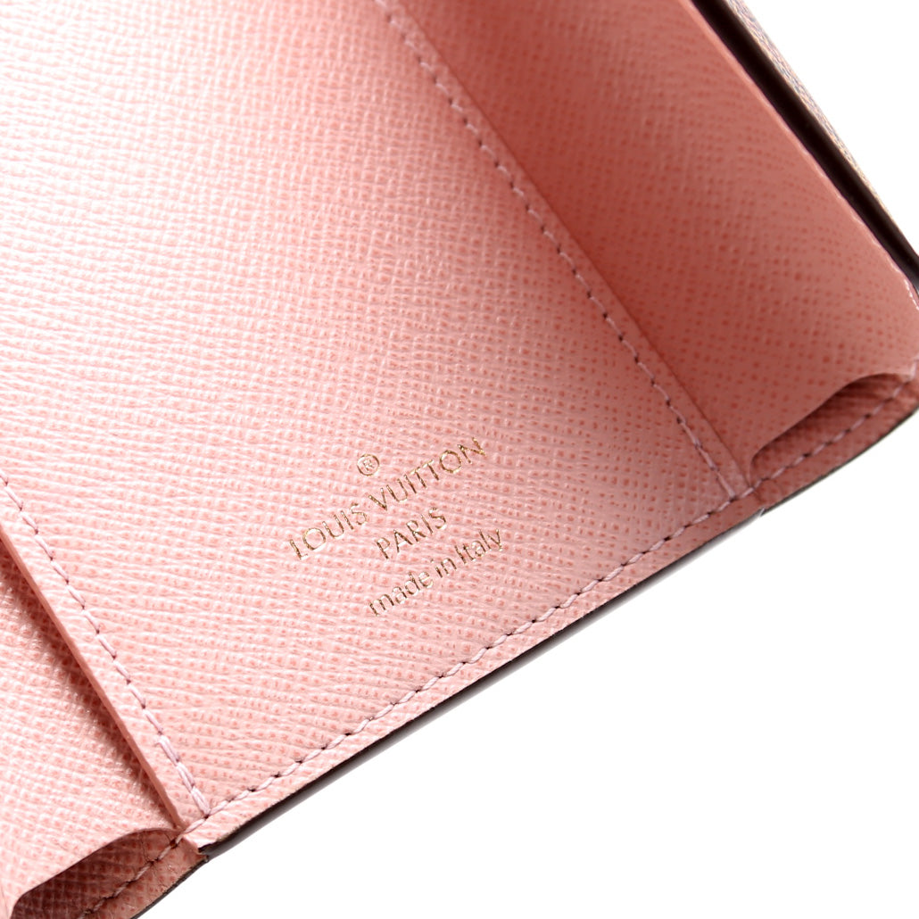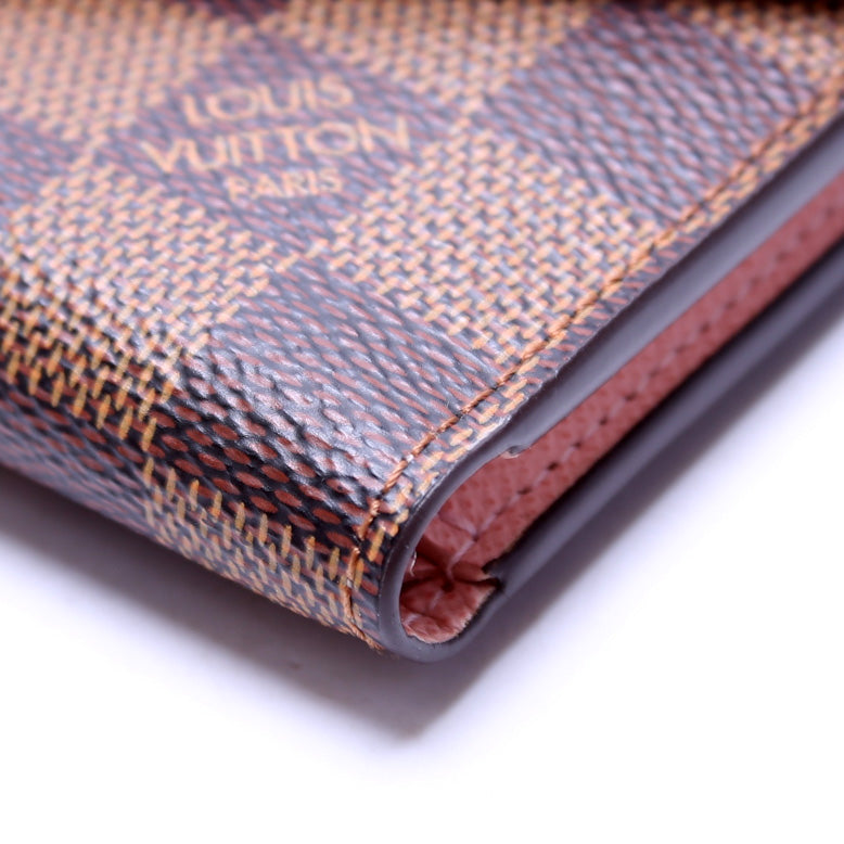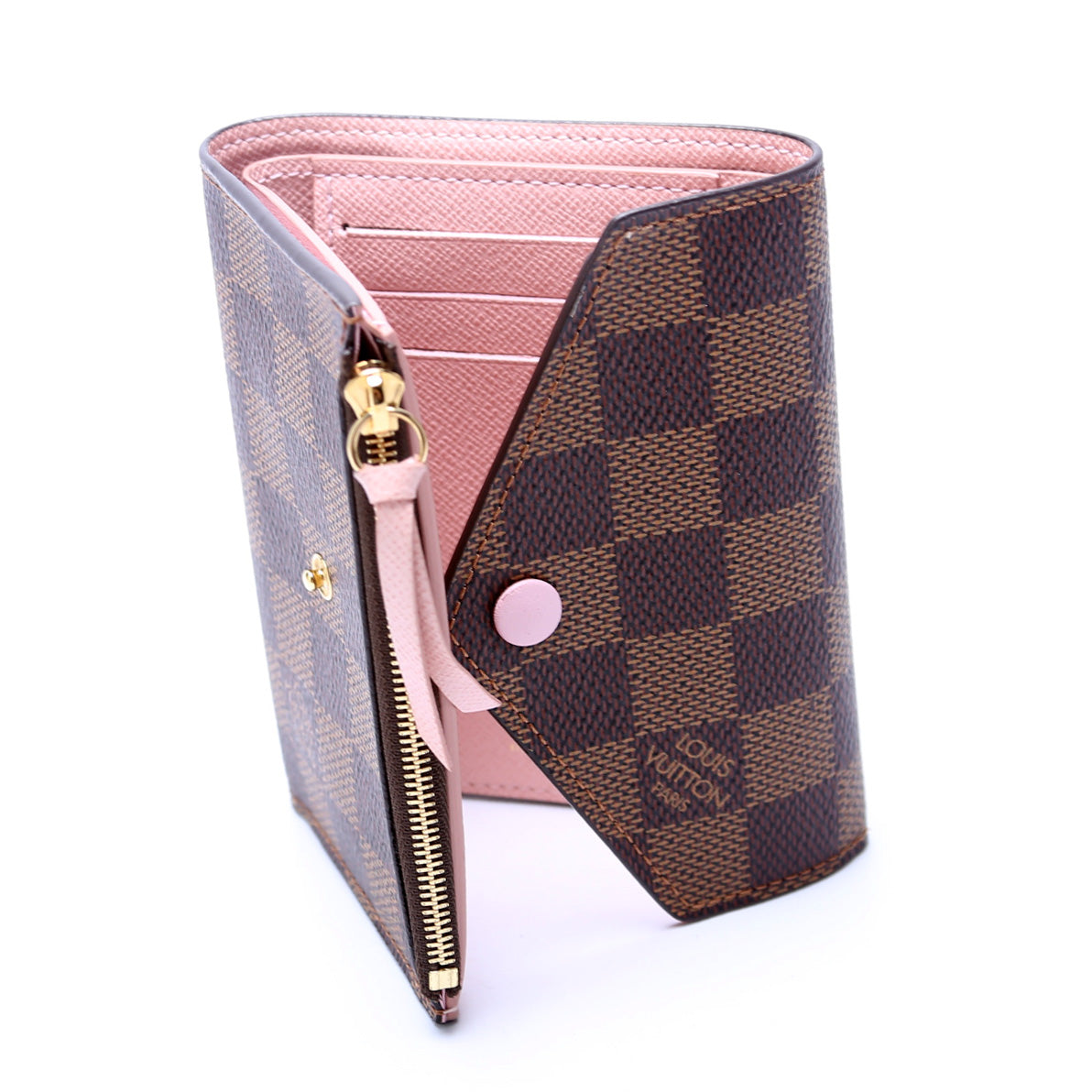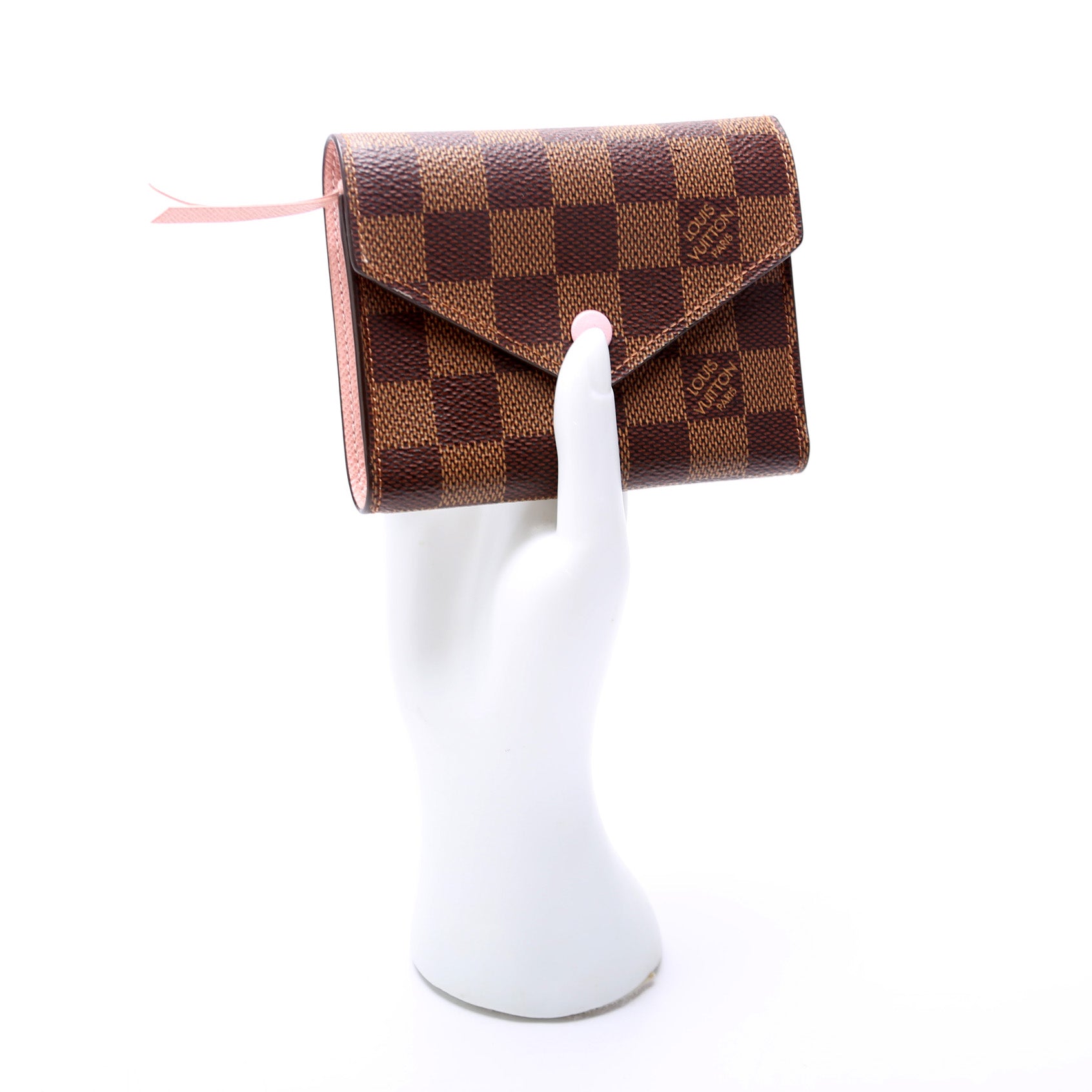 This pre-owned Louis Vuitton Victorine Wallet is guaranteed 100% authentic. The exterior is in the classic Louis Vuitton Damier Ebene coated canvas.