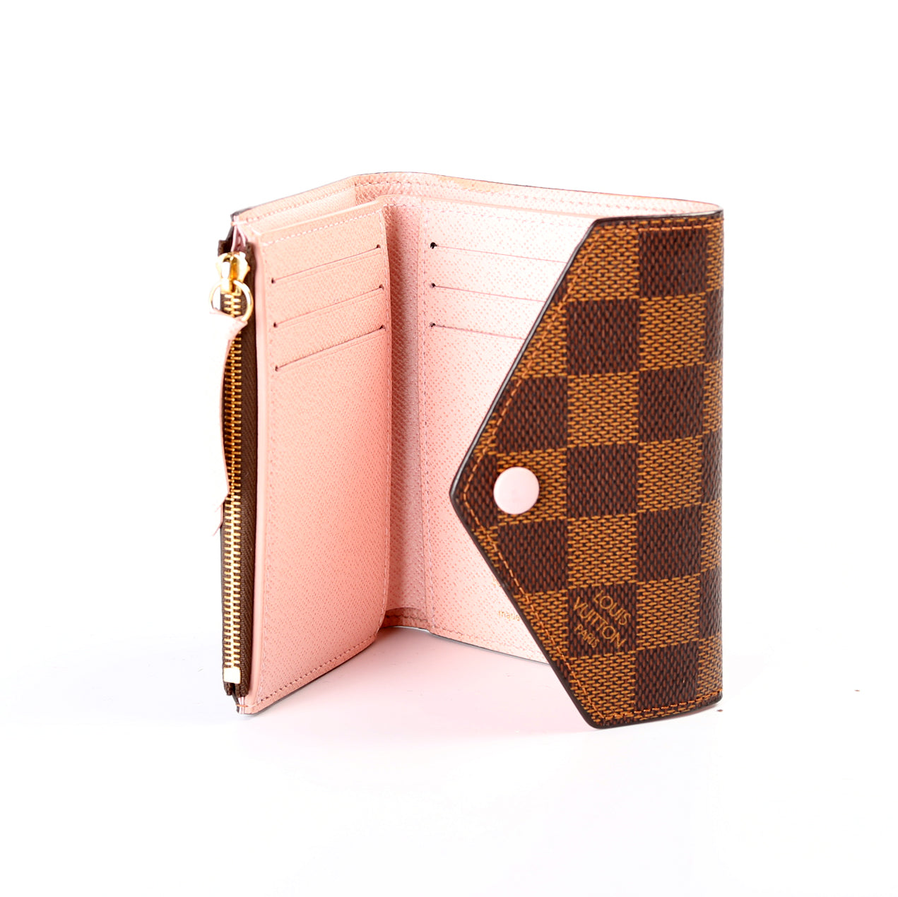 This pre-owned Louis Vuitton Victorine Wallet is guaranteed 100% authentic. The exterior is in the classic Monogram coated canvas.