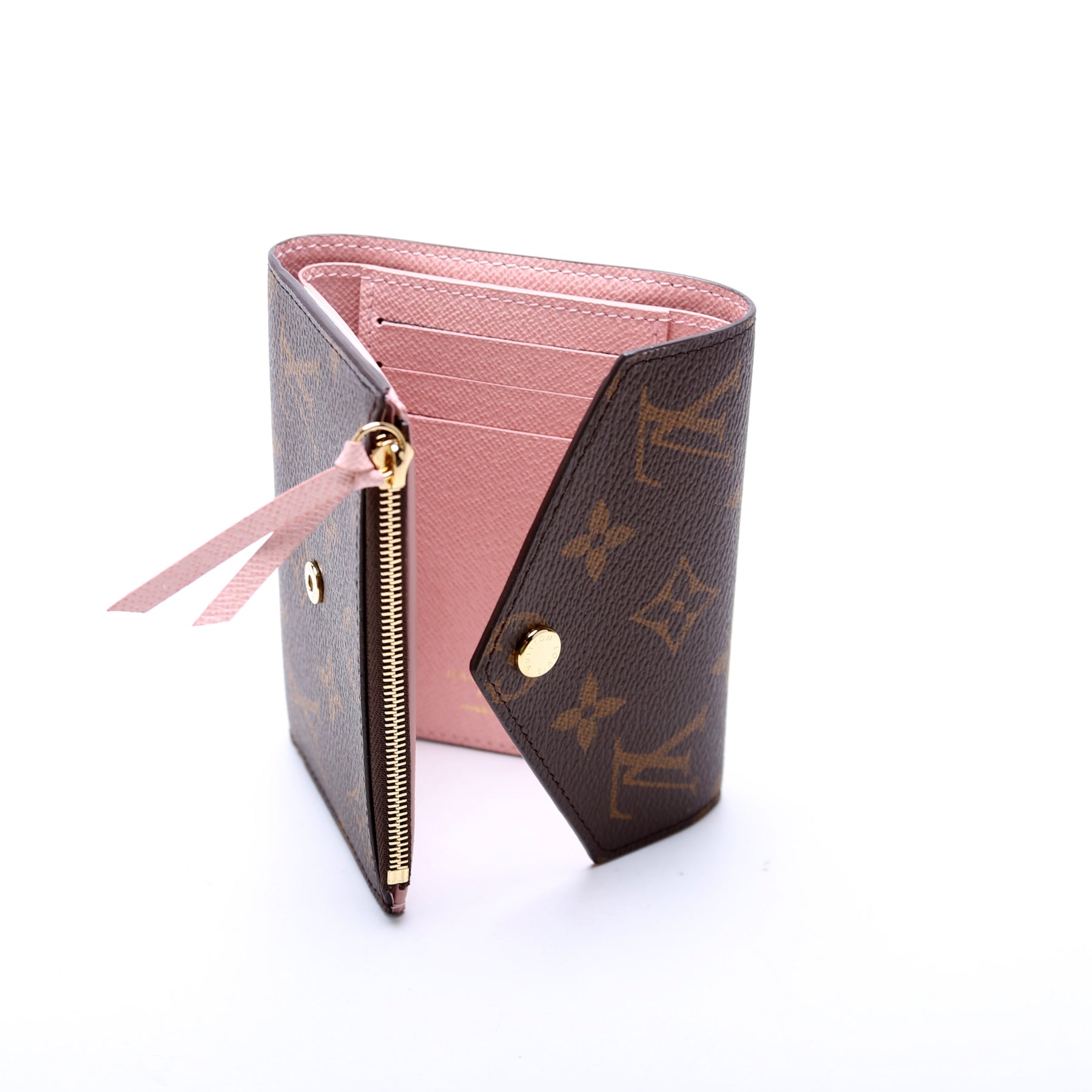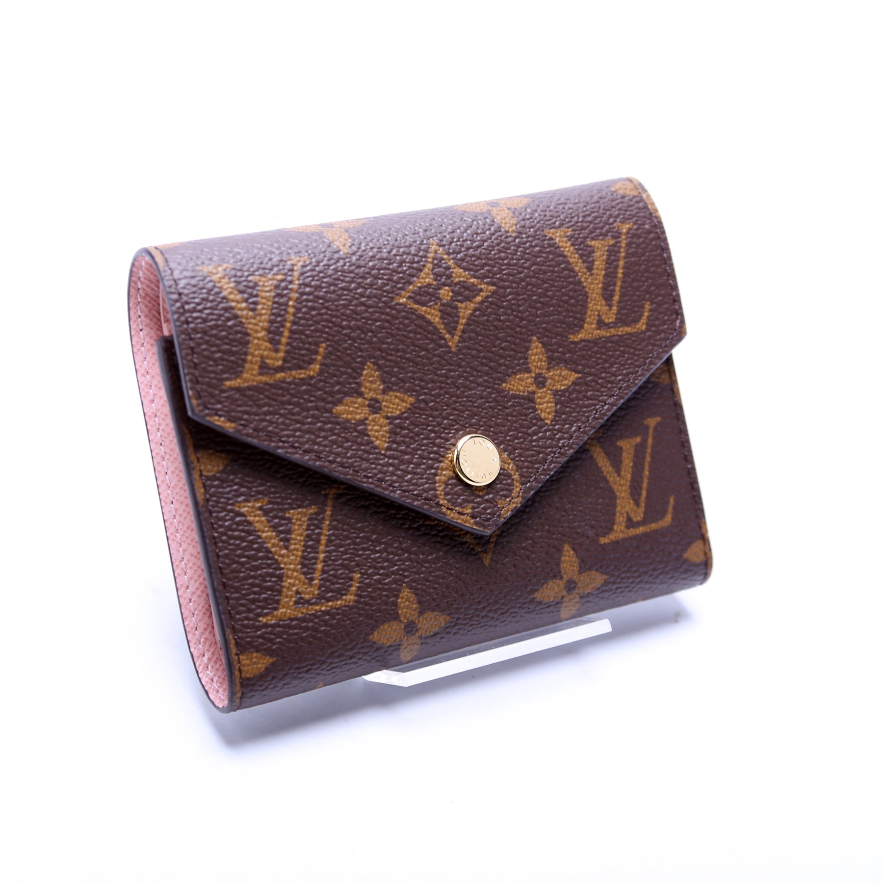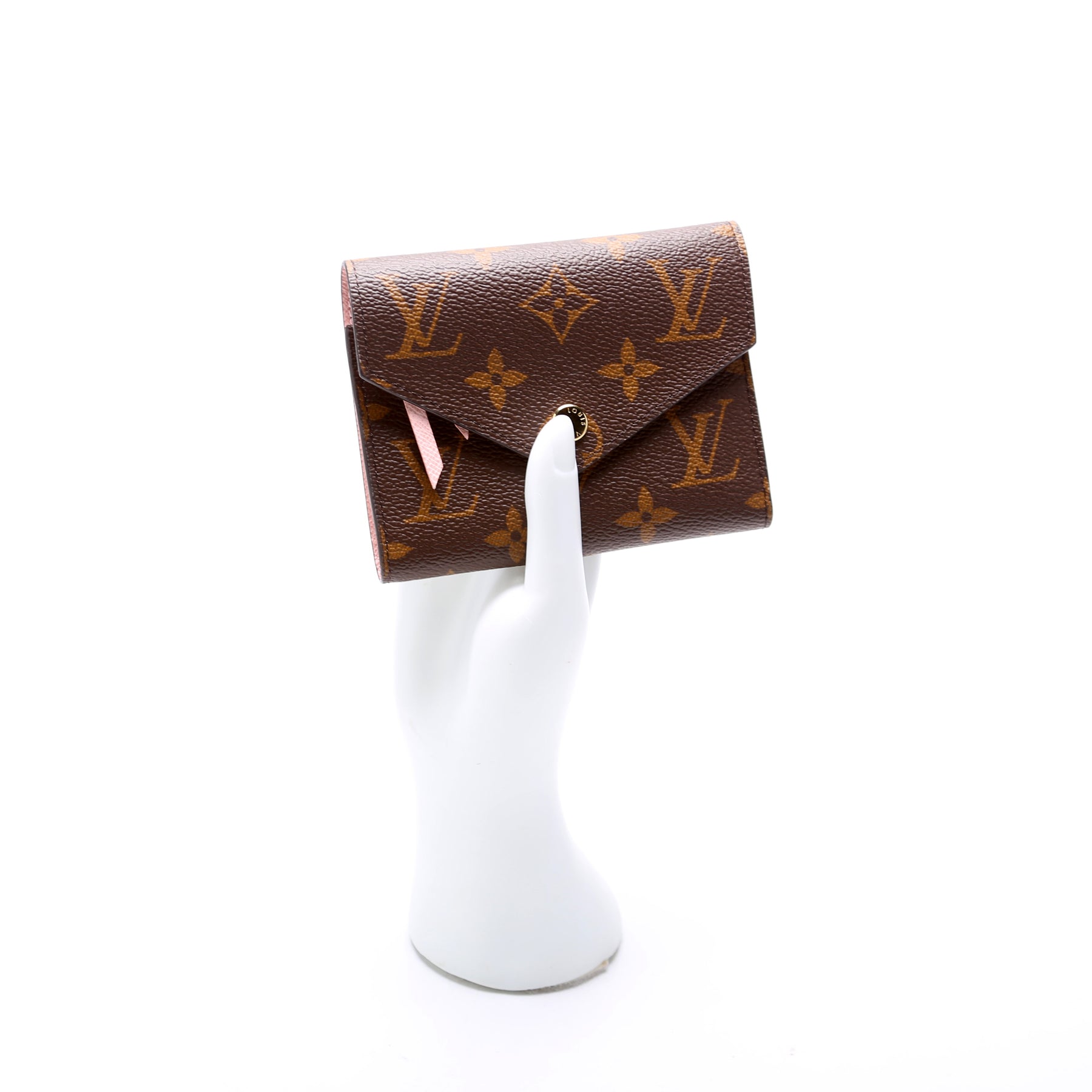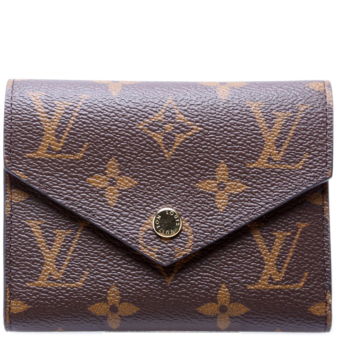 This pre-owned Louis Vuitton Victorine Wallet is guaranteed 100% authentic. The exterior is in the classic Monogram coated canvas.