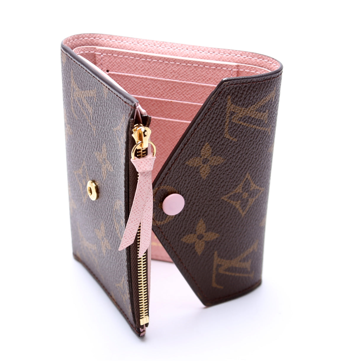 This pre-owned Louis Vuitton Victorine Wallet is guaranteed 100% authentic. The exterior is in the classic Monogram coated canvas.