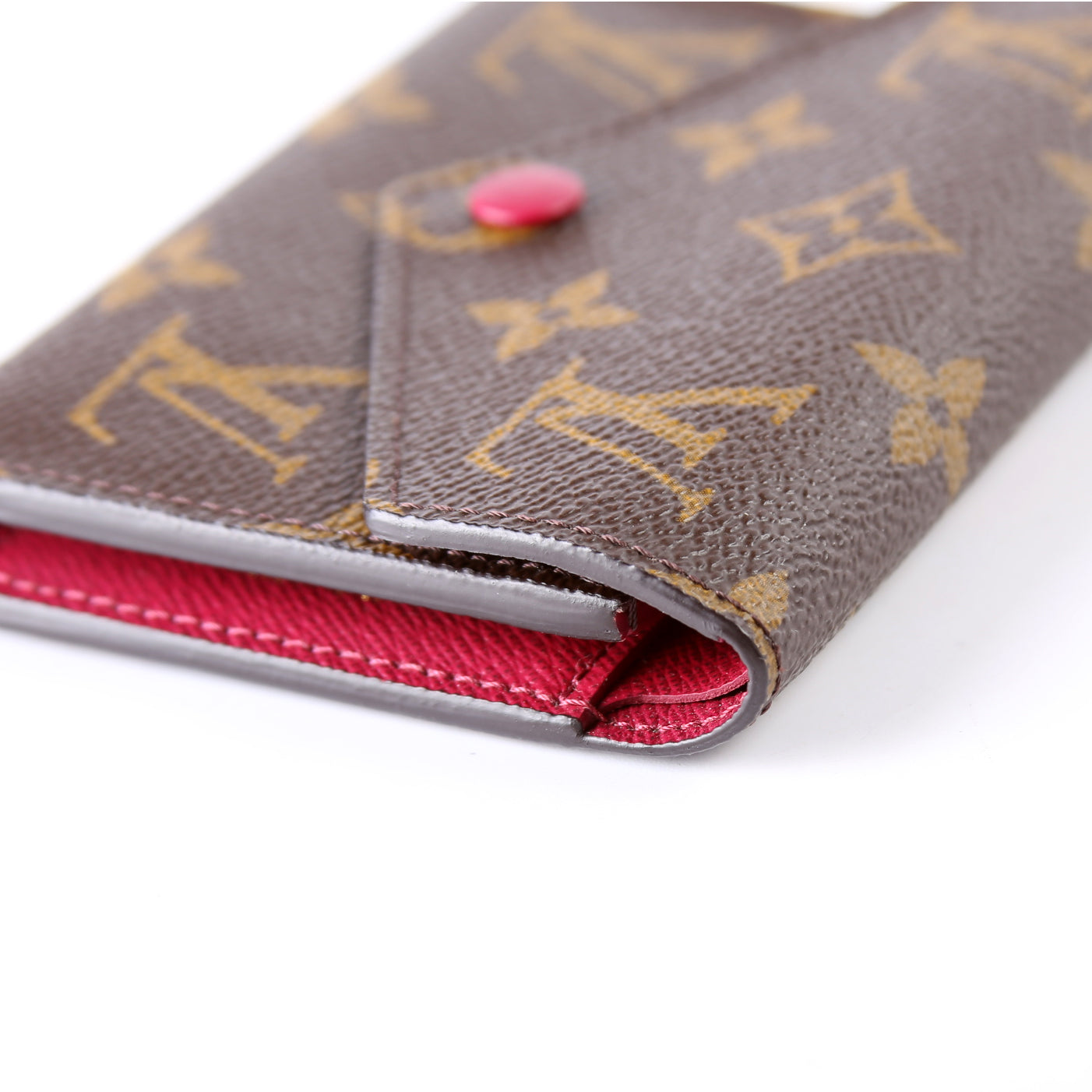 This pre-owned Louis Vuitton Victorine Wallet is guaranteed 100% authentic. The exterior is in the classic Monogram coated canvas.