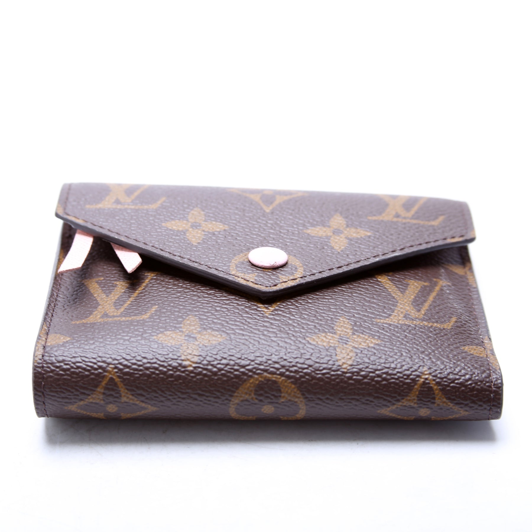 This pre-owned Louis Vuitton Victorine Wallet is guaranteed 100% authentic. The exterior is in the classic Louis Vuitton Monogram coated canvas.