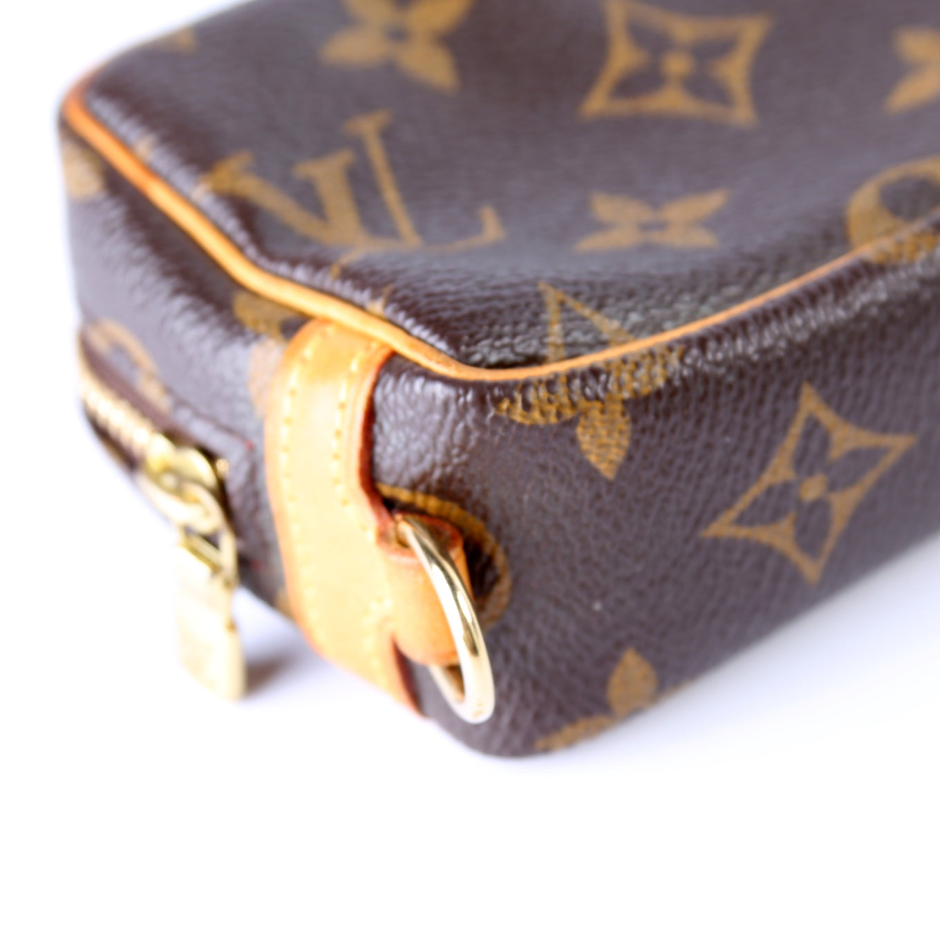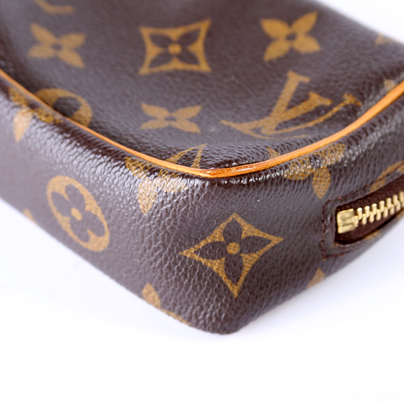 This pre-owned Louis Vuitton Wapity Case is guaranteed 100% authentic. The exterior is in the classic Louis Vuitton Monogram coated canvas.