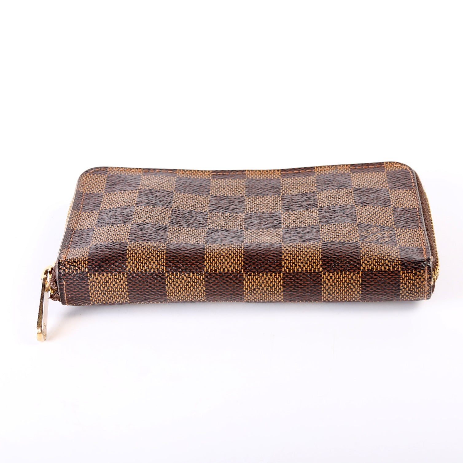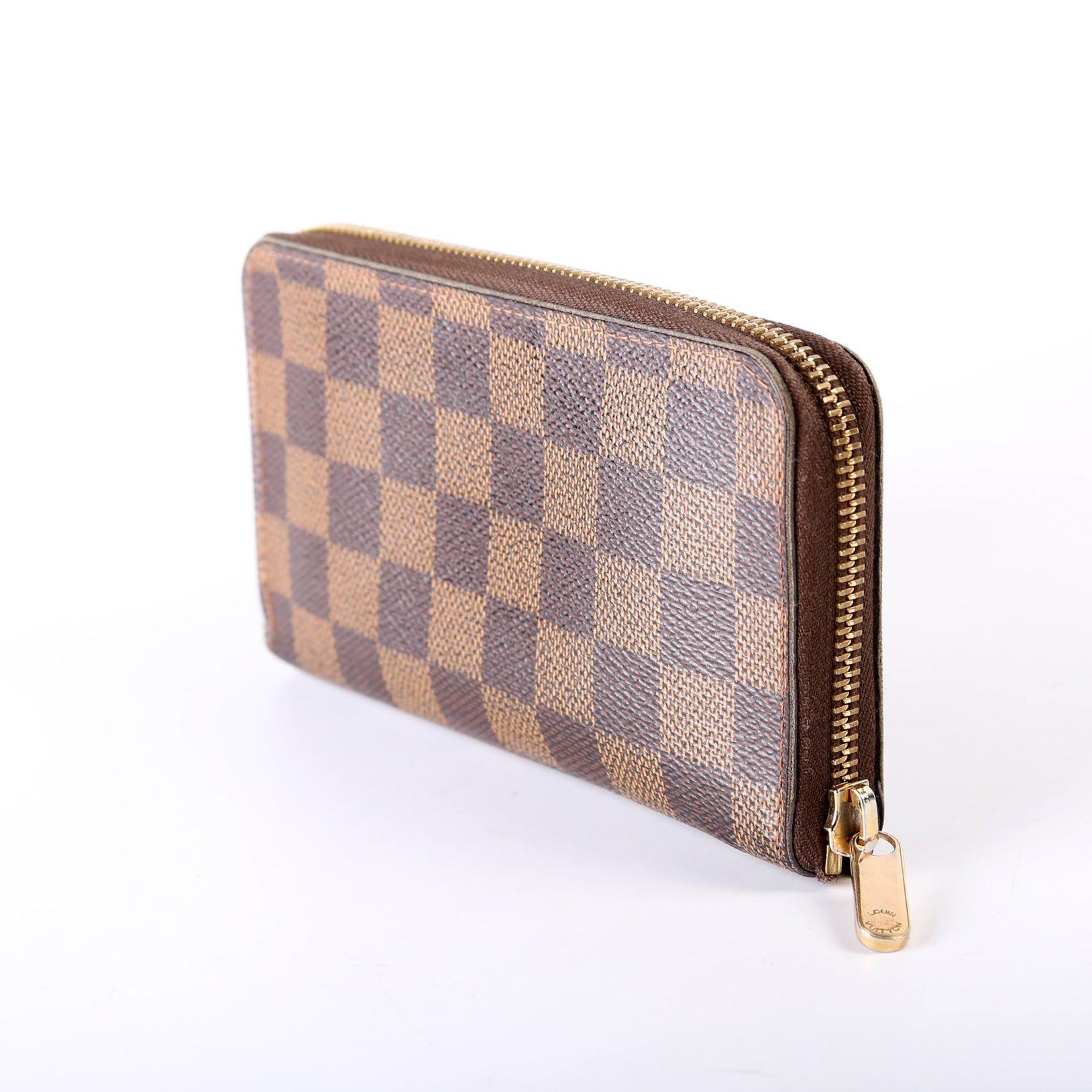 This pre-owned Louis Vuitton Zippy Compact Wallet is guaranteed 100% authentic. The exterior is in the classic Louis Vuitton Damier Ebene coated canvas.