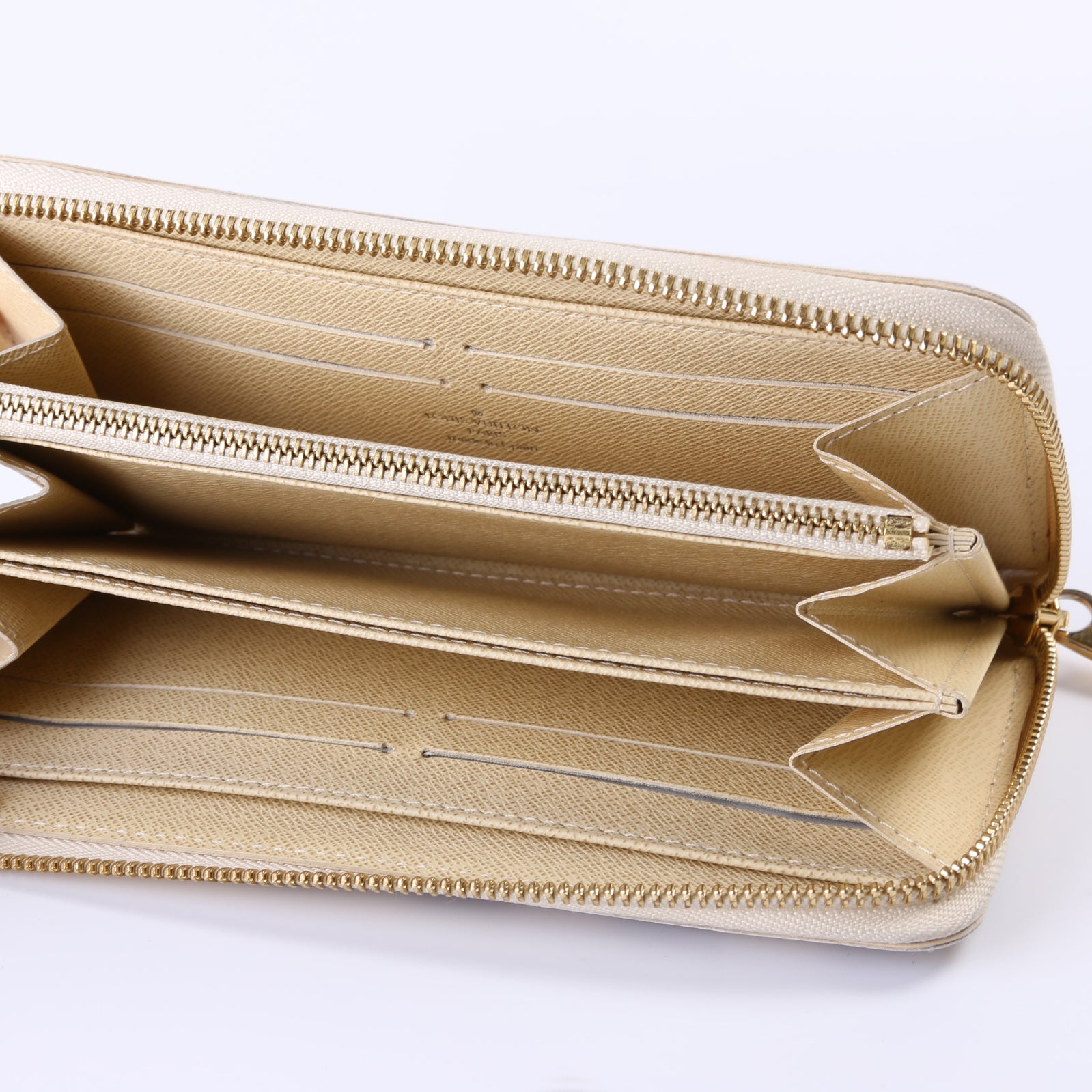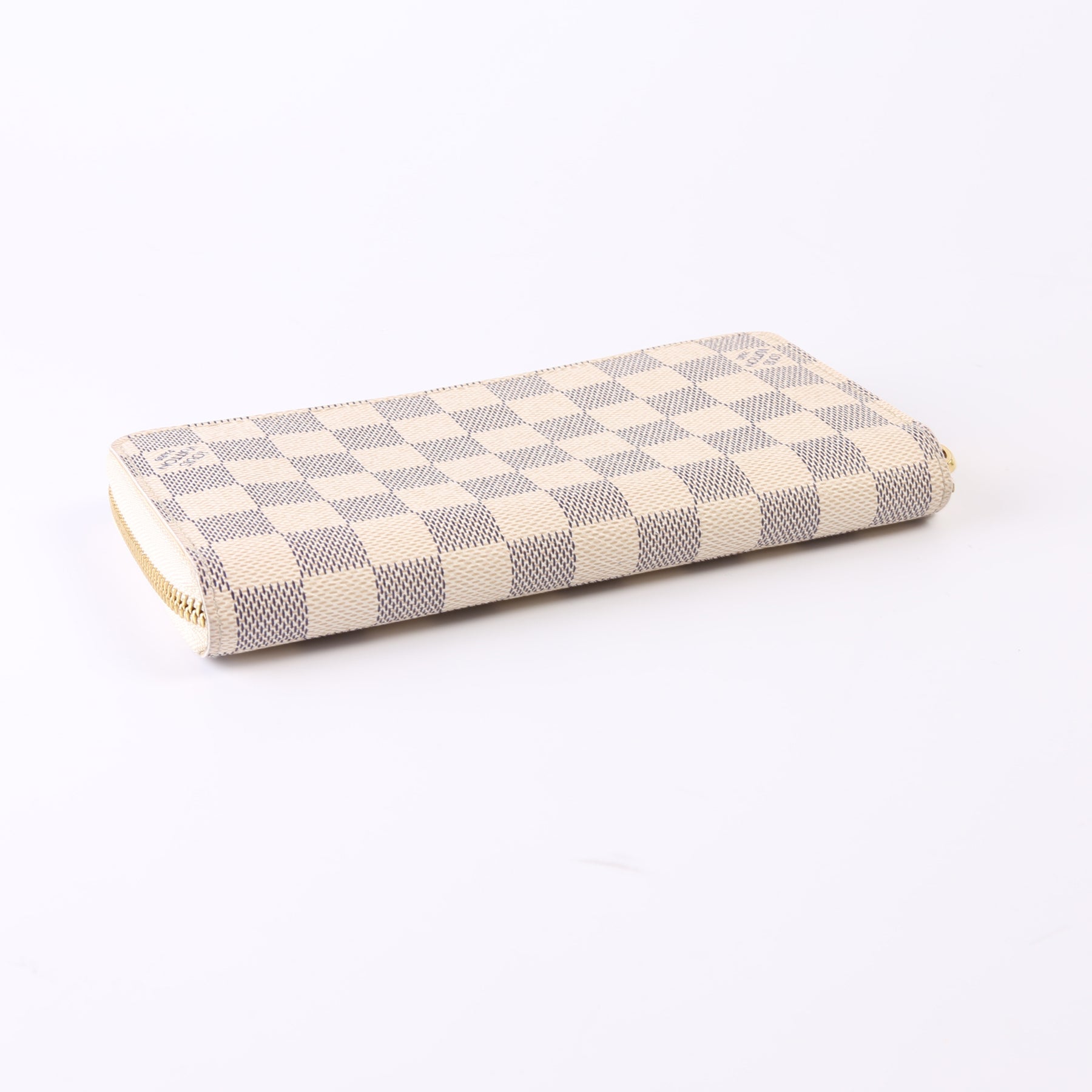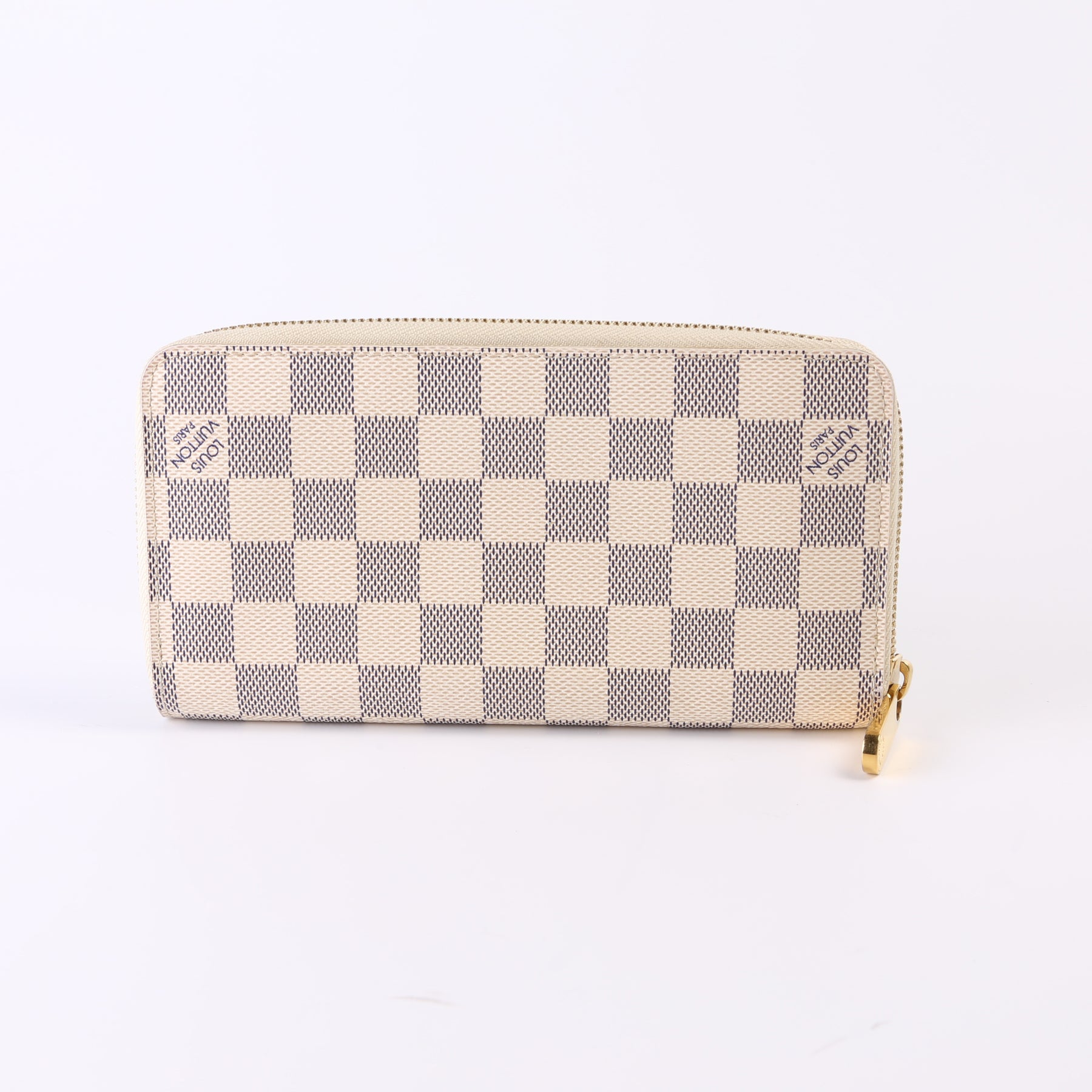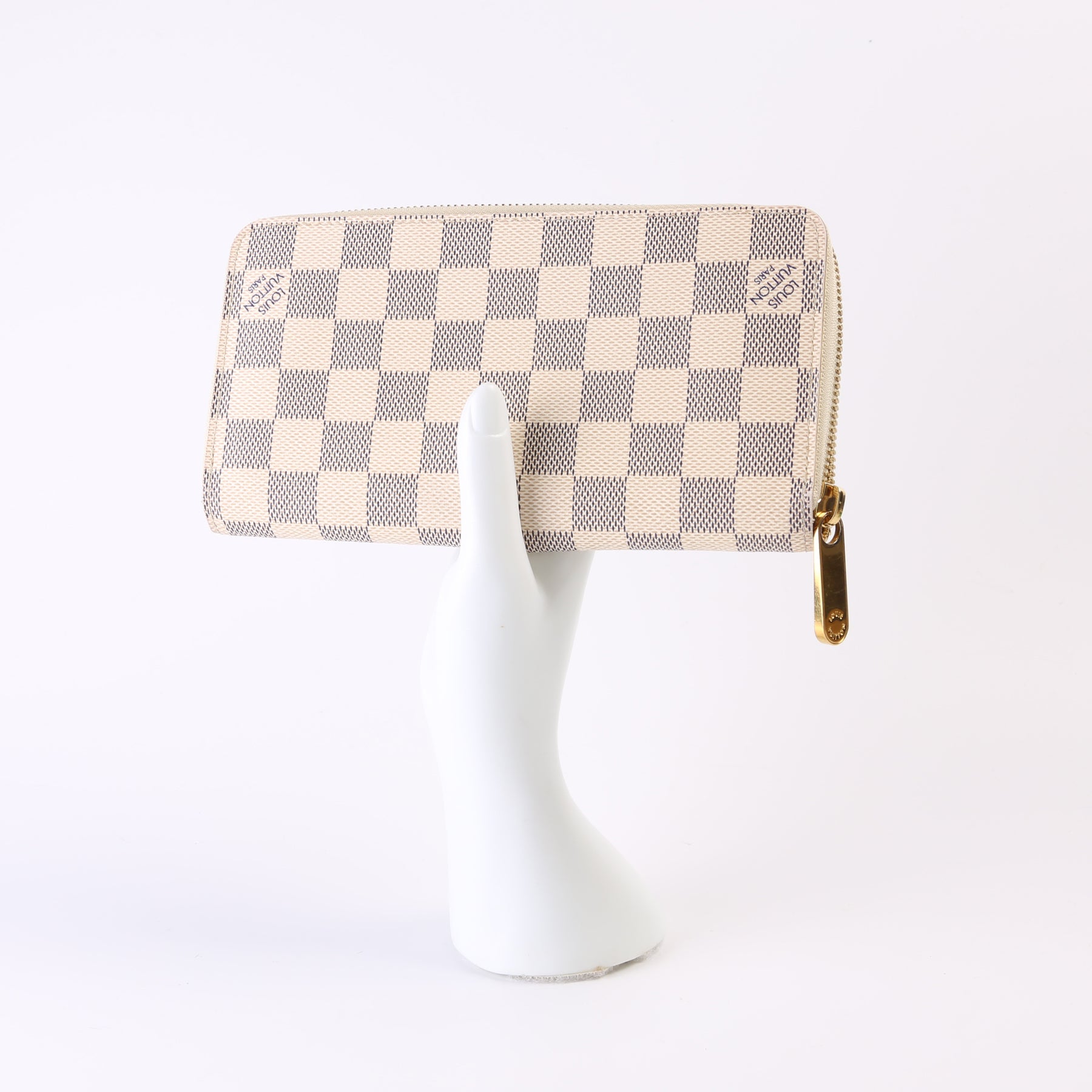 This pre-owned Louis Vuitton Zippy Wallet is guaranteed 100% authentic. The exterior is in the classic Louis Vuitton Damier Azur coated canvas.