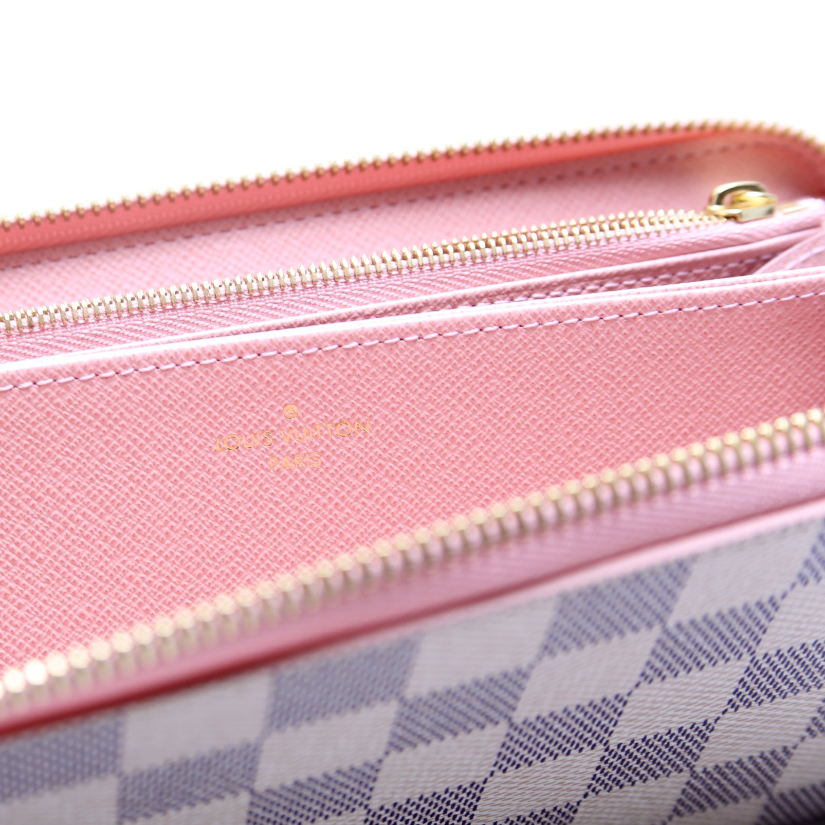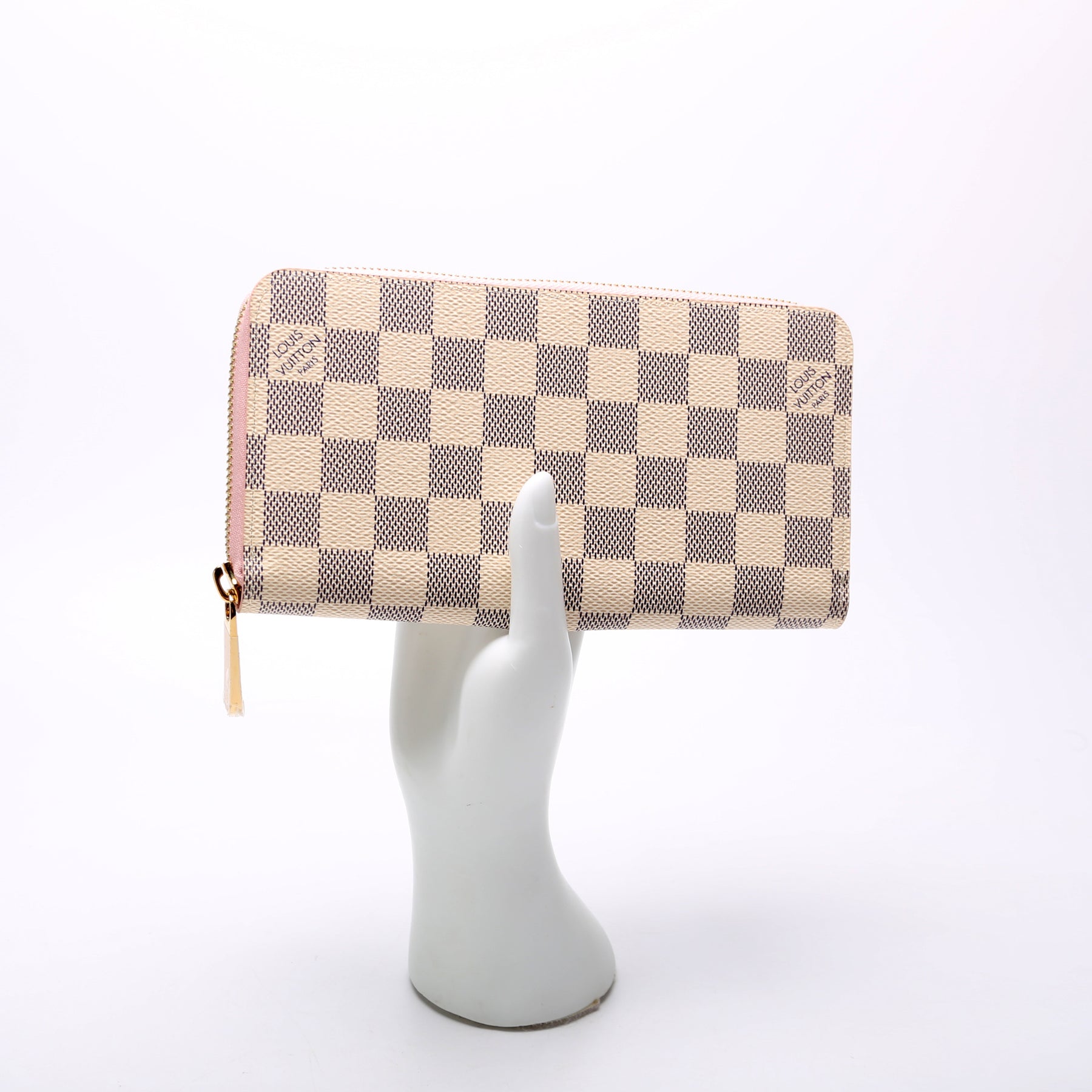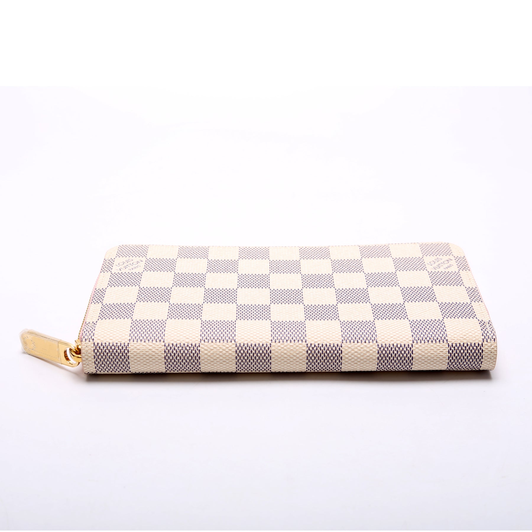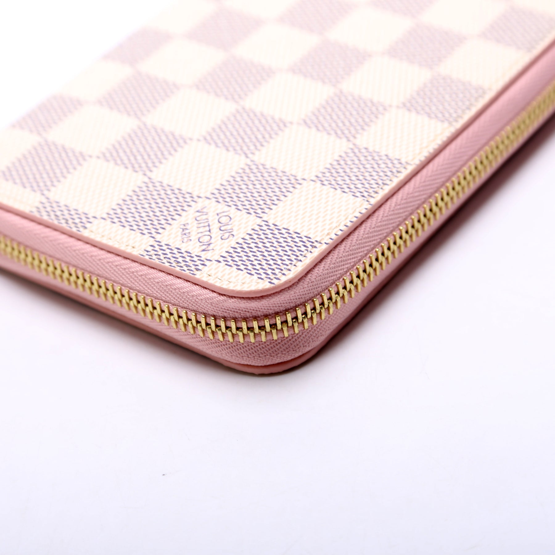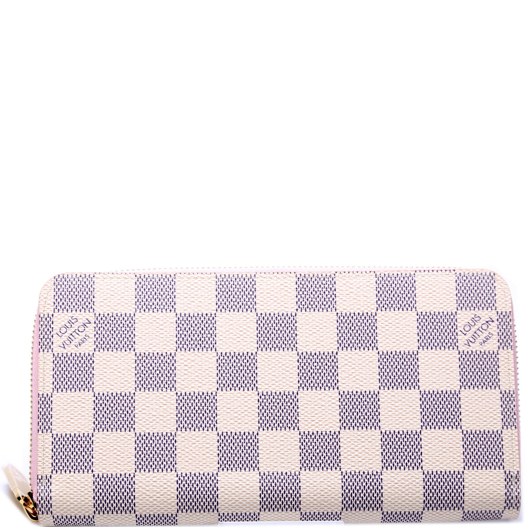 This pre-owned Louis Vuitton Zippy Wallet is guaranteed 100% authentic. The exterior is in the classic Louis Vuitton Damier Azur coated canvas.