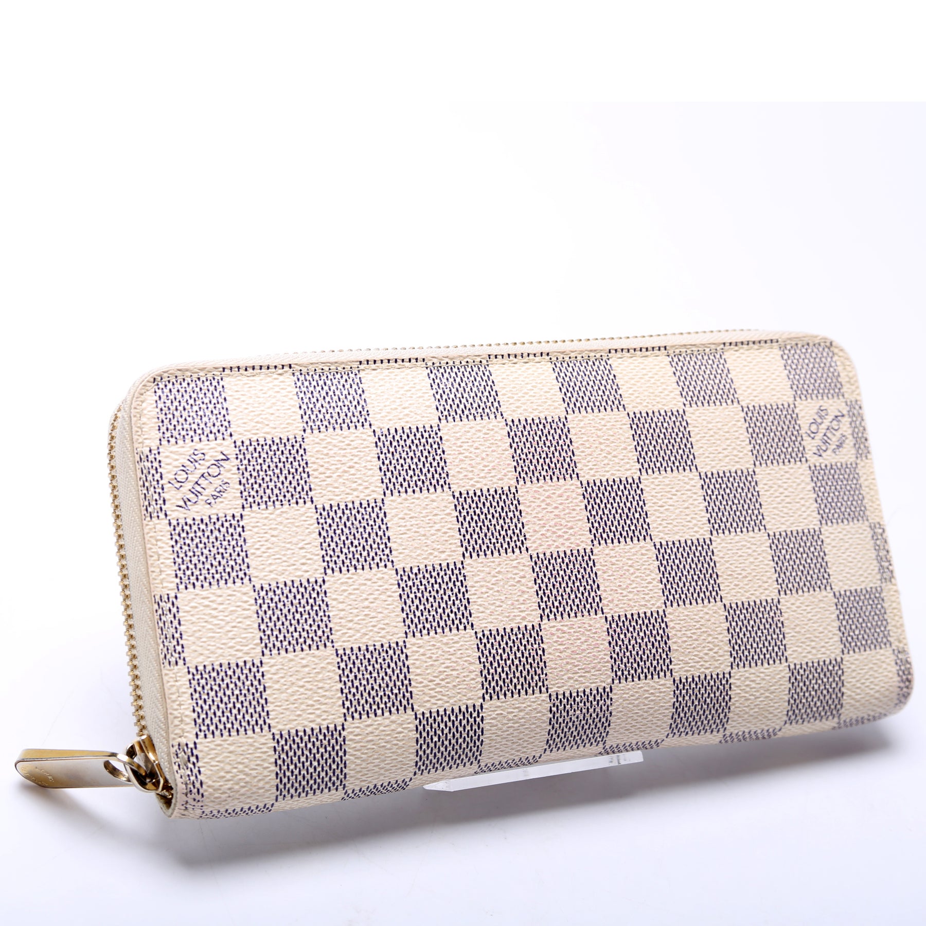 This pre-owned Louis Vuitton Zippy Wallet is guaranteed 100% authentic. The exterior is in the classic Louis Vuitton Damier Azur coated canvas.