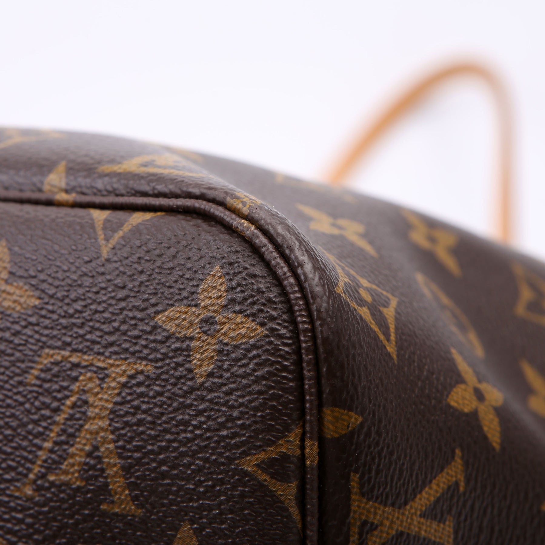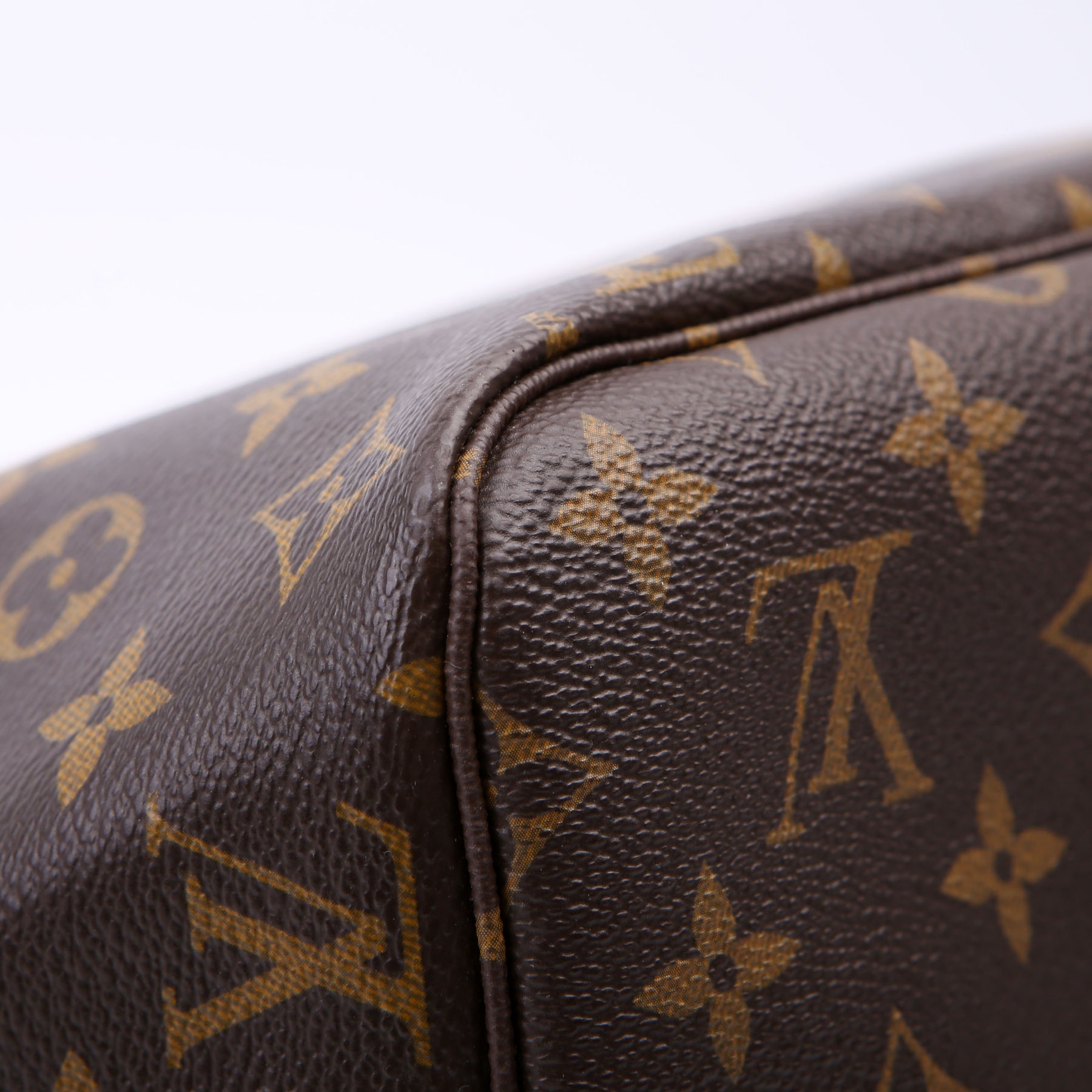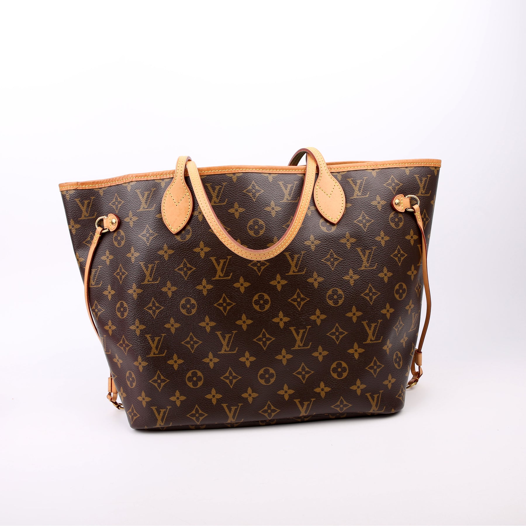 This pre-owned Louis Vuitton Neverfull MM V is guaranteed 100% authentic. The exterior is in the classic Louis Vuitton Monogram coated canvas.