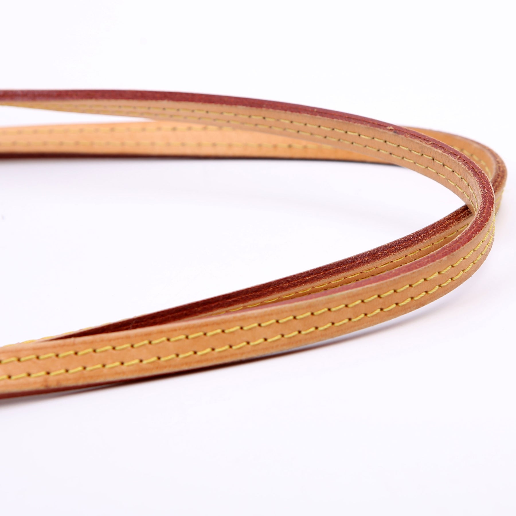 Handle: The leather handles show minor discoloration and wear.