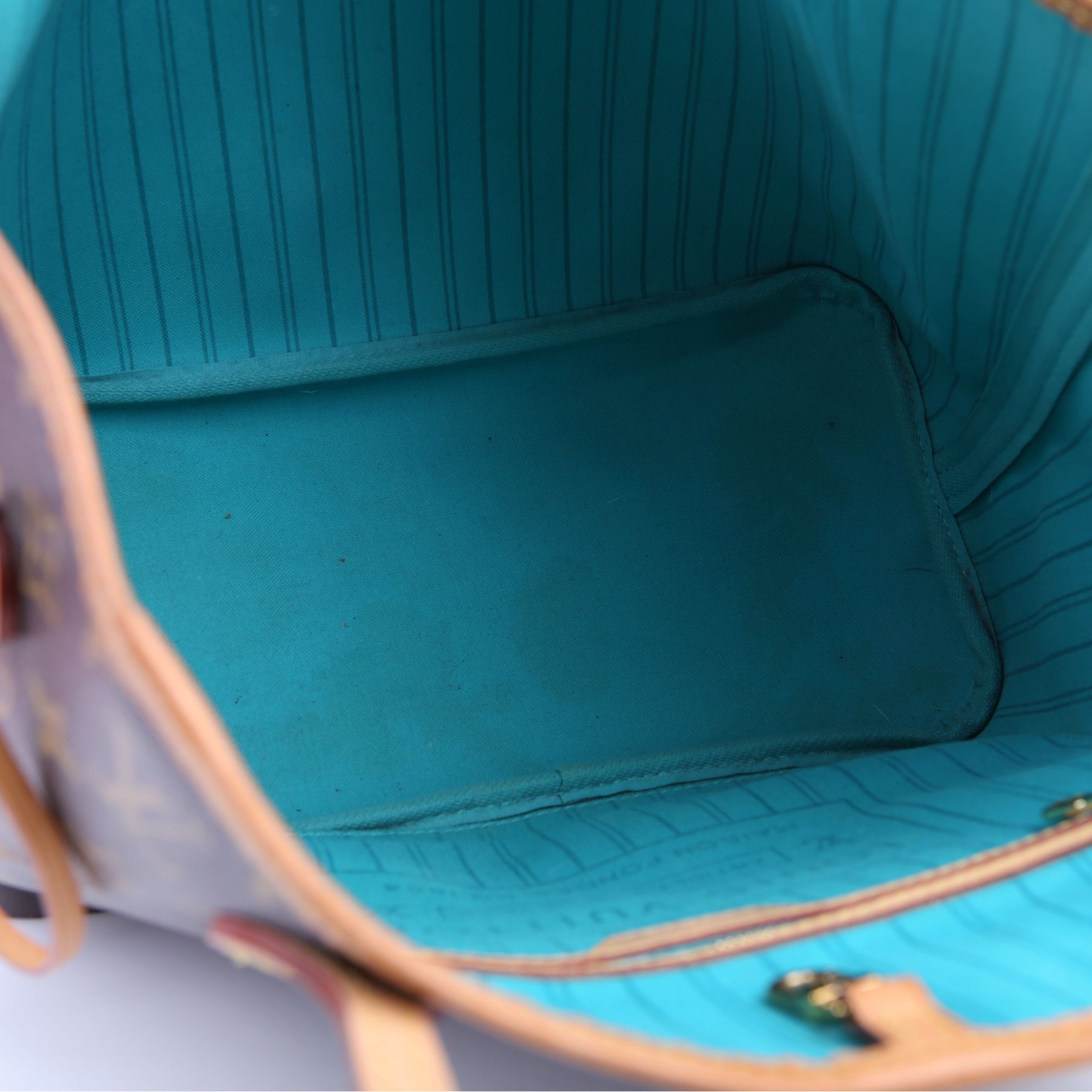 Interior: The interior has minor stains throughout, and features one zip closure pocket.
