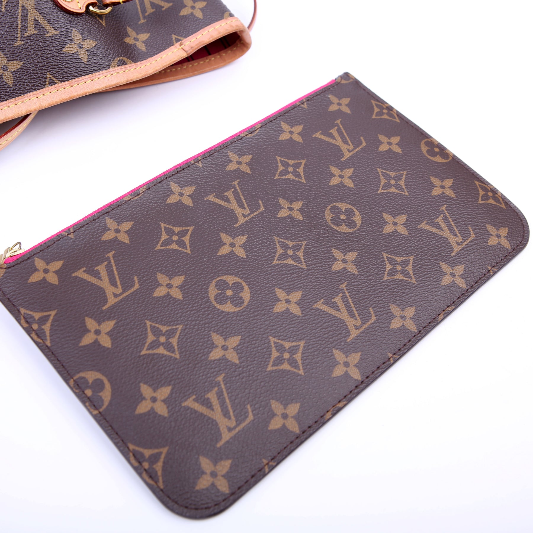 This pre-owned Louis Vuitton Neverfull With Wallet GM is guaranteed 100% authentic. The exterior is in the classic Louis Vuitton Monogram coated canvas.