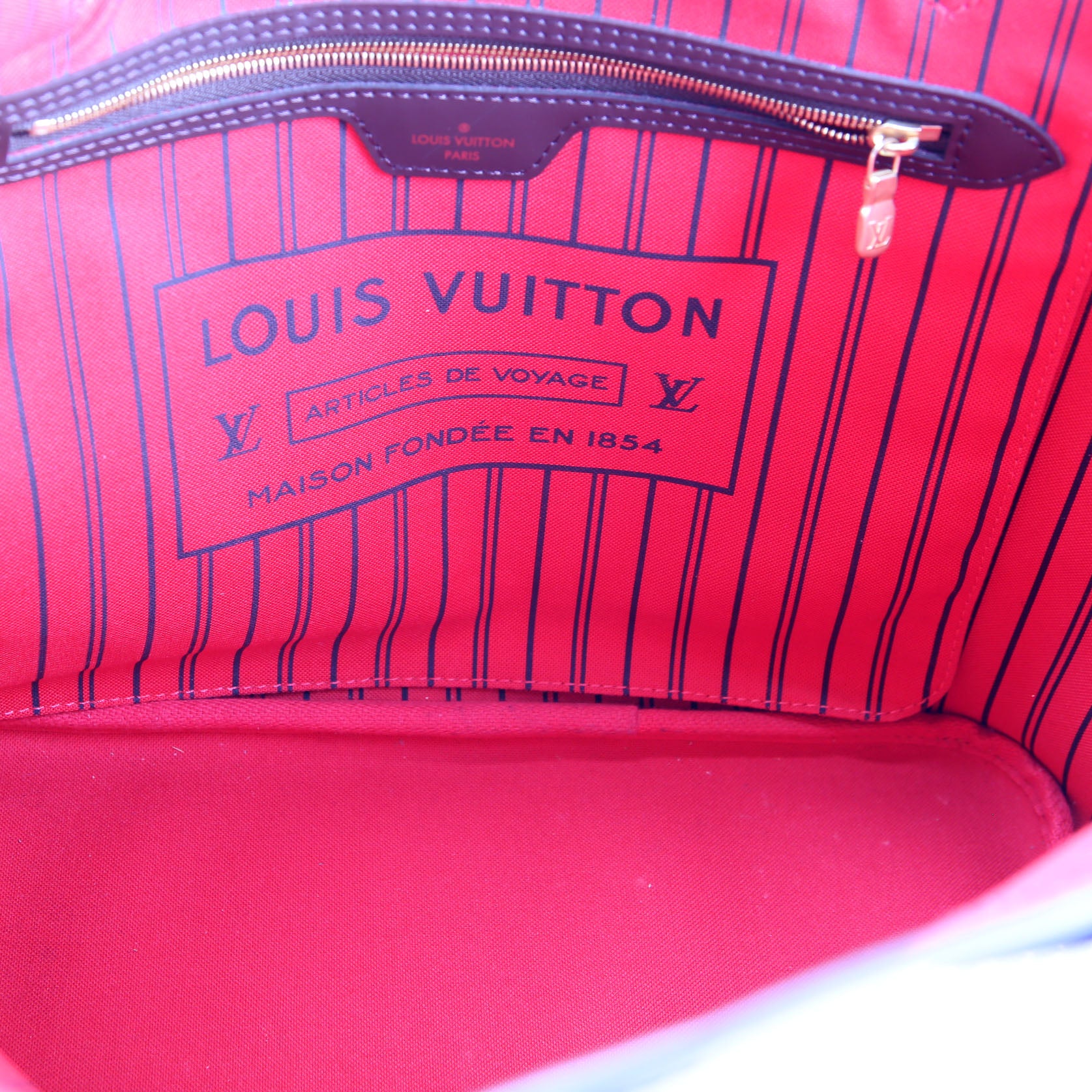 Interior: The interior is free from wear. It features one zip closure pocket.