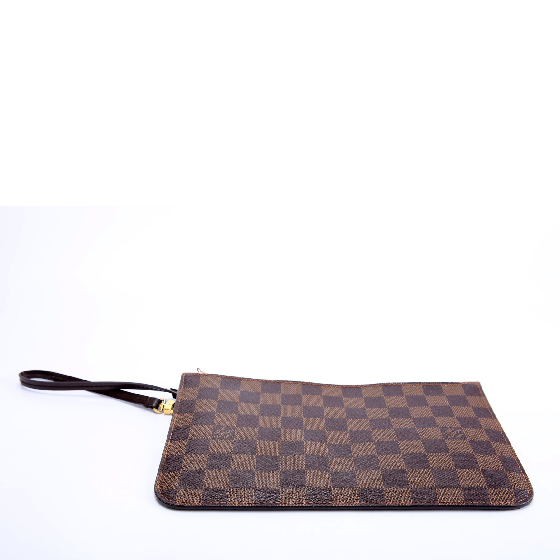 This pre-owned Louis Vuitton Pochette Only Neverfull is guaranteed 100% authentic. The exterior is in the classic Louis Vuitton Damier Ebene coated canvas.