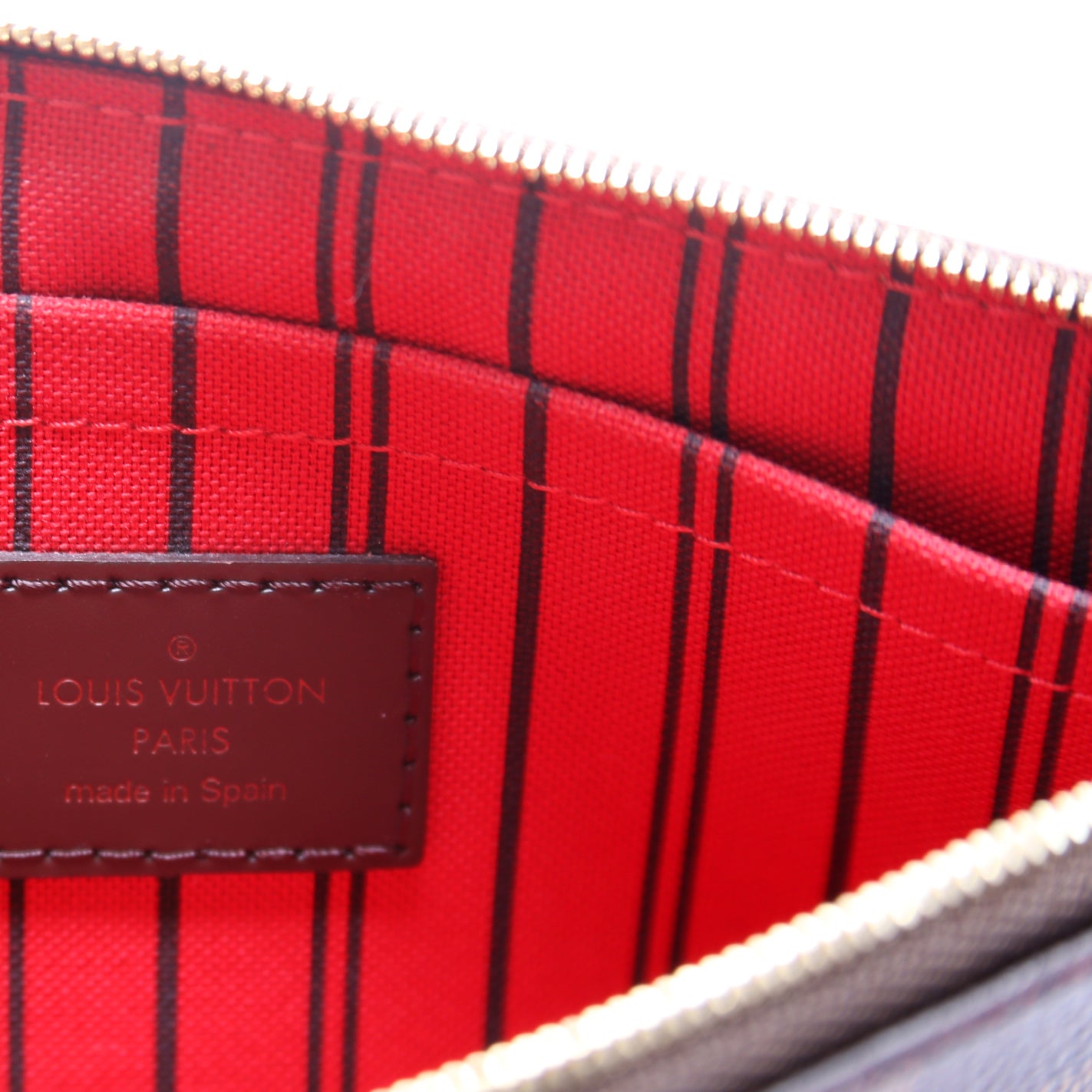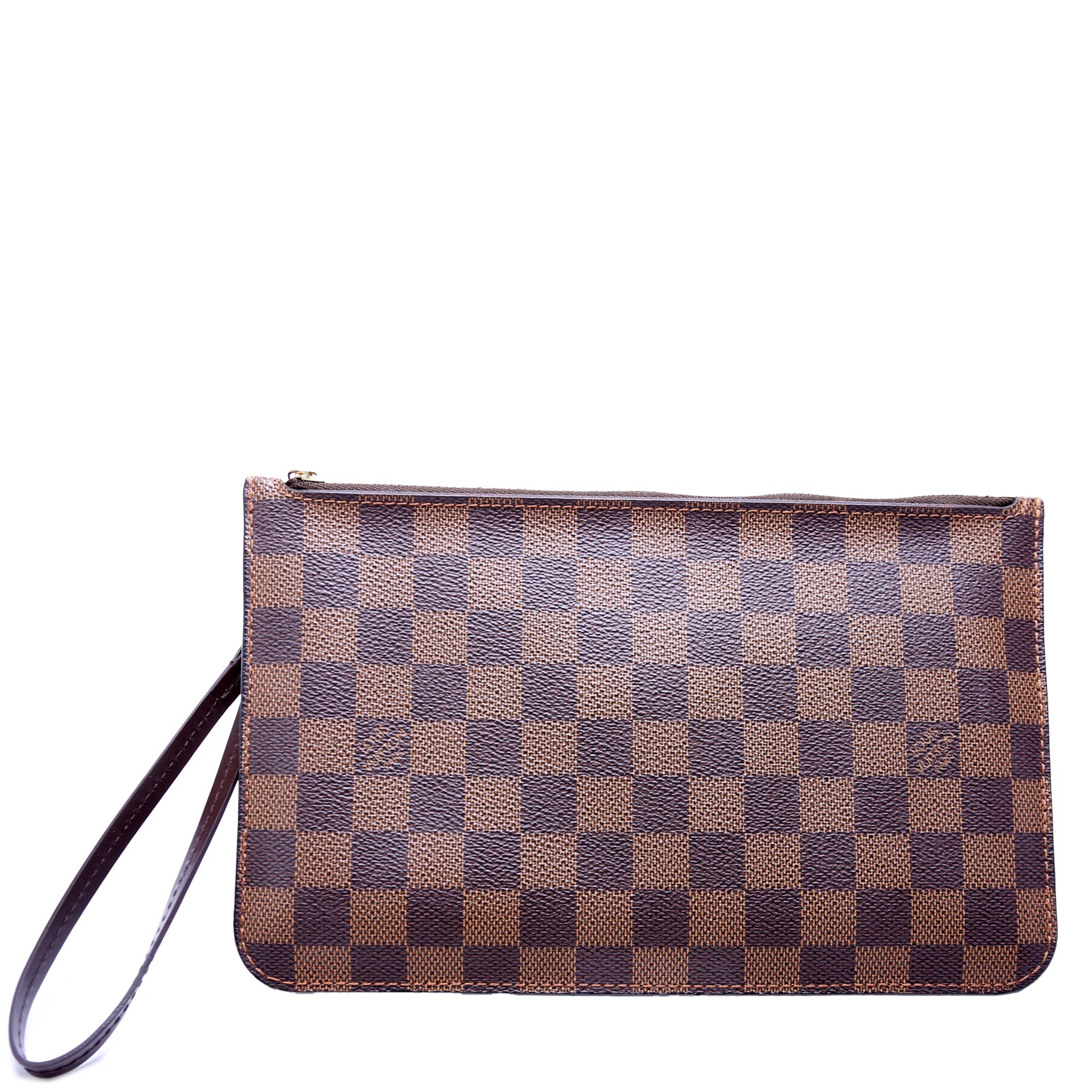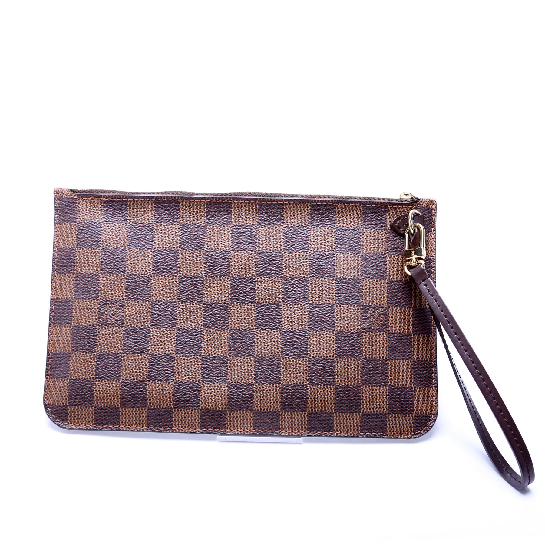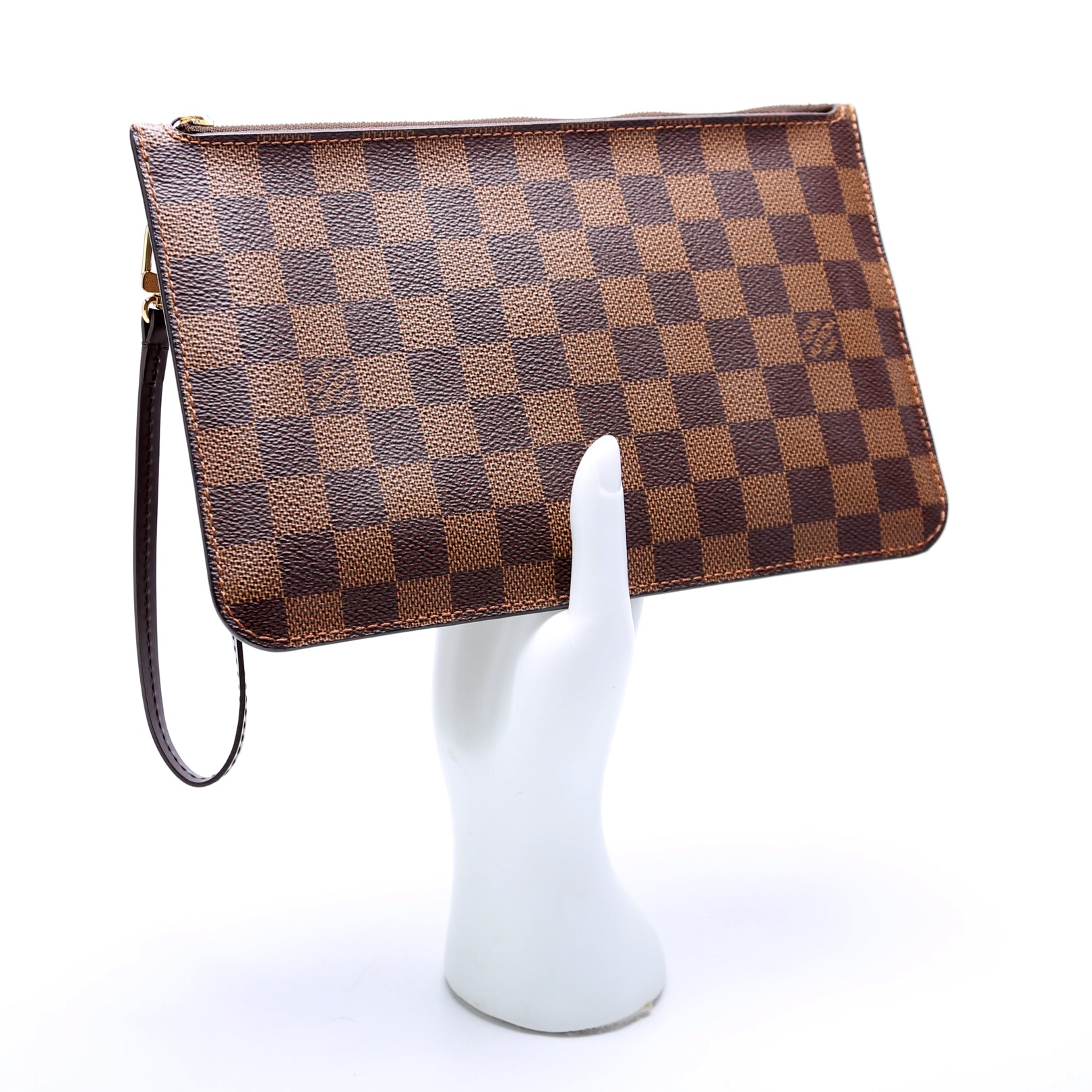 This pre-owned Louis Vuitton Pochette Only Neverfull is guaranteed 100% authentic. The exterior is in the classic Louis Vuitton Damier Ebene coated canvas.