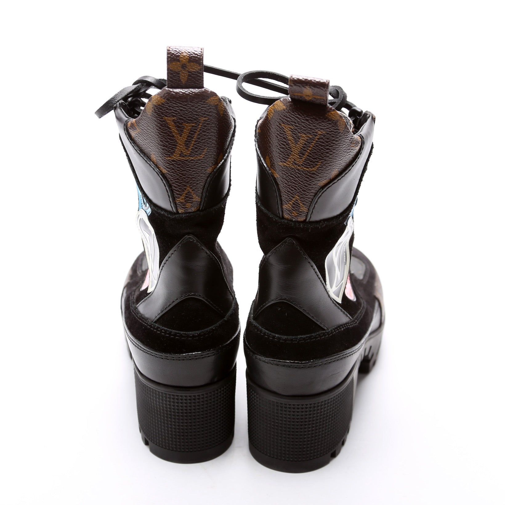 These pre-owned Louis Vuitton Laureate World Tour Desert Ankle Boots are guaranteed 100% authentic.
