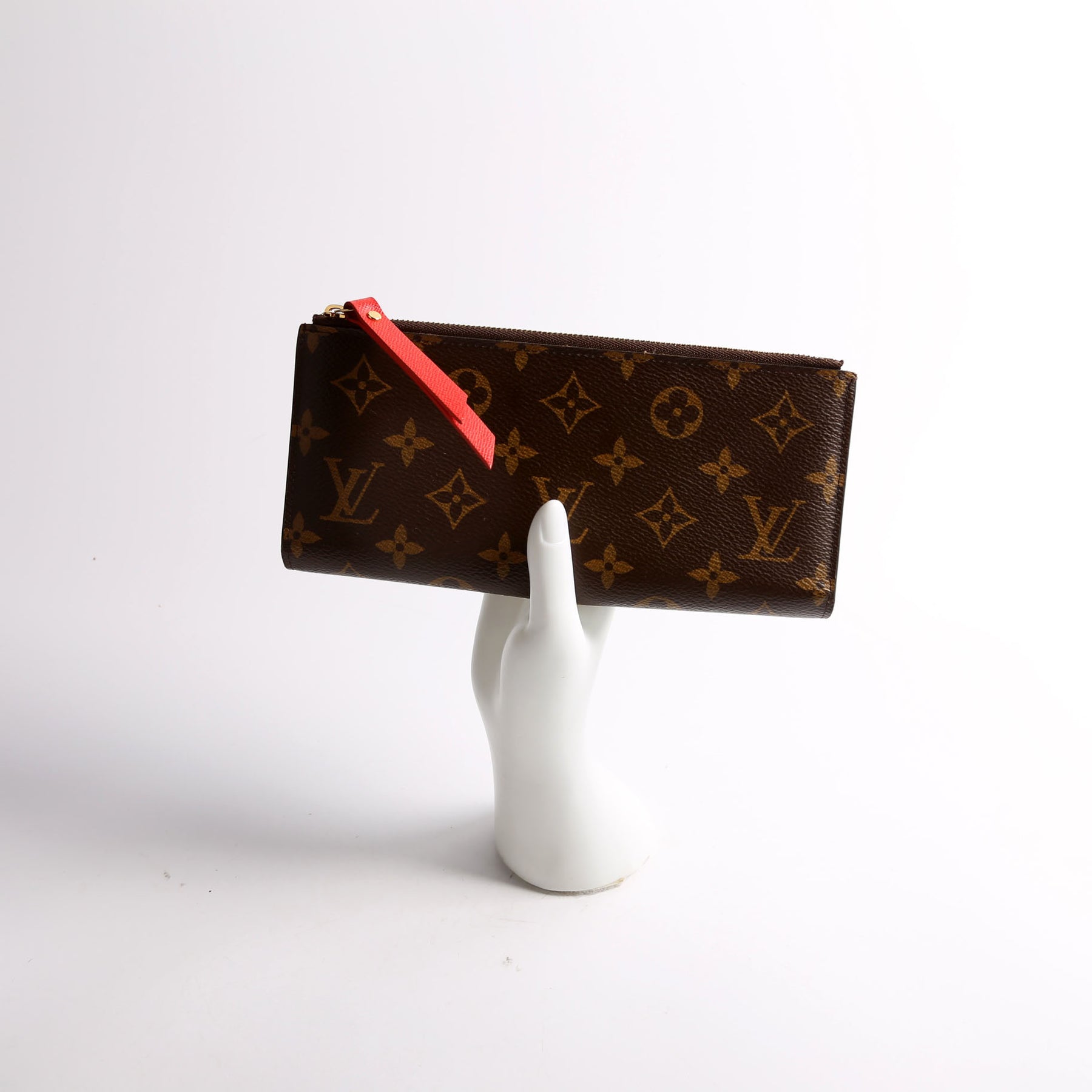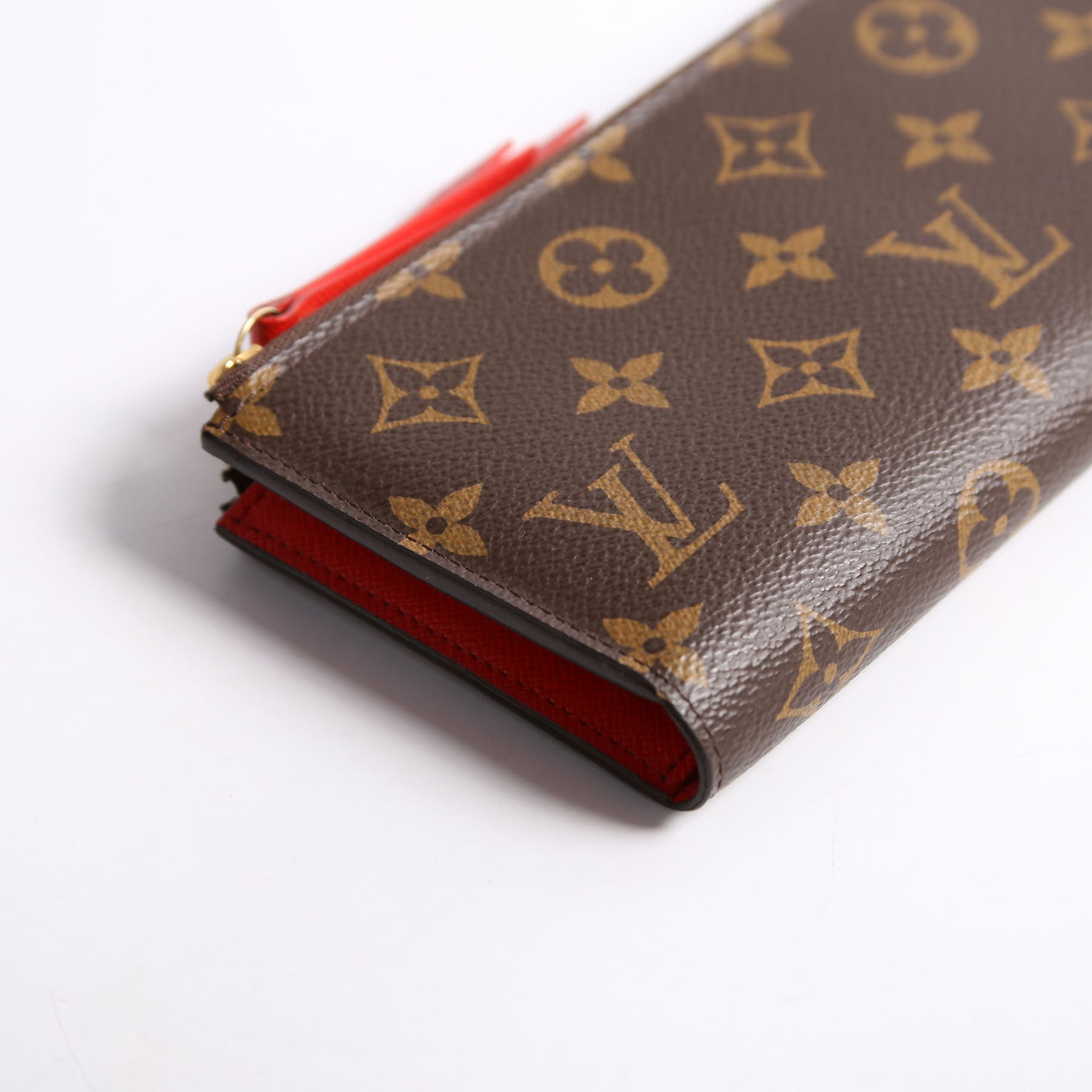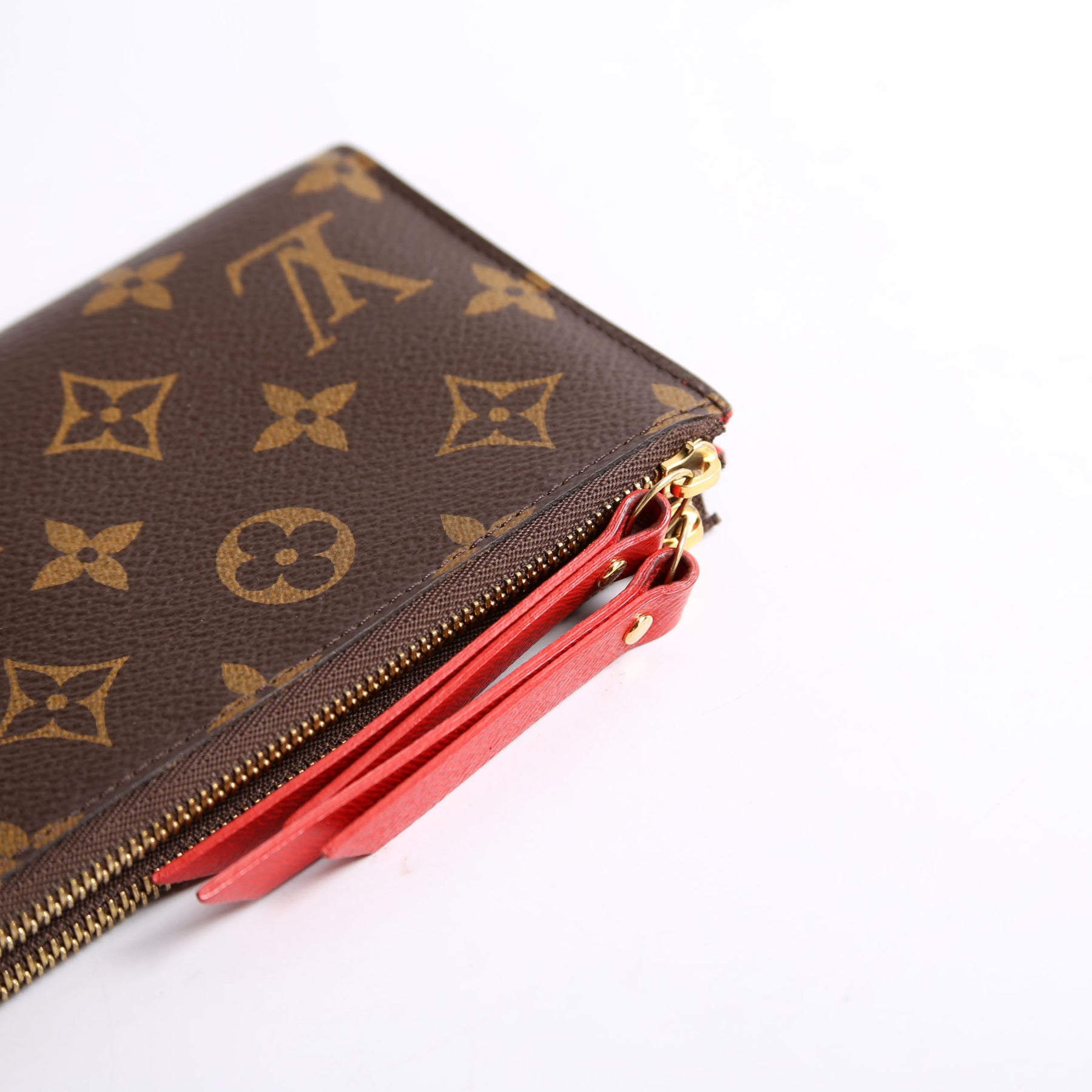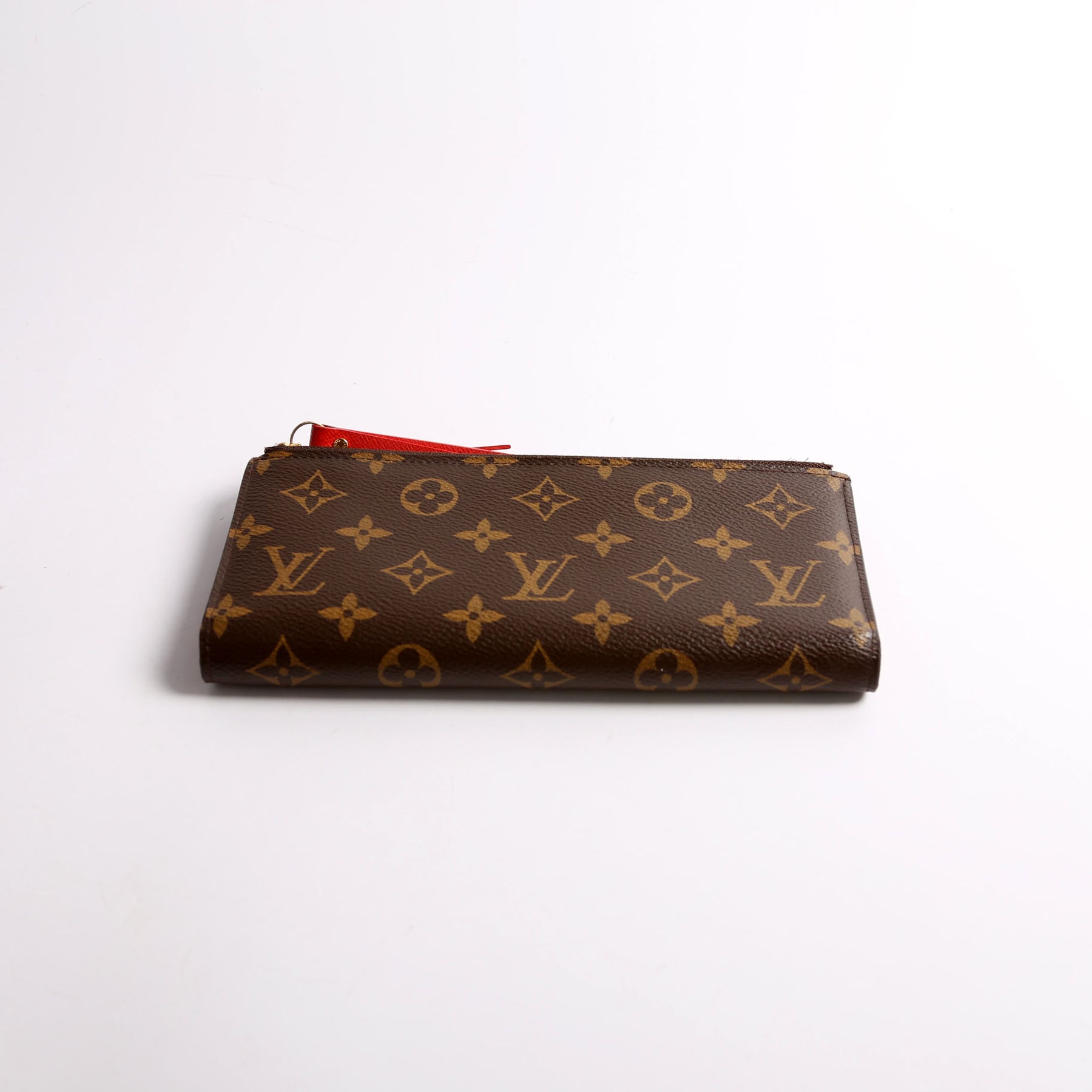 This pre-owned Louis Vuitton Adele Wallet is guaranteed 100% authentic. The exterior is in the classic Louis Vuitton Monogram coated canvas.