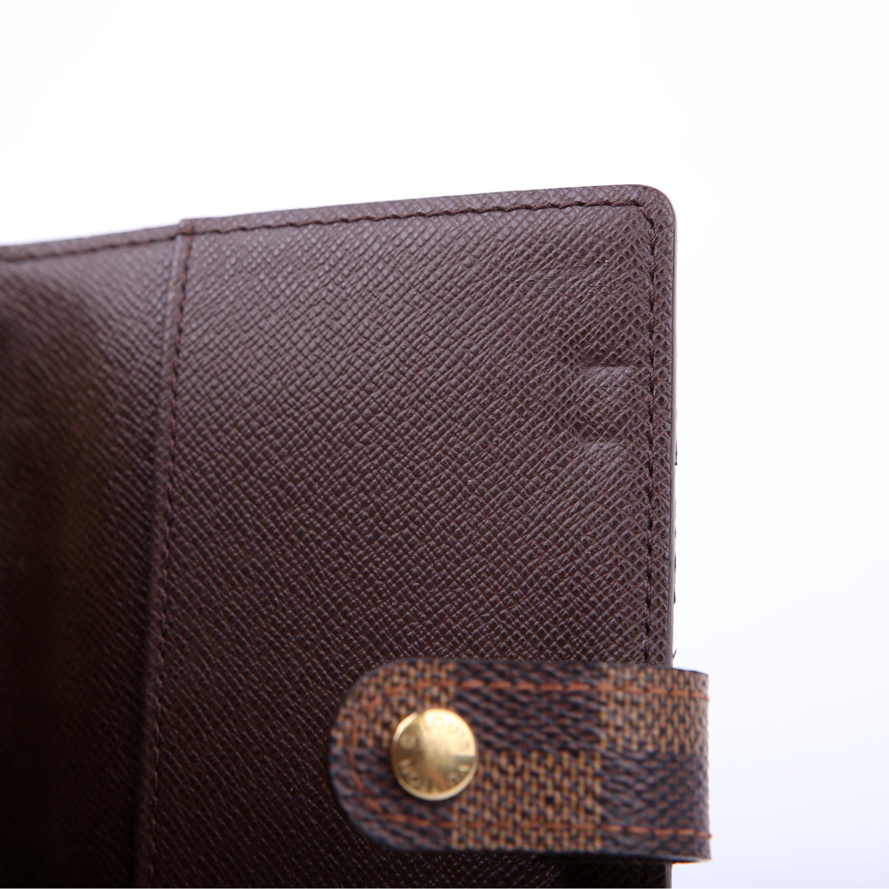 This pre-owned Louis Vuitton Agenda Small Ring is guaranteed 100% authentic. The exterior is in the classic Damier Ebene coated canvas.