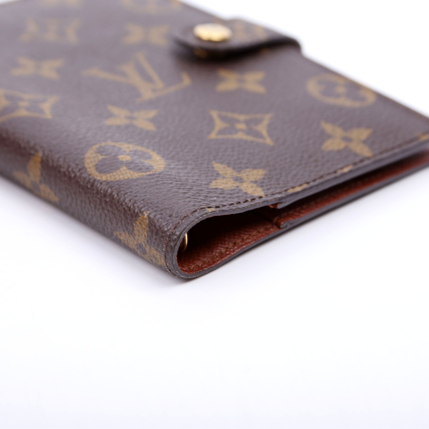 This pre-owned Louis Vuitton Agenda Small Ring is guaranteed 100% authentic. The exterior is in the classic Monogram coated canvas.