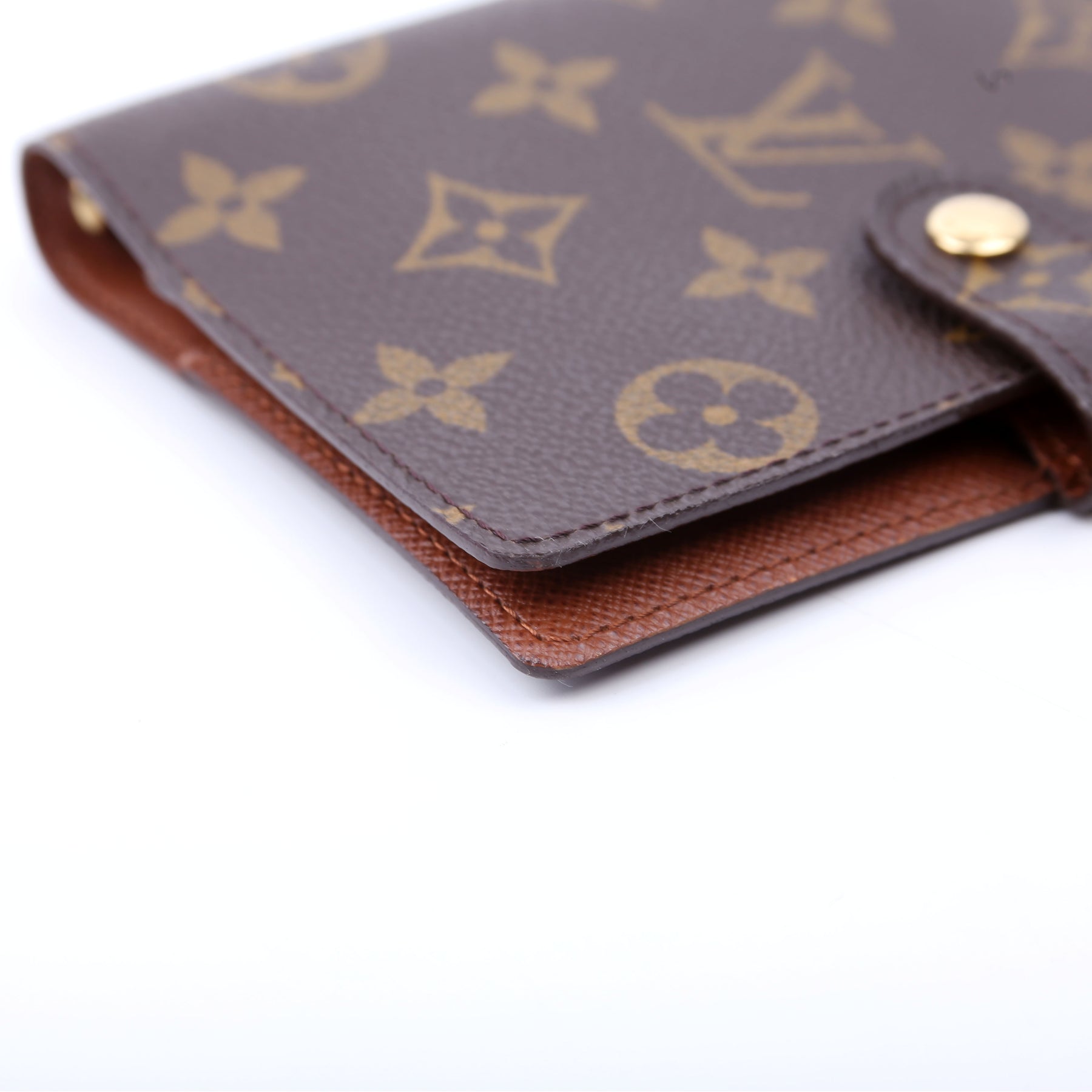 This pre-owned Louis Vuitton Agenda Small Ring is guaranteed 100% authentic. The exterior is in the classic Monogram coated canvas.