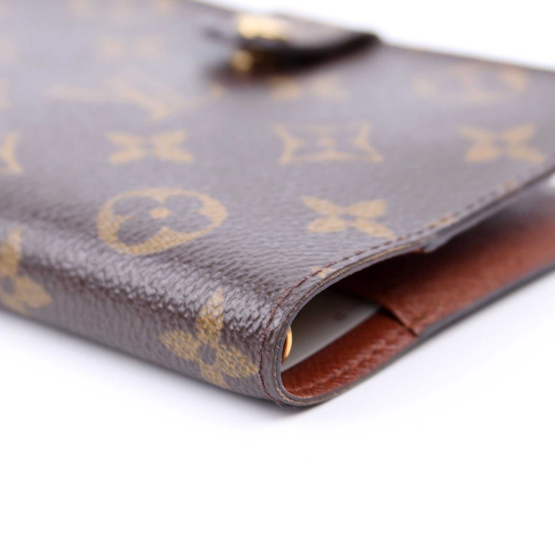 This pre-owned Louis Vuitton Agenda Small Ring is guaranteed 100% authentic. The exterior is in the classic Louis Vuitton Monogram coated canvas.