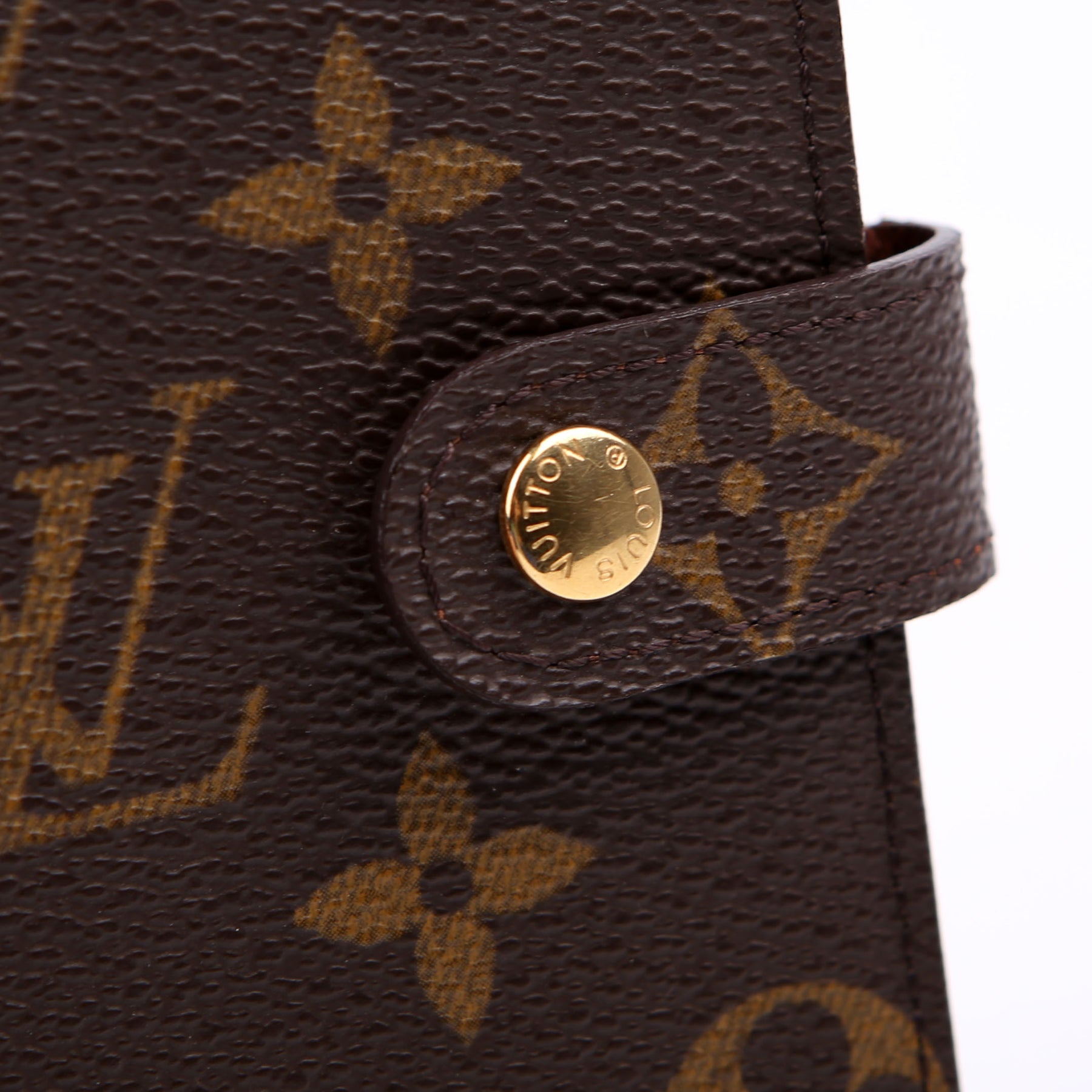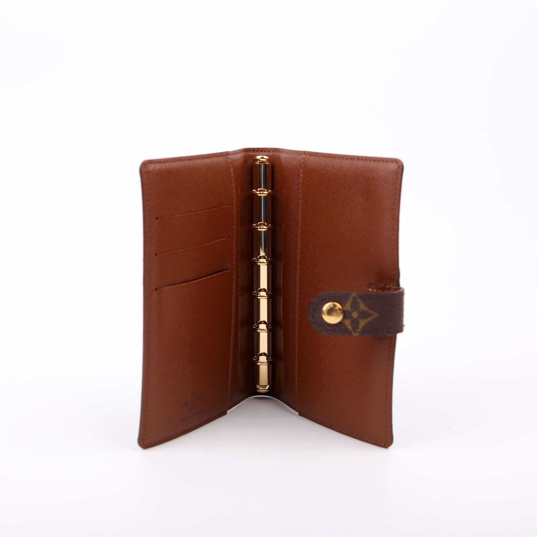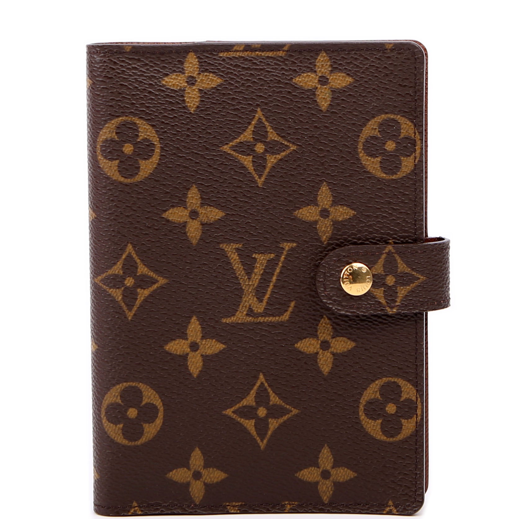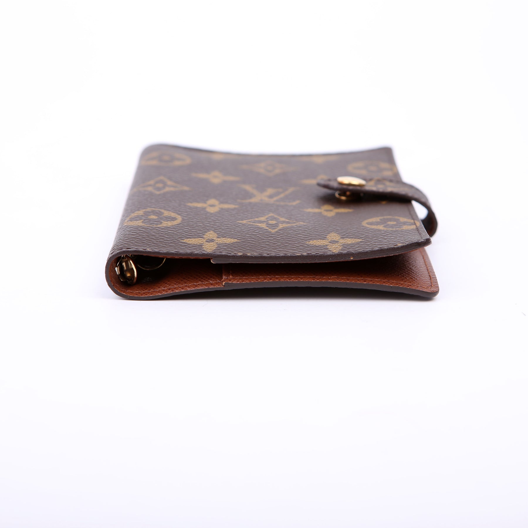 This pre-owned Louis Vuitton Agenda Small Ring is guaranteed 100% authentic. The exterior is in the classic Louis Vuitton Monogram coated canvas.