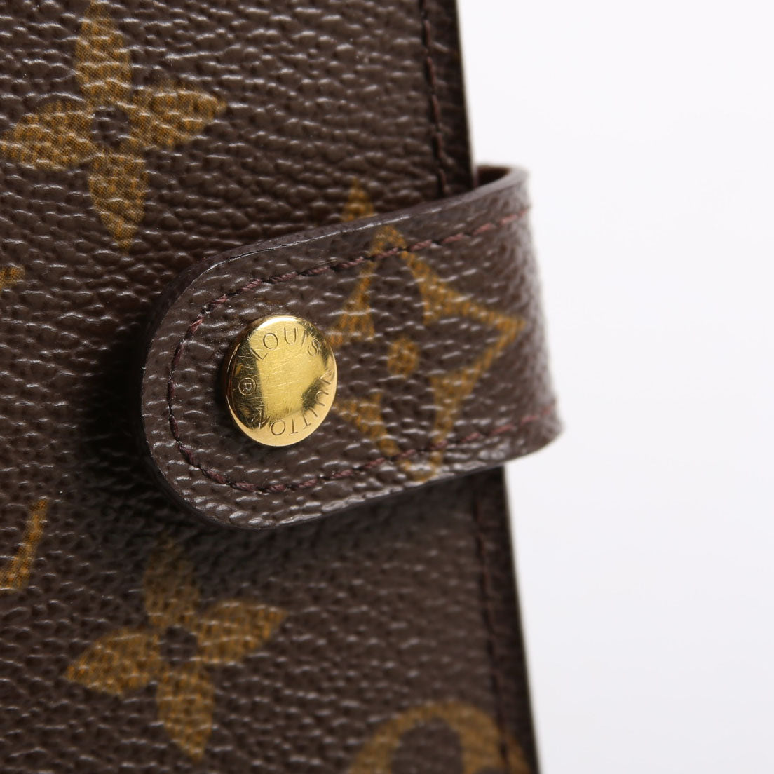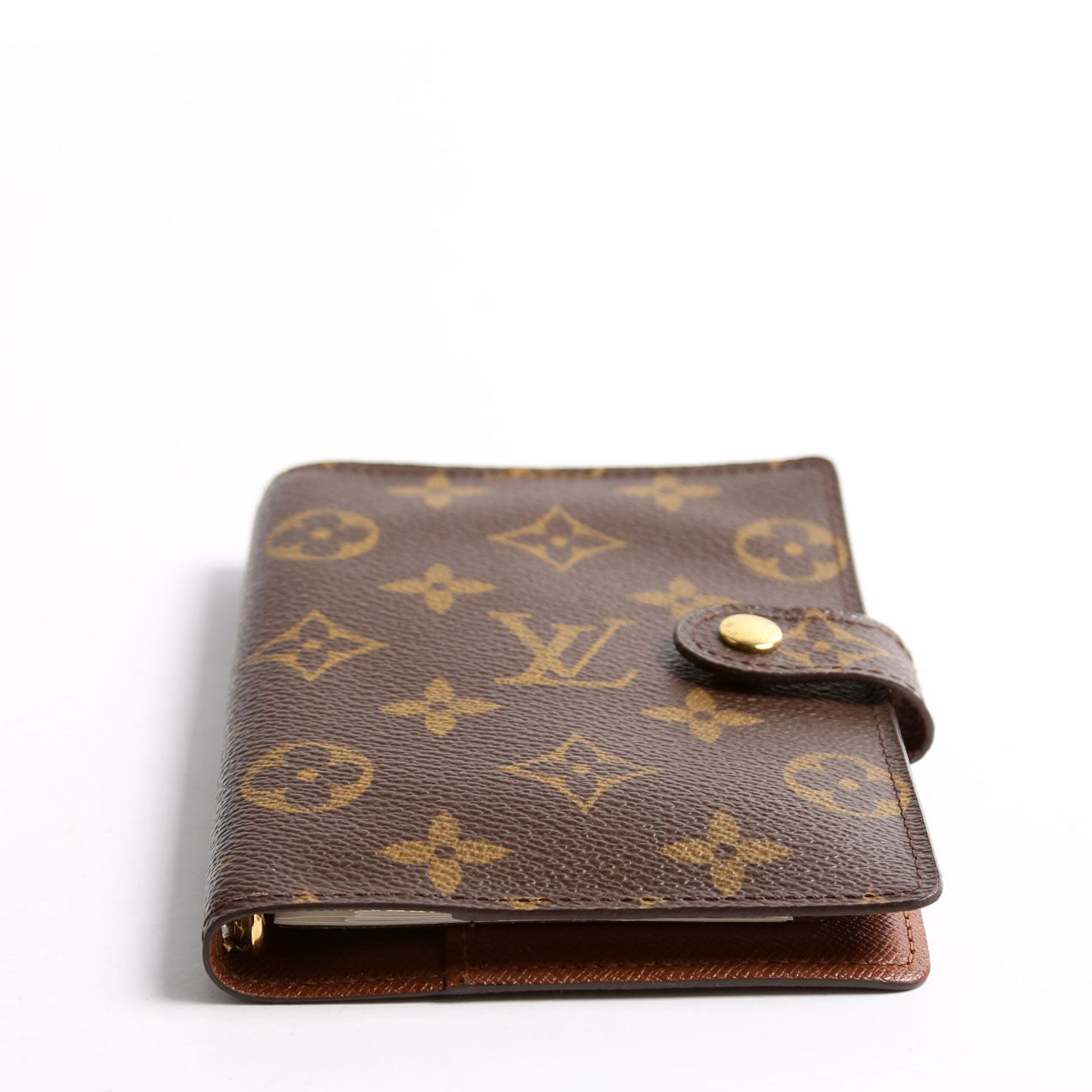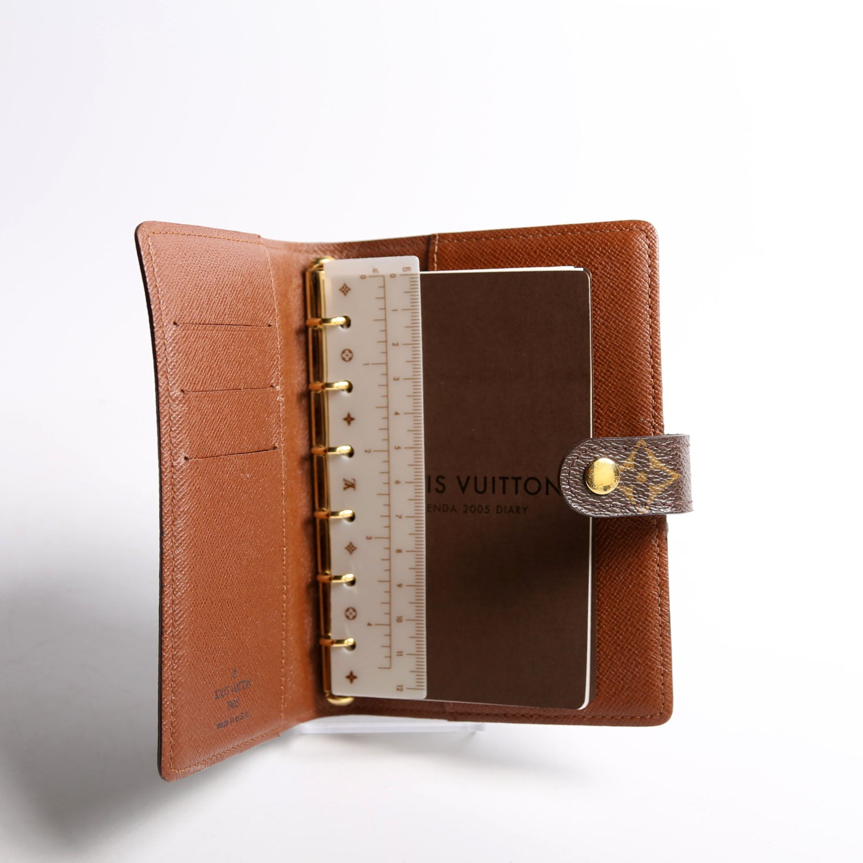 This pre-owned Louis Vuitton Agenda Small Ring is guaranteed 100% authentic. The exterior is in the classic Louis Vuitton Monogram coated canvas.