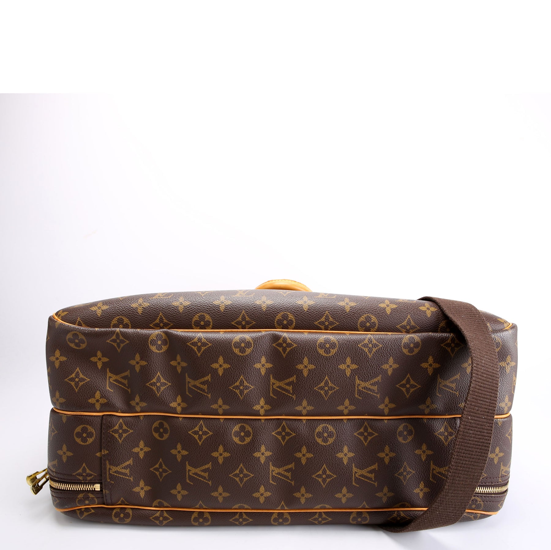 This pre-owned Louis Vuitton Alize 2 Compartment is guaranteed 100% authentic. The exterior is in the classic Louis Vuitton Monogram Coated Canvas.