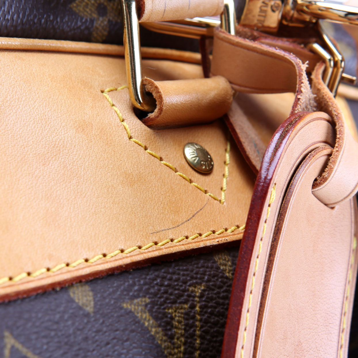 This pre-owned Louis Vuitton Alize 2 Compartment is guaranteed 100% authentic. The exterior is in the classic Louis Vuitton Monogram Coated Canvas.