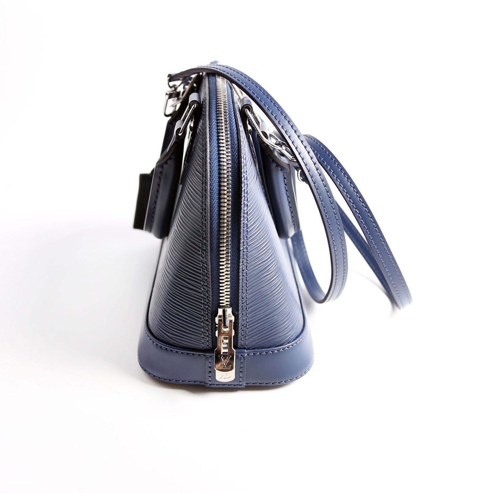 This pre-owned Louis Vuitton Alma BB Epi Leather is guaranteed 100% authentic. The exterior is in the classic Louis Vuitton Epi Leather material.