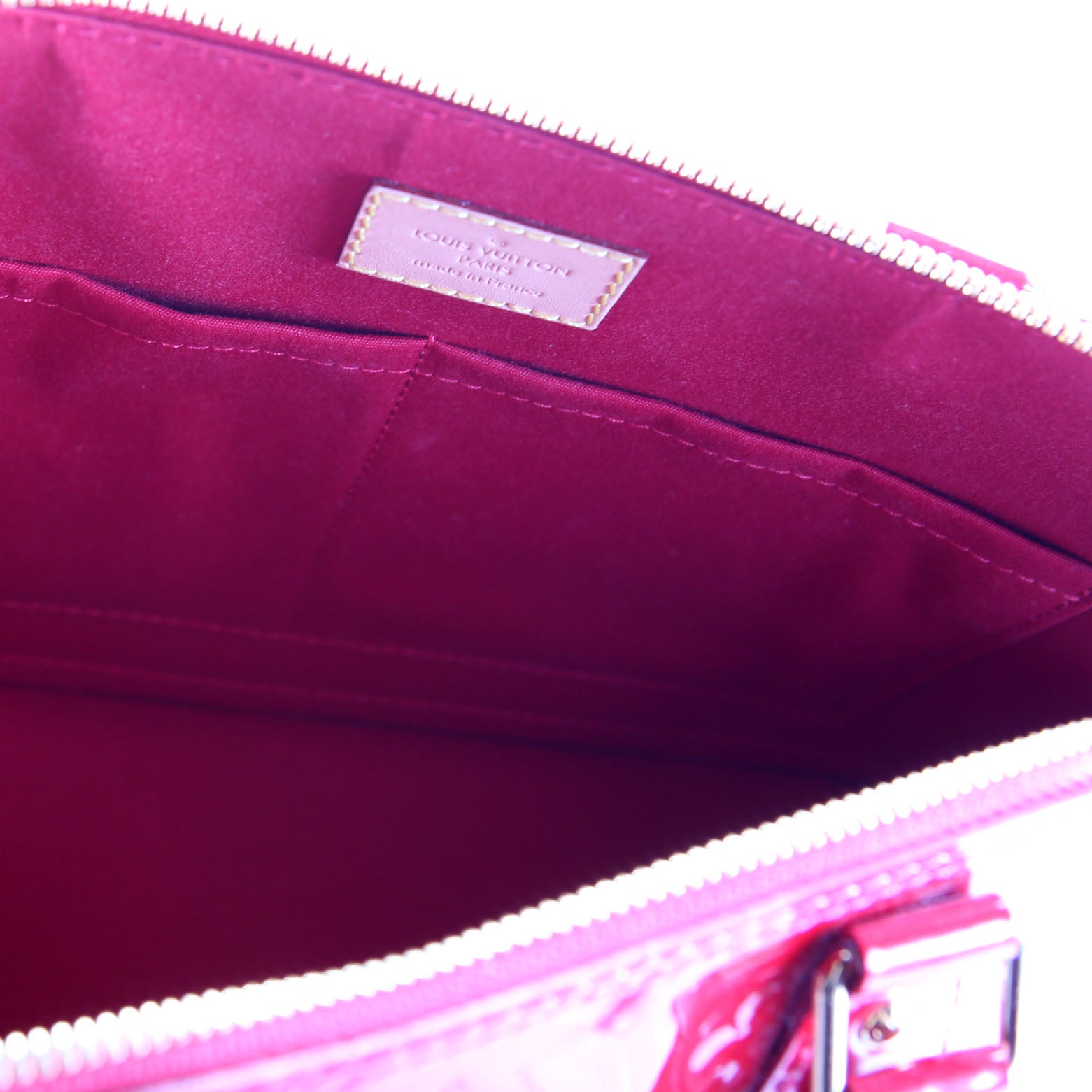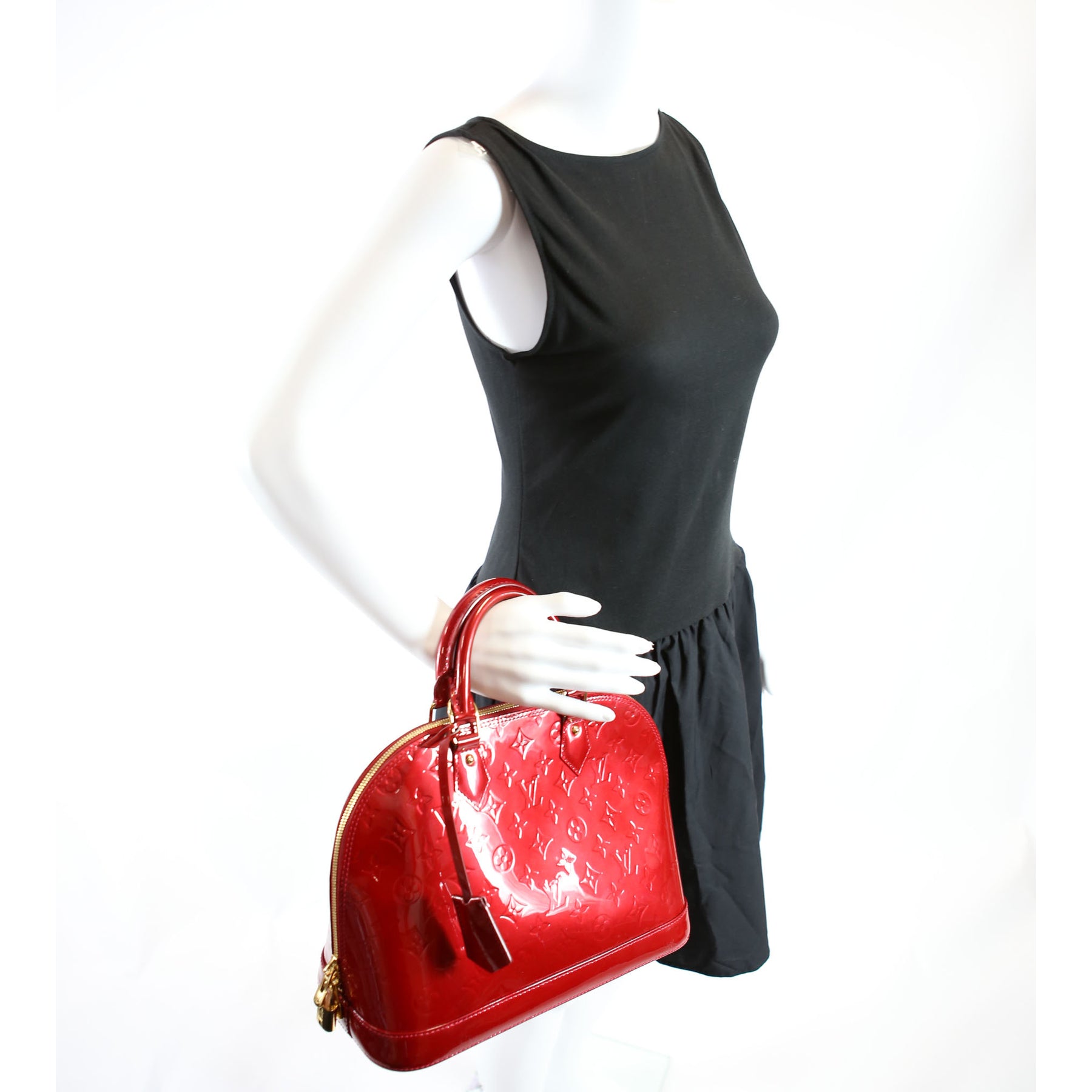 This pre-owned Louis Vuitton Alma PM is guaranteed 100% authentic. The exterior is in the classic Vernis leather.