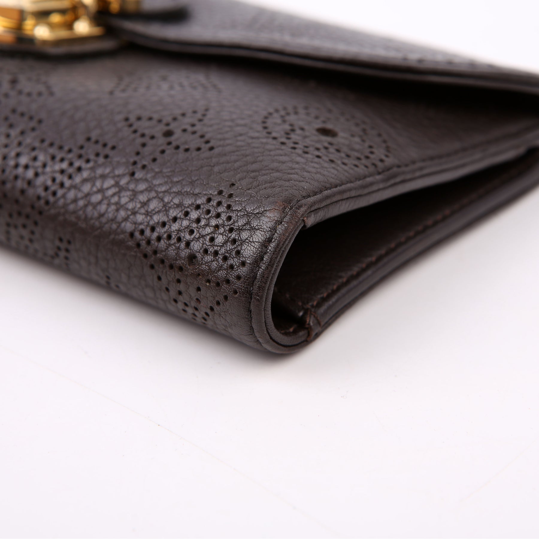 This pre-owned Louis Vuitton Amelia Wallet is guaranteed 100% authentic. The exterior is in the classic Mahina leather.