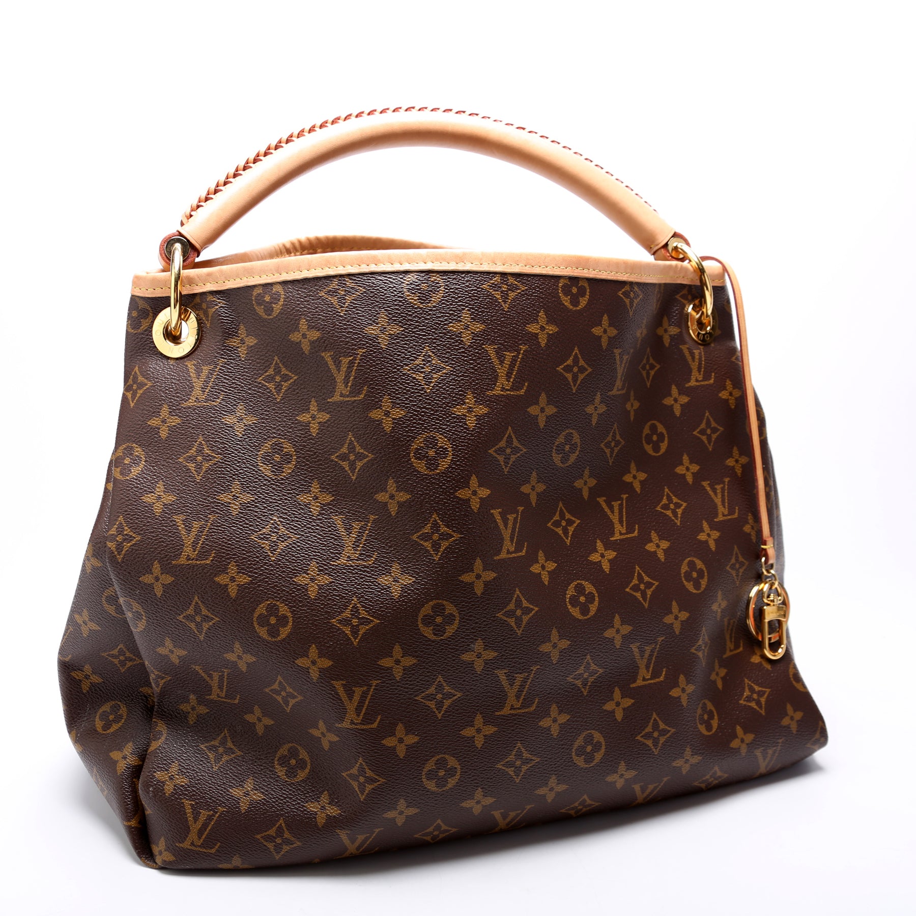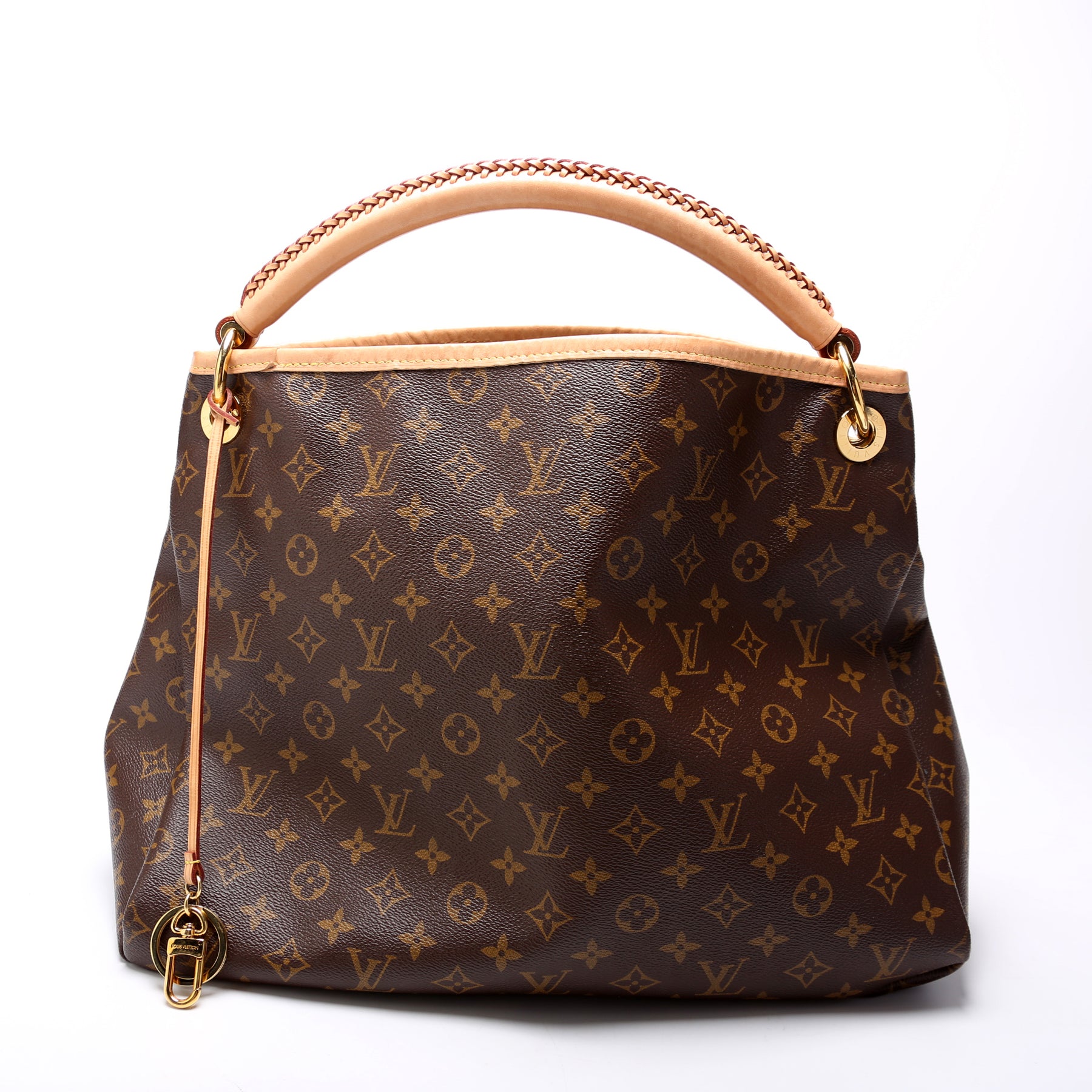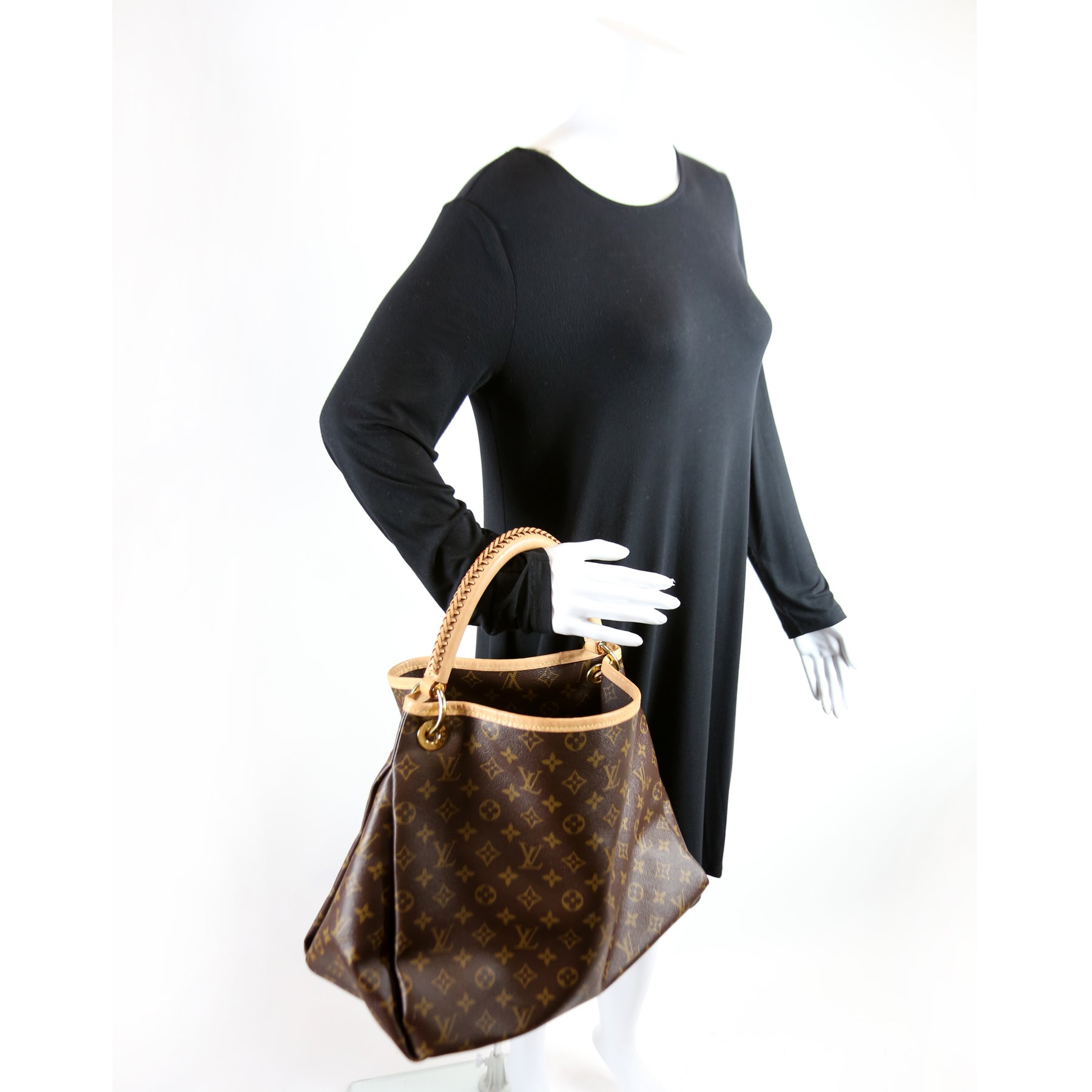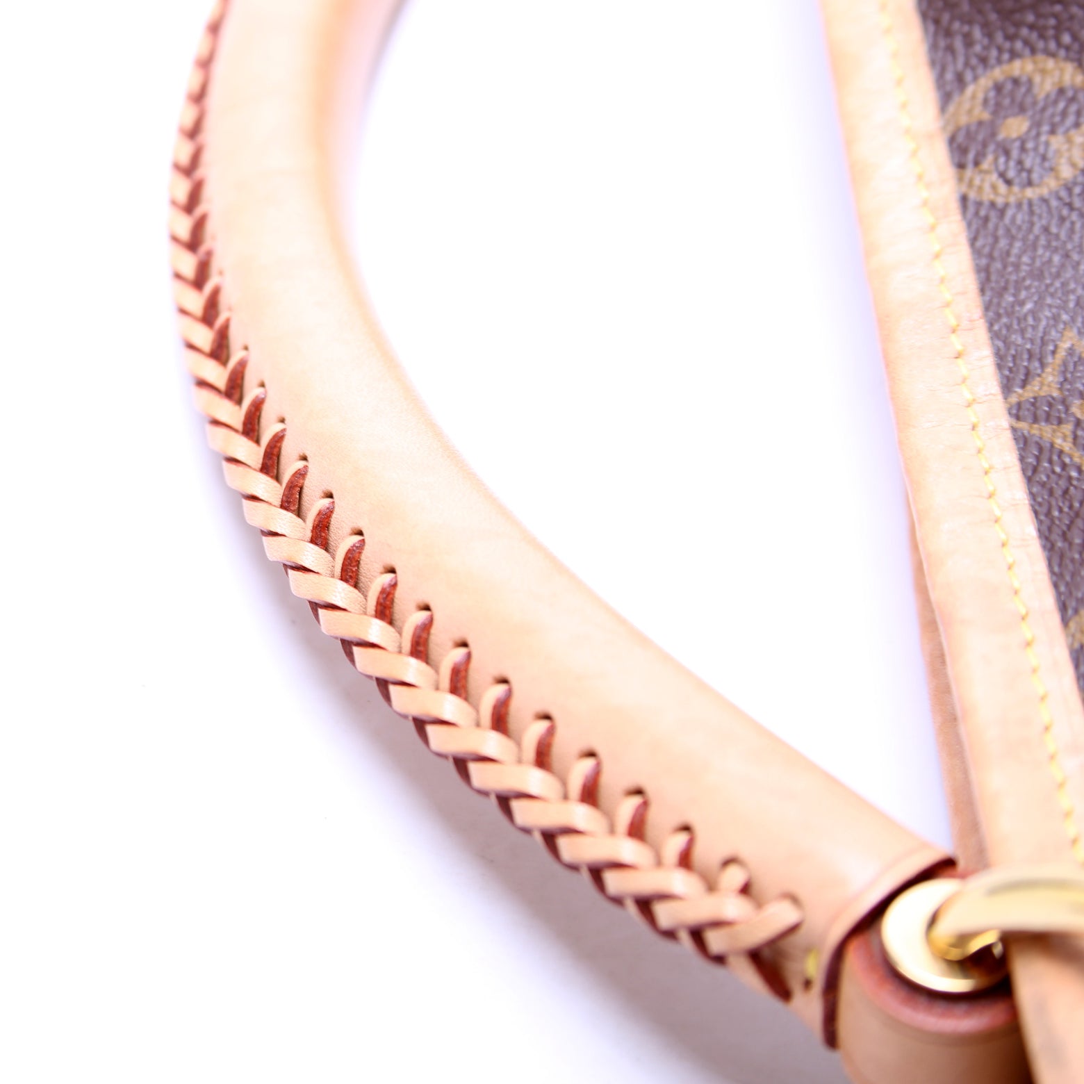 This pre-owned Louis Vuitton Artsy MM is guaranteed 100% authentic. The exterior is in the classic Louis Vuitton Monogram coated canvas.