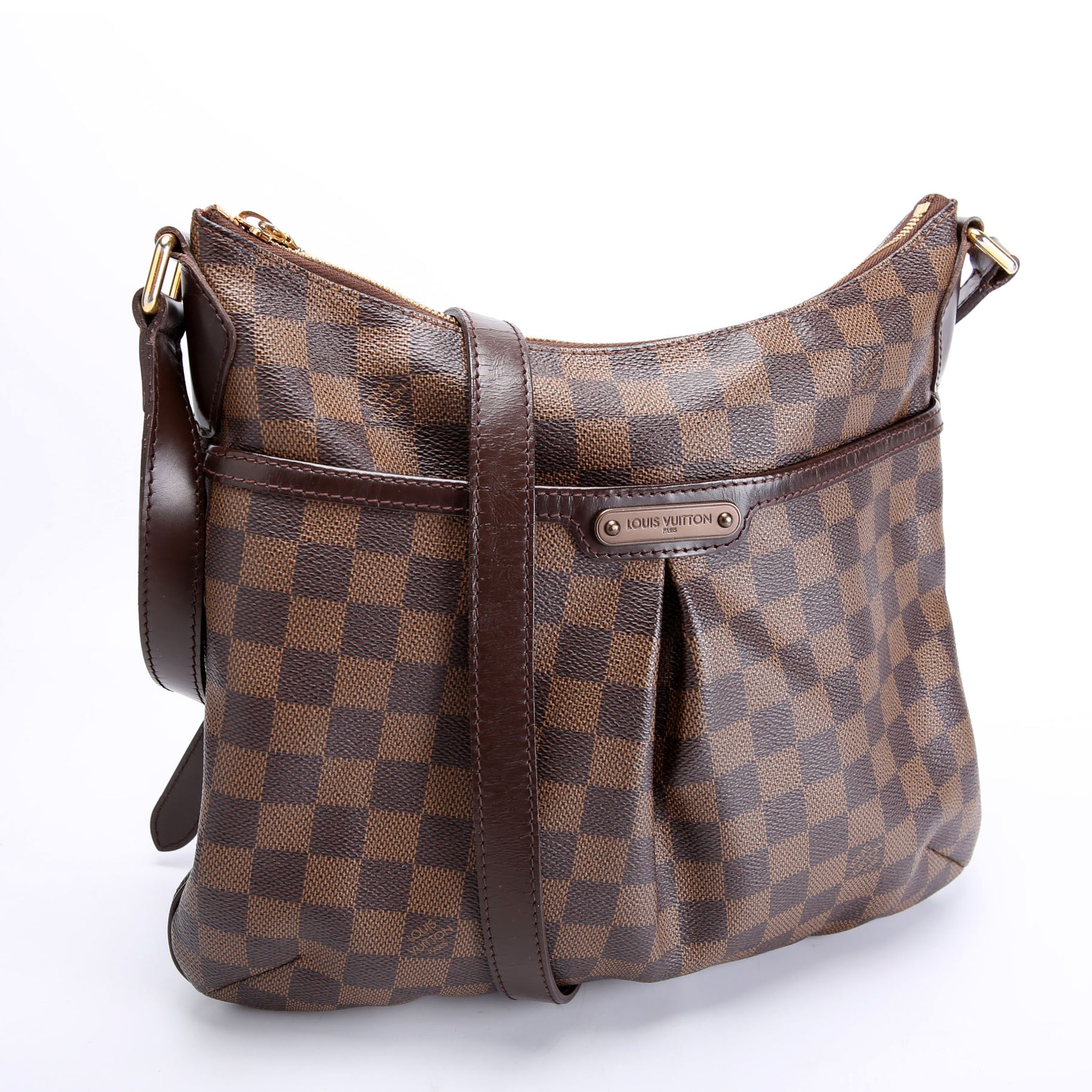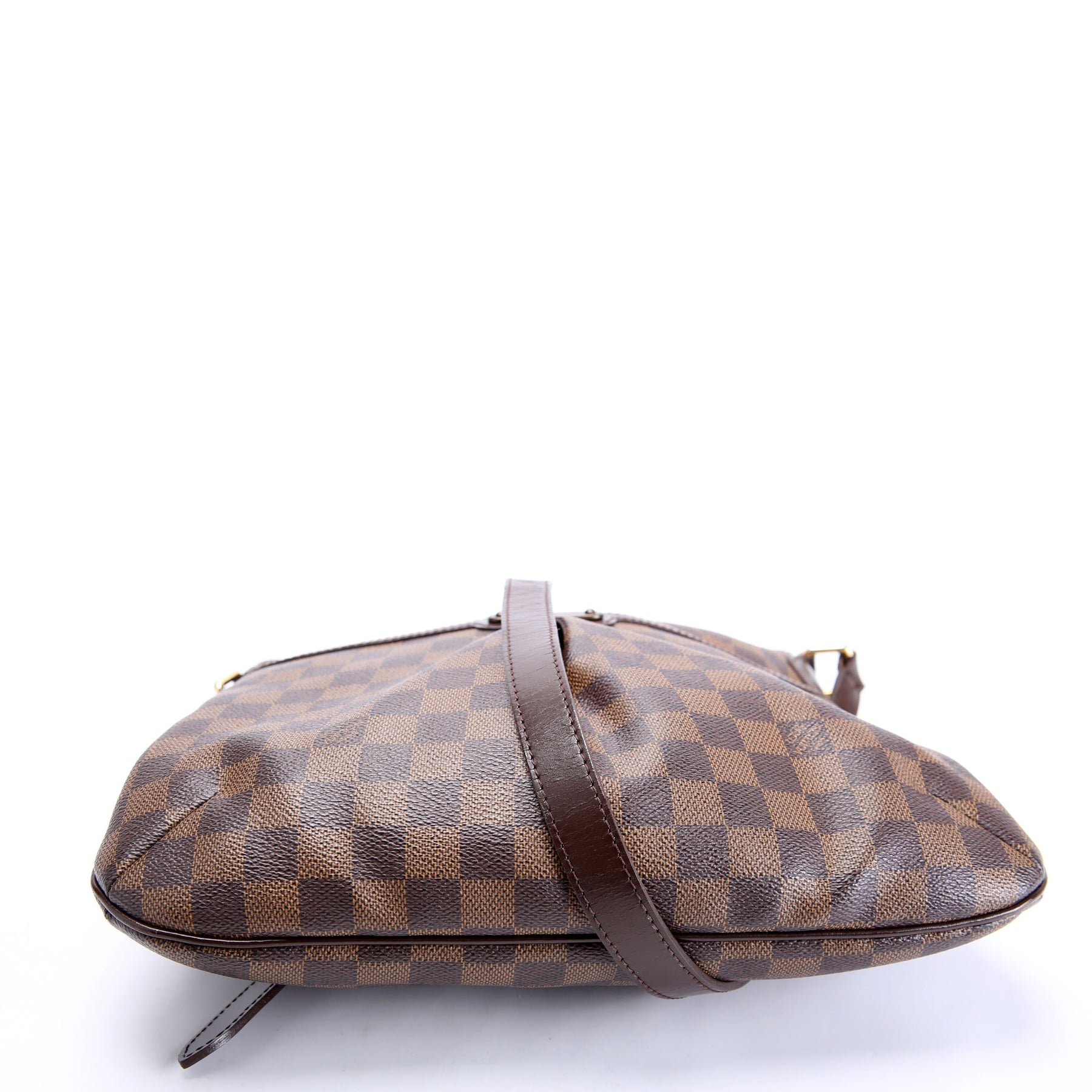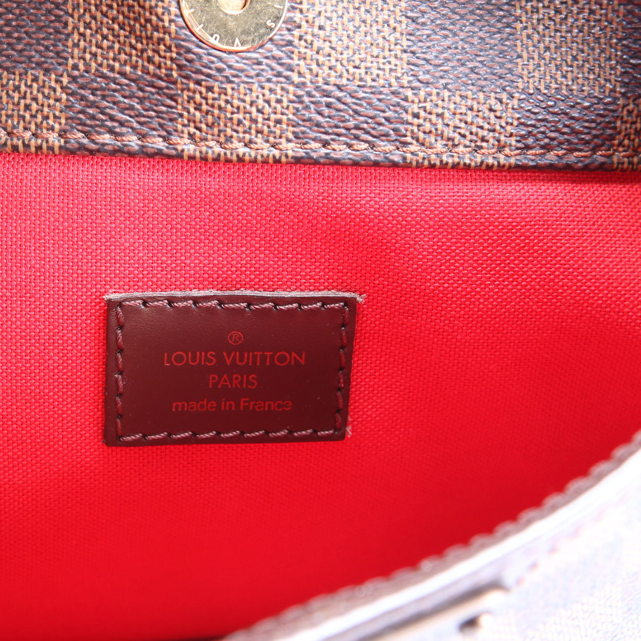 This pre-owned Louis Vuitton Bloomsbury PM is guaranteed 100% authentic. The exterior is in the classic Louis Vuitton Coated Canvas Damier Ebene
