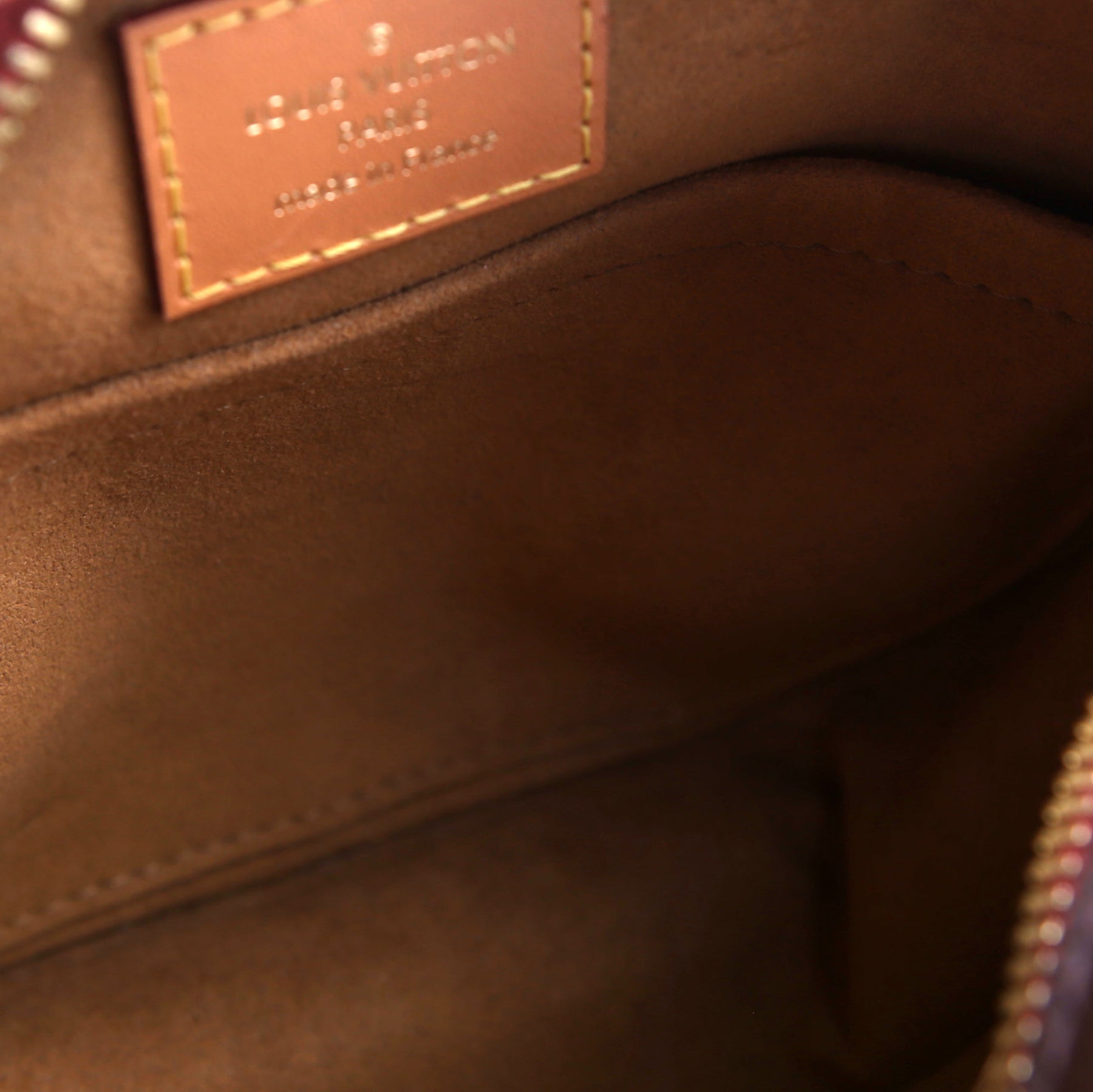 Hardware: The zipper operates properly and runs smoothly. The leather zipper pulls show minor wear.