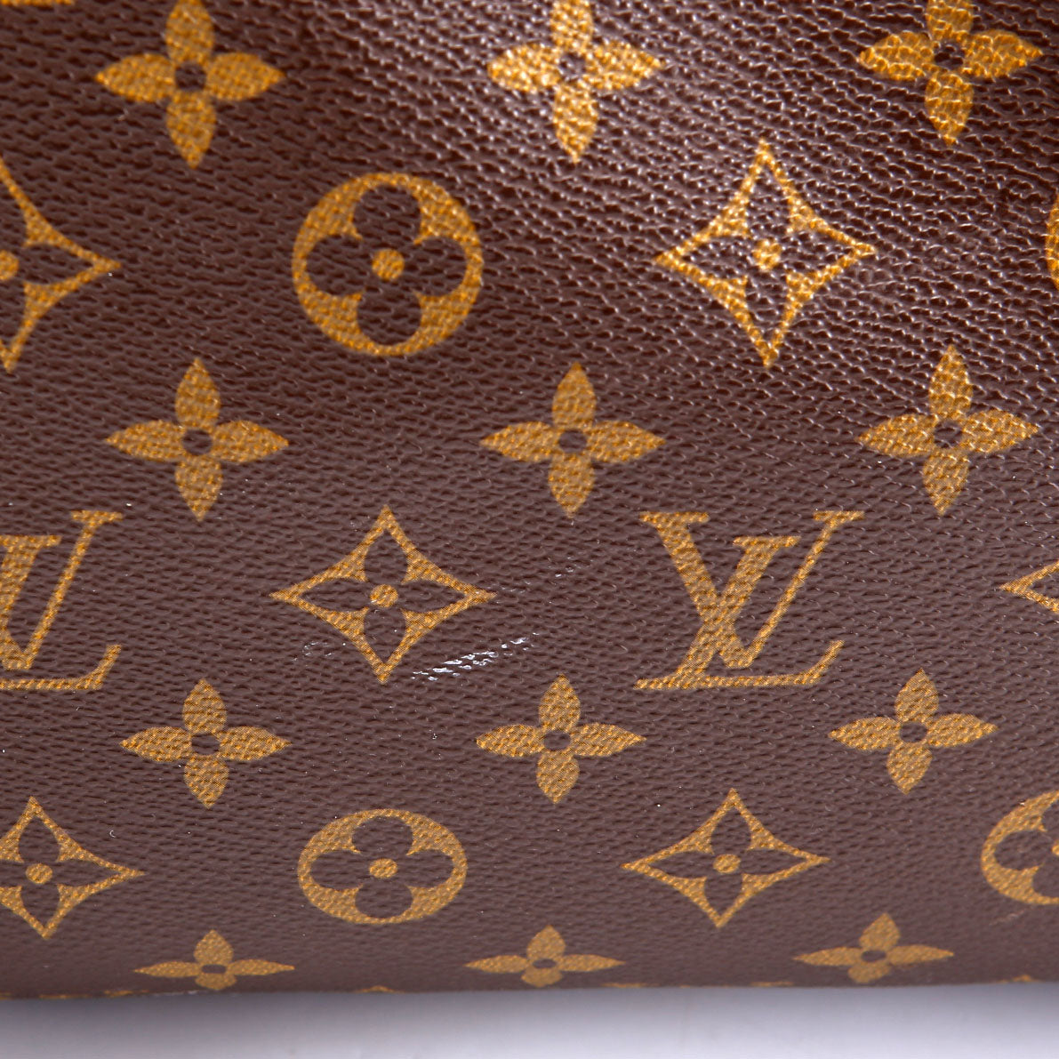 This pre-owned Louis Vuitton Boulogne 50 is guaranteed 100% authentic. The exterior is in the classic Louis Vuitton Coated Canvas Monogram.