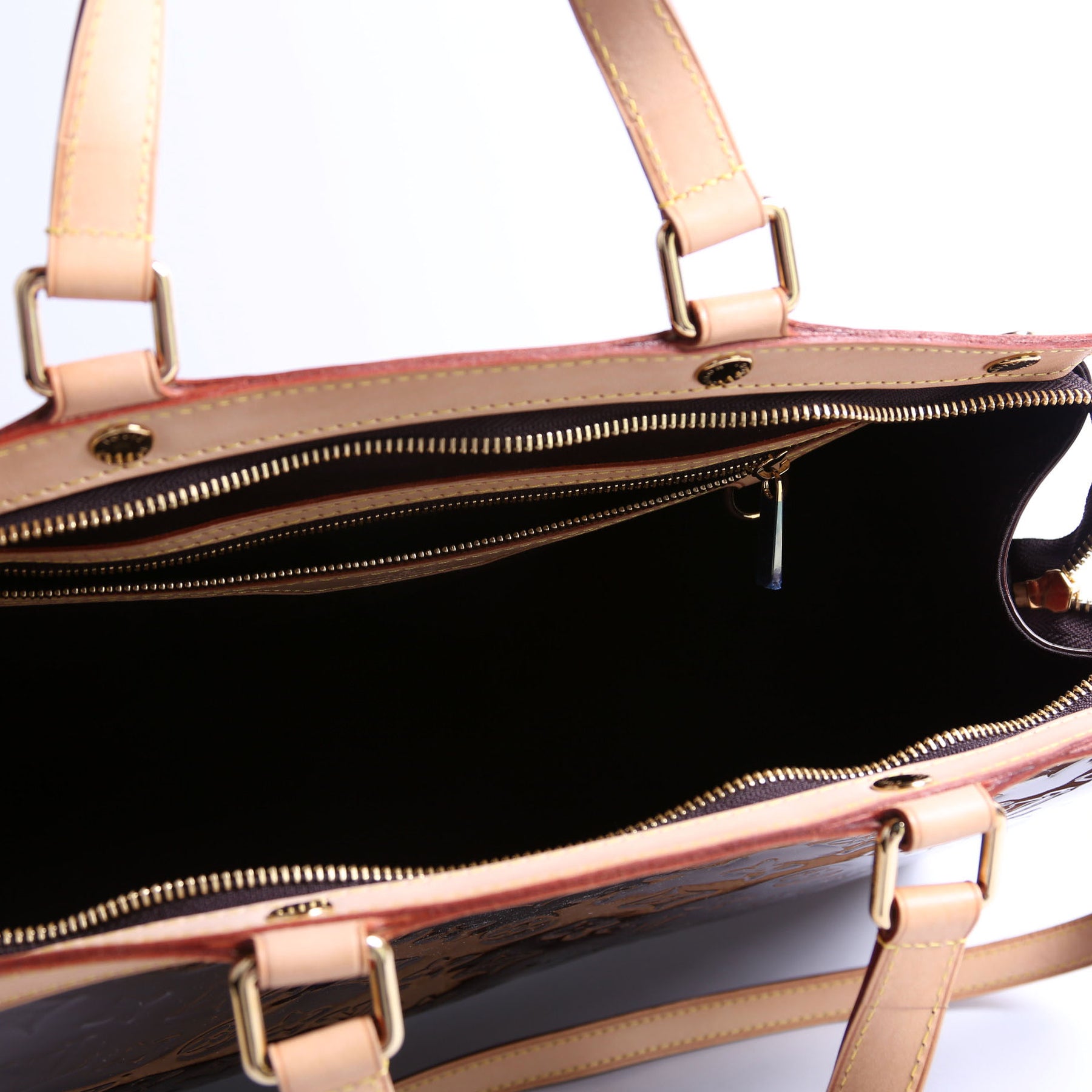 Interior: The interior is free from wear. It features two open pockets, and one zip closure pocket.