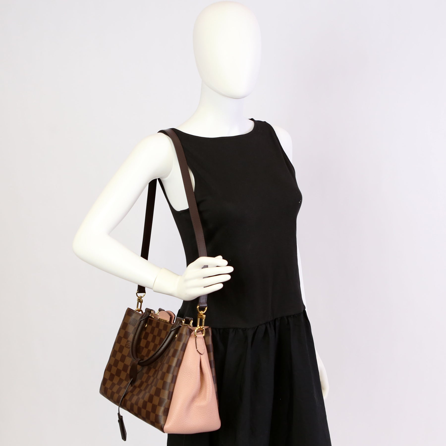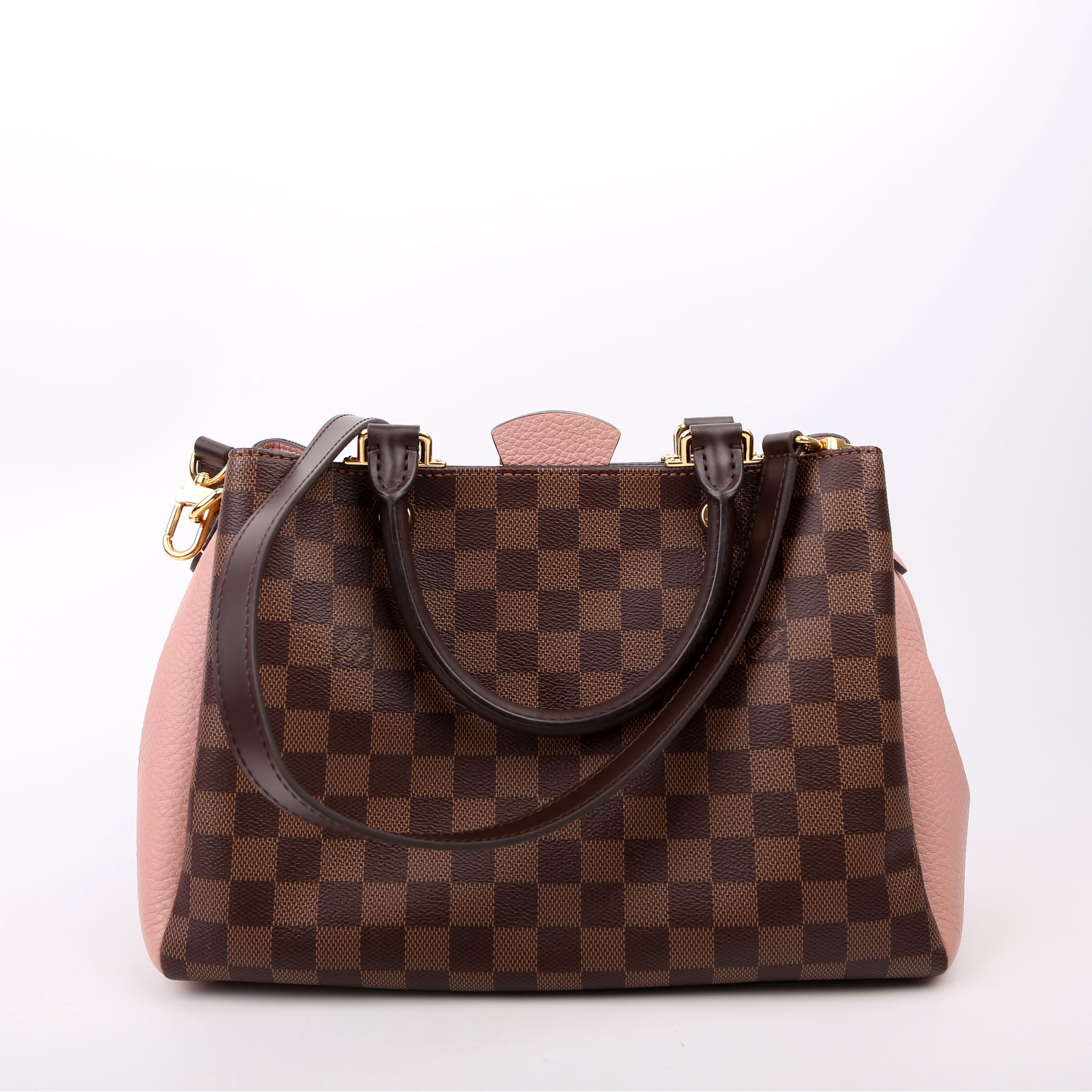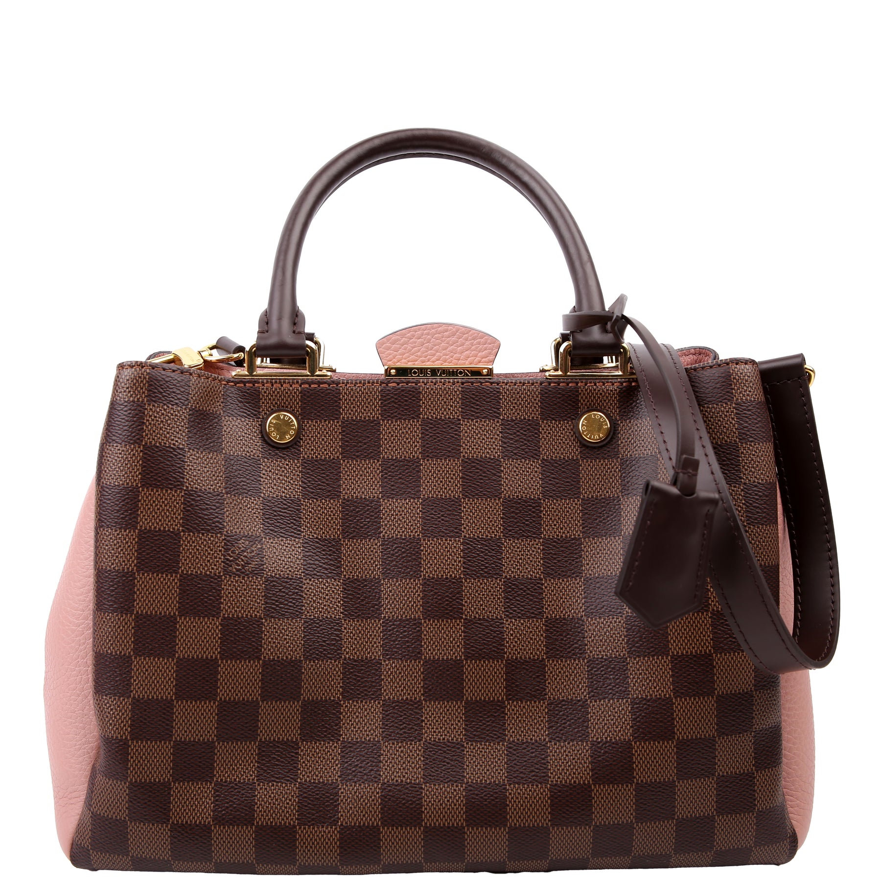 This pre-owned Louis Vuitton Brittany is guaranteed 100% authentic. The exterior is in the classic Louis Vuitton Damier Ebene coated canvas.