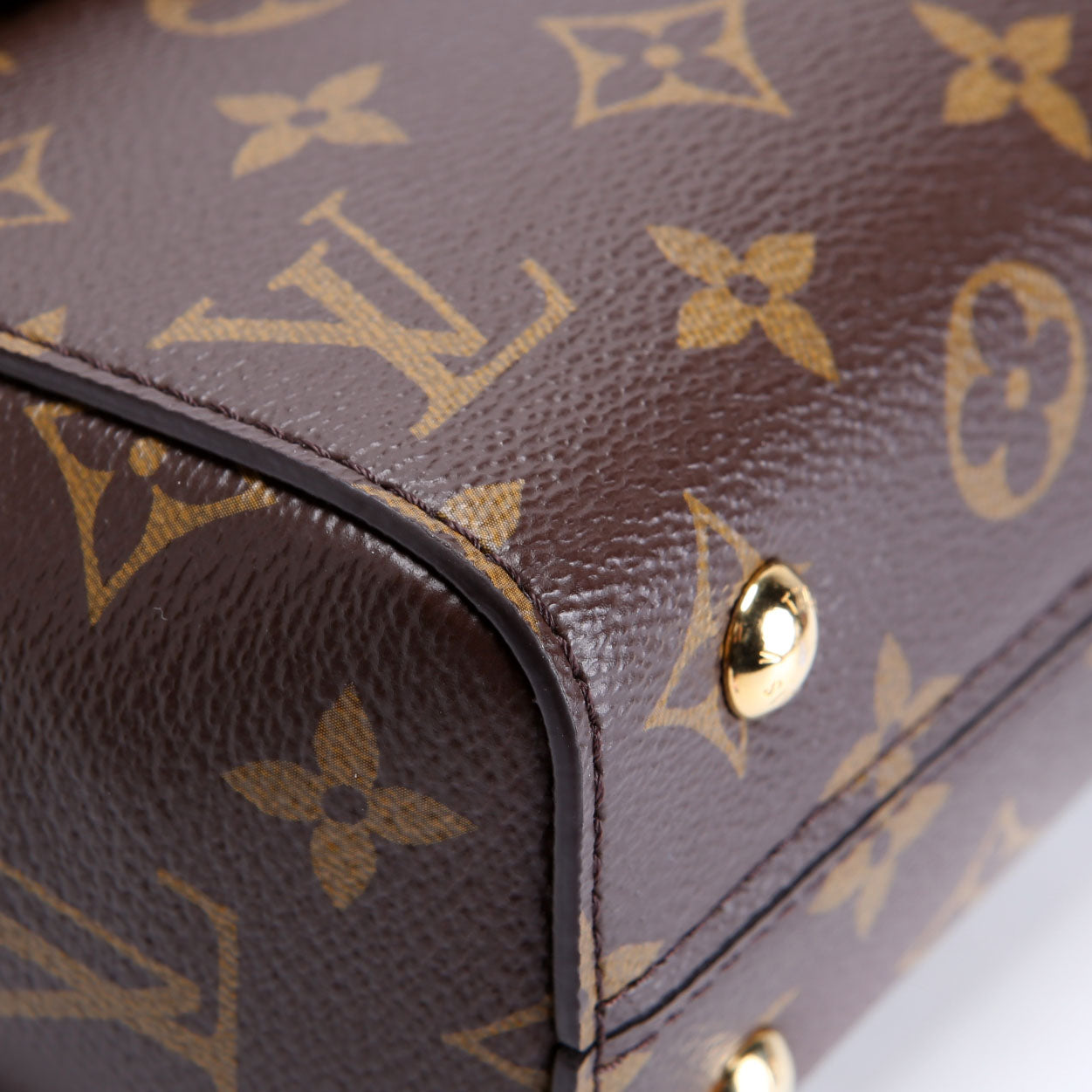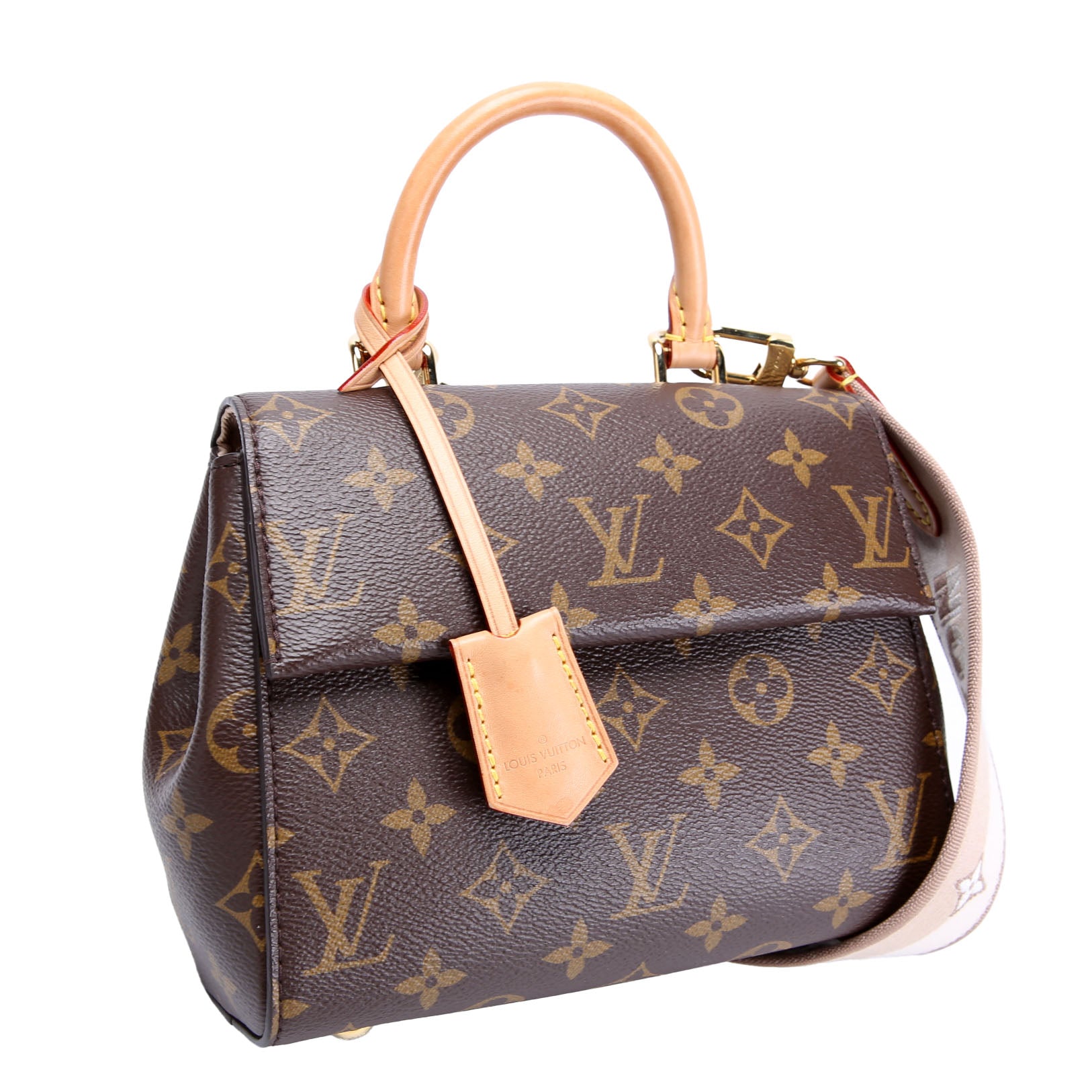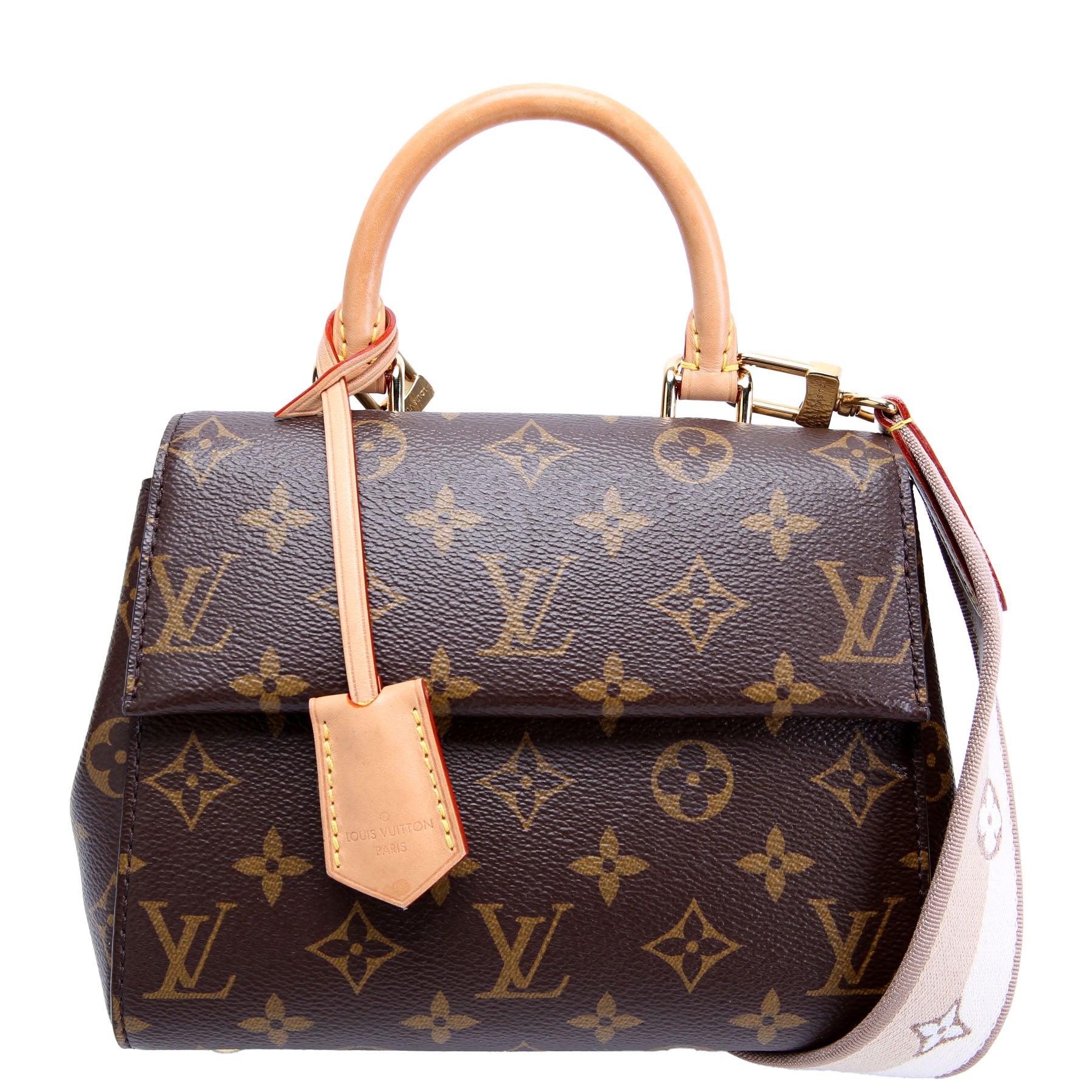 This pre-owned Louis Vuitton Cluny Mini is guaranteed 100% authentic. The exterior is in the classic Louis Vuitton Monogram coated canvas.
