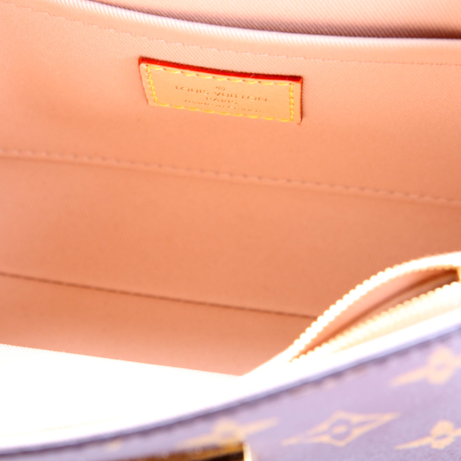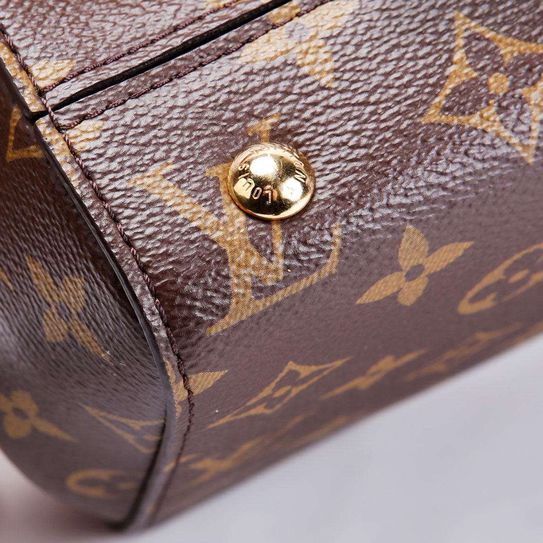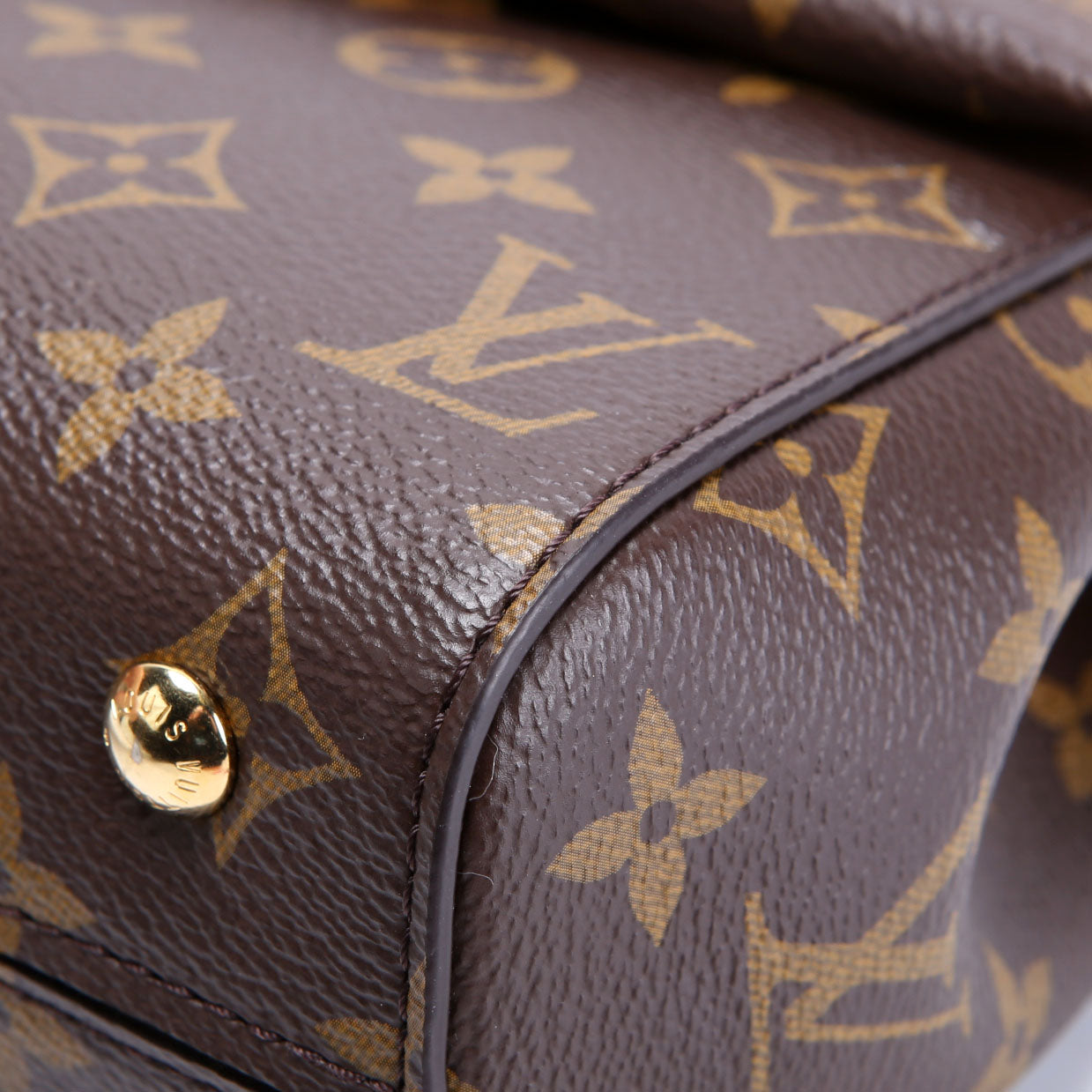 This pre-owned Louis Vuitton Cluny Mini is guaranteed 100% authentic. The exterior is in the classic Louis Vuitton Monogram coated canvas.