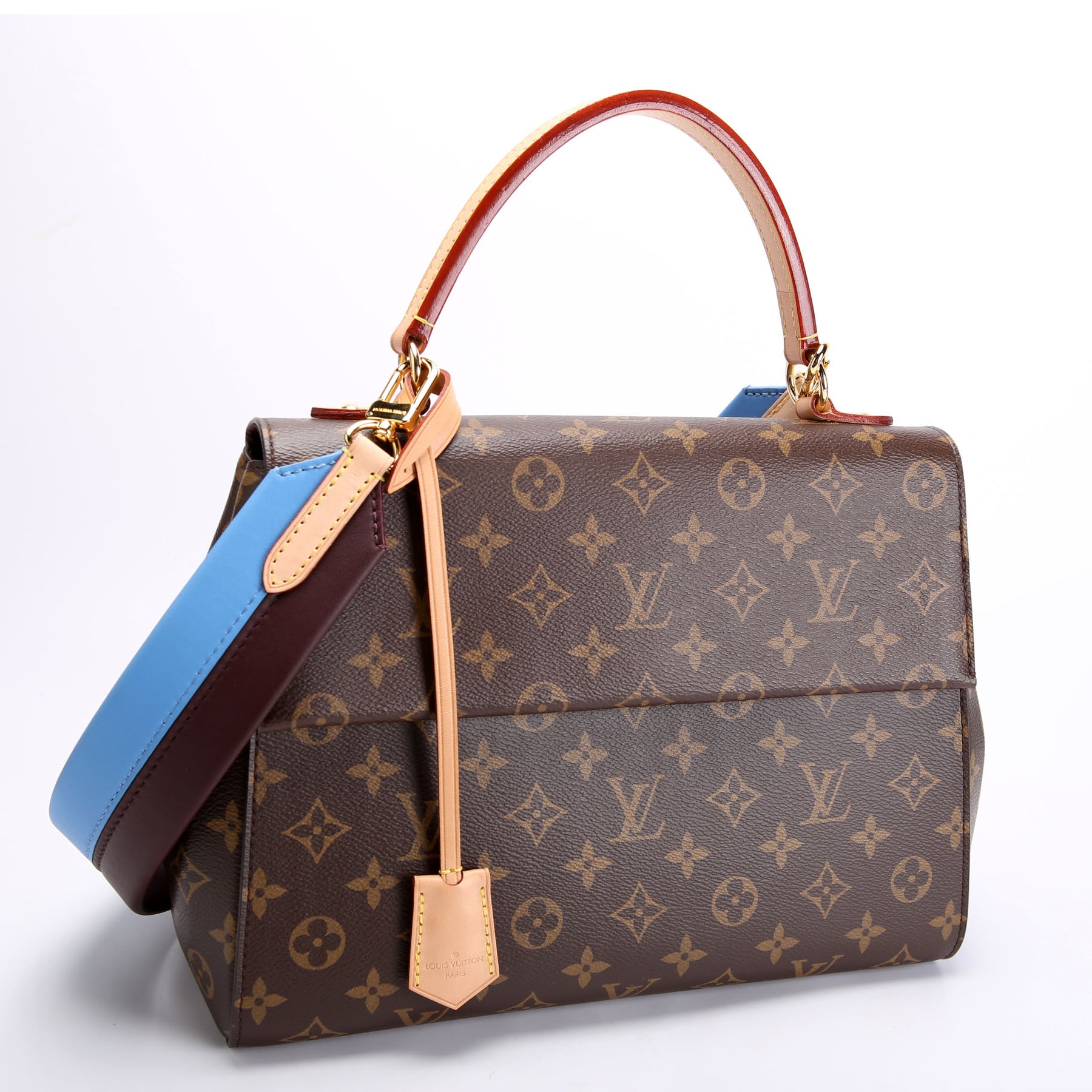 This pre-owned Louis Vuitton Cluny MM is guaranteed 100% authentic. The exterior is in the classic Louis Vuitton Monogram coated canvas.