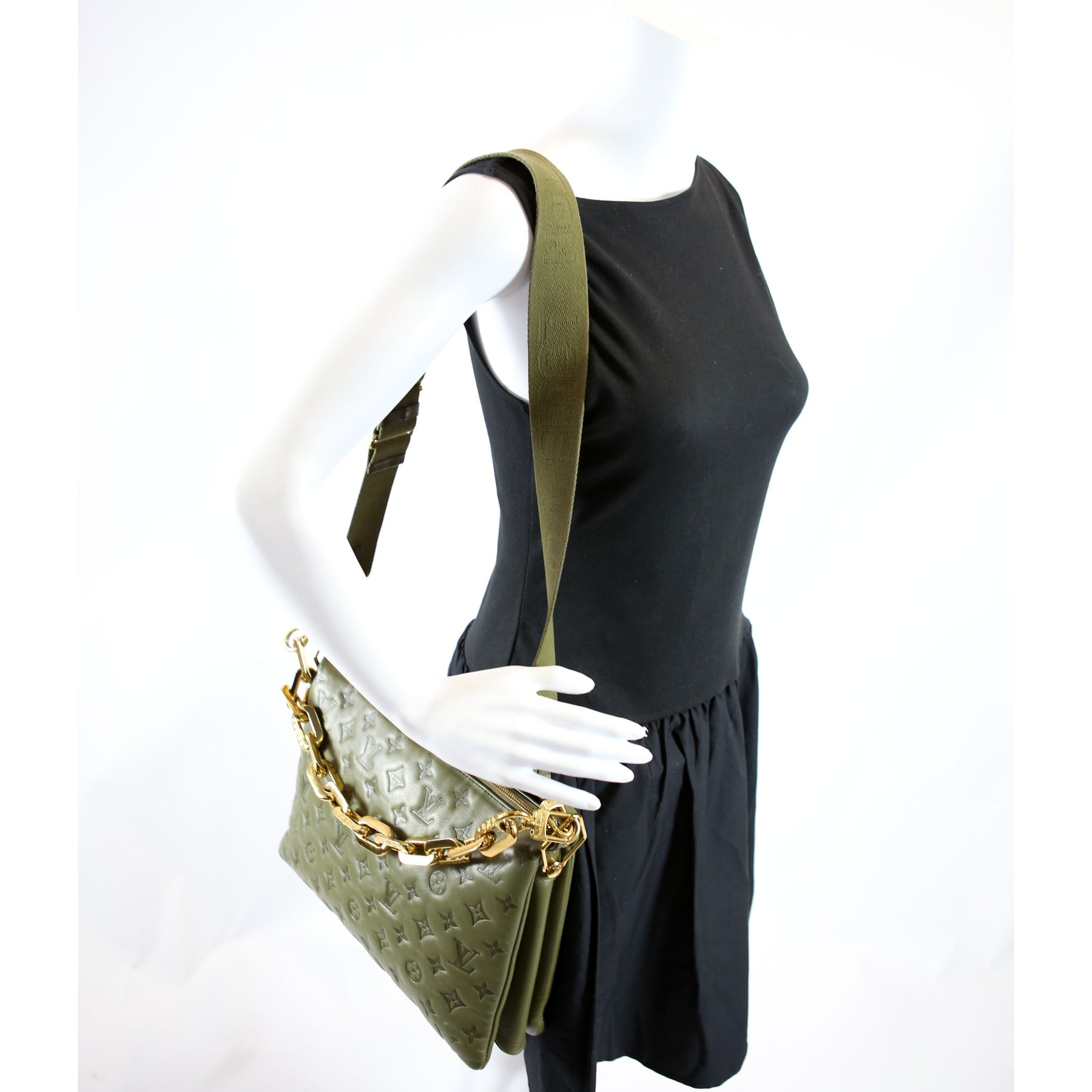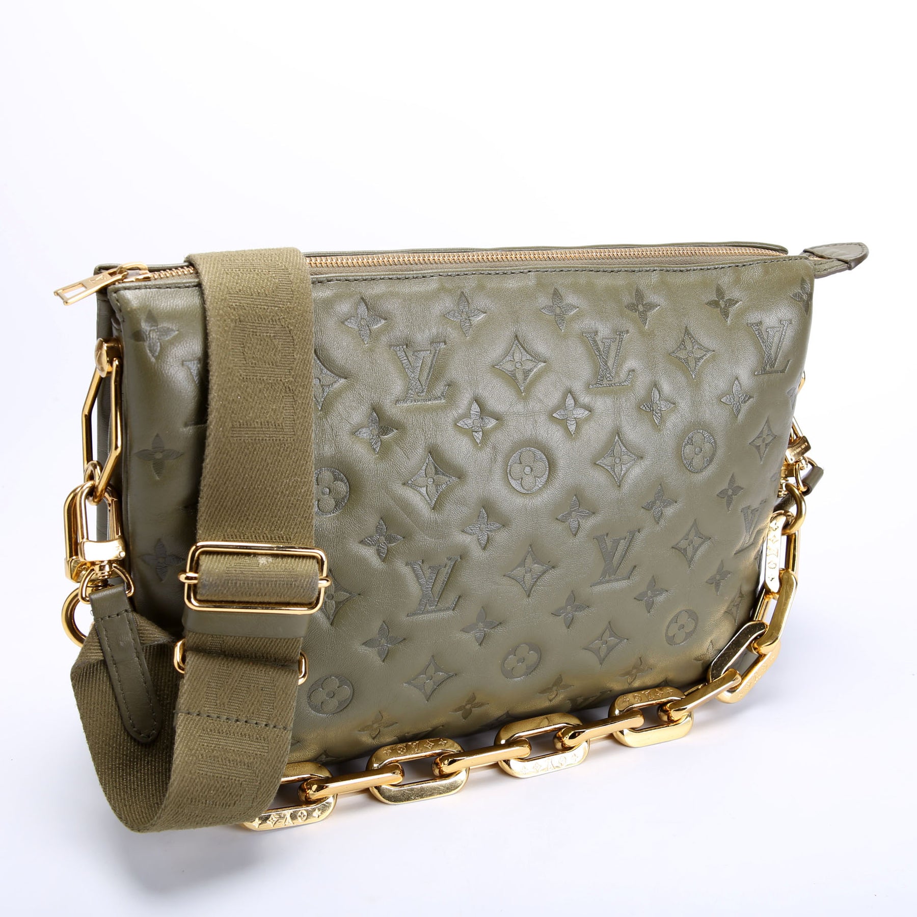 This pre-owned Louis Vuitton Coussin MM Lambskin is guaranteed 100% authentic.