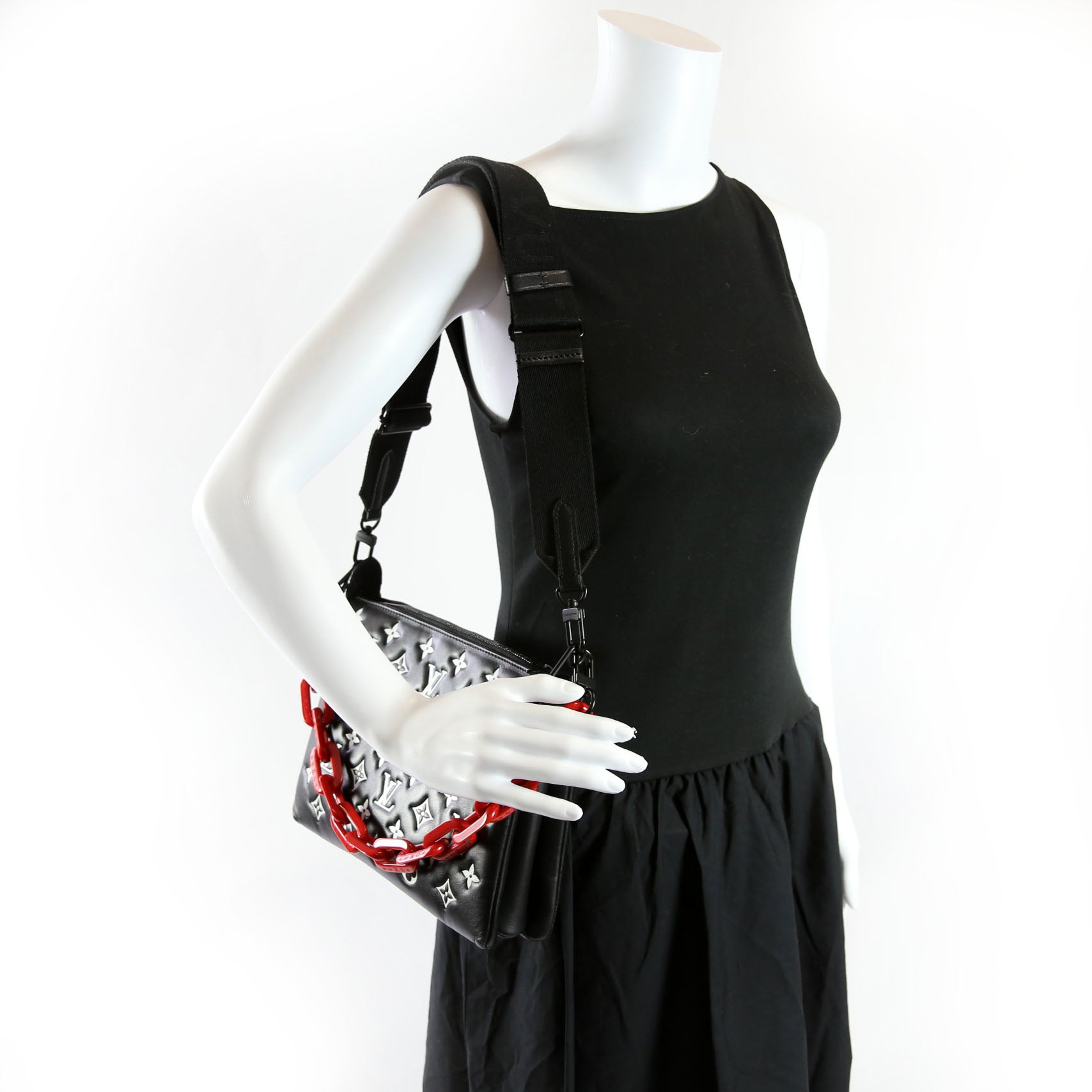 This pre-owned Louis Vuitton Coussin PM is guaranteed 100% authentic. The exterior is in the classic Louis Vuitton lambskin leather.