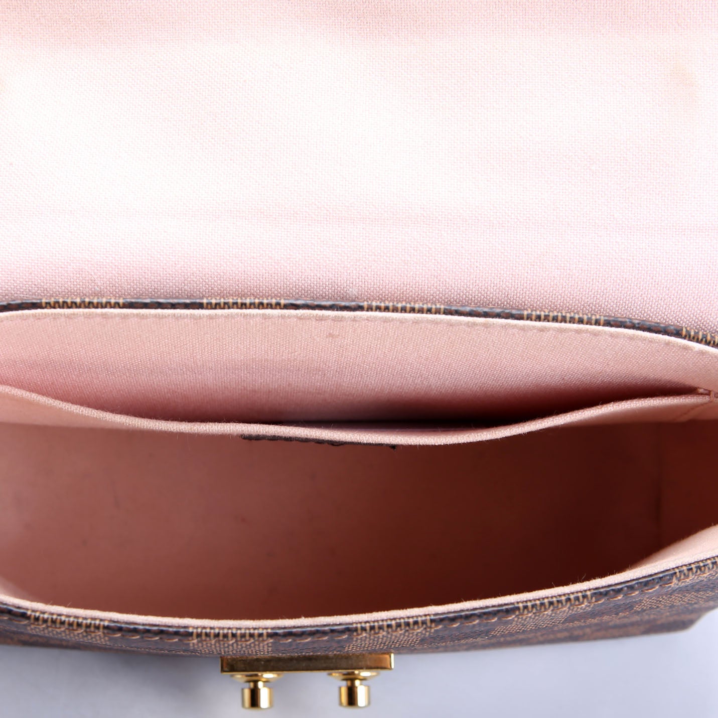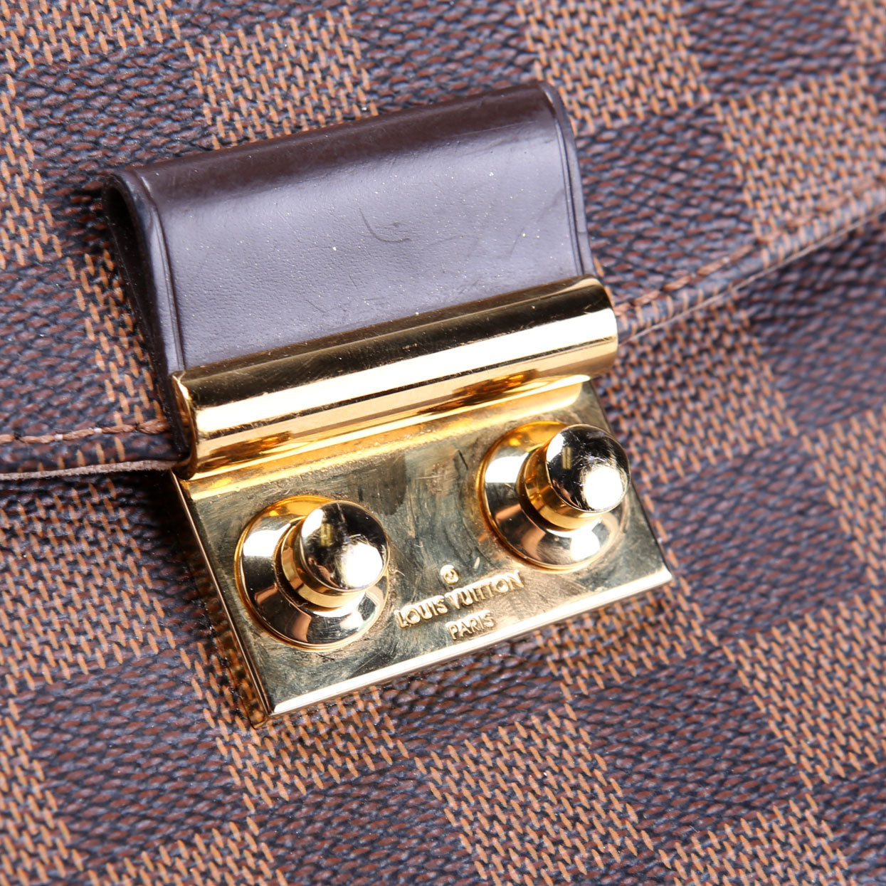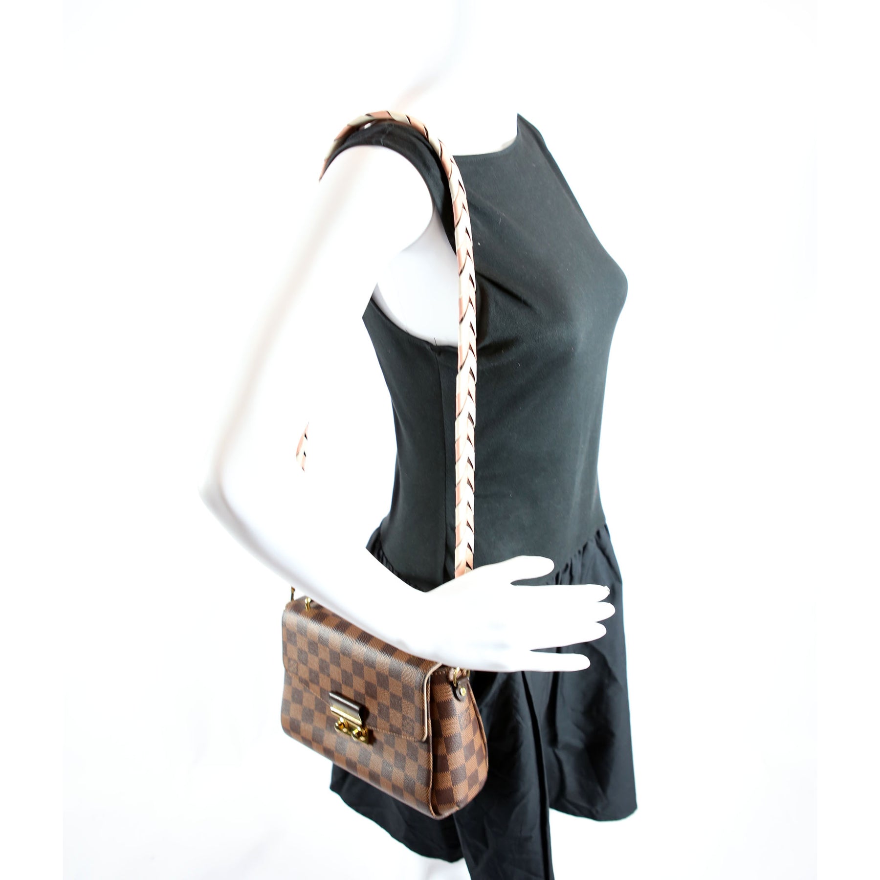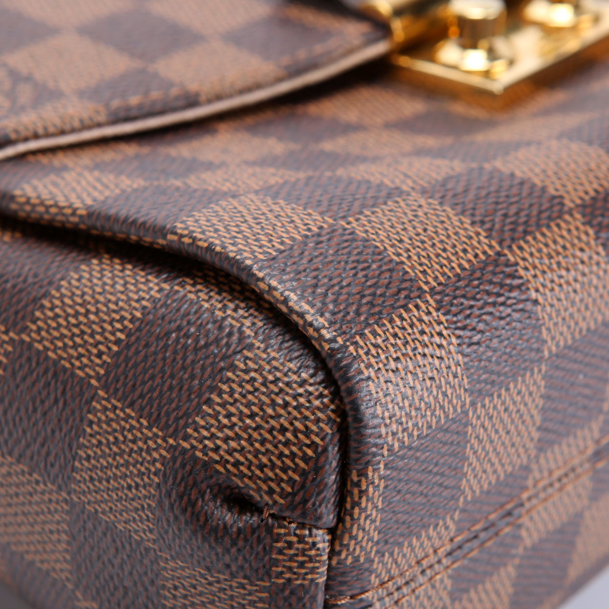 This pre-owned Louis Vuitton Croisette Braided Ebene is guaranteed 100% authentic. The exterior is in the classic Louis Vuitton Ebene coated canvas.
