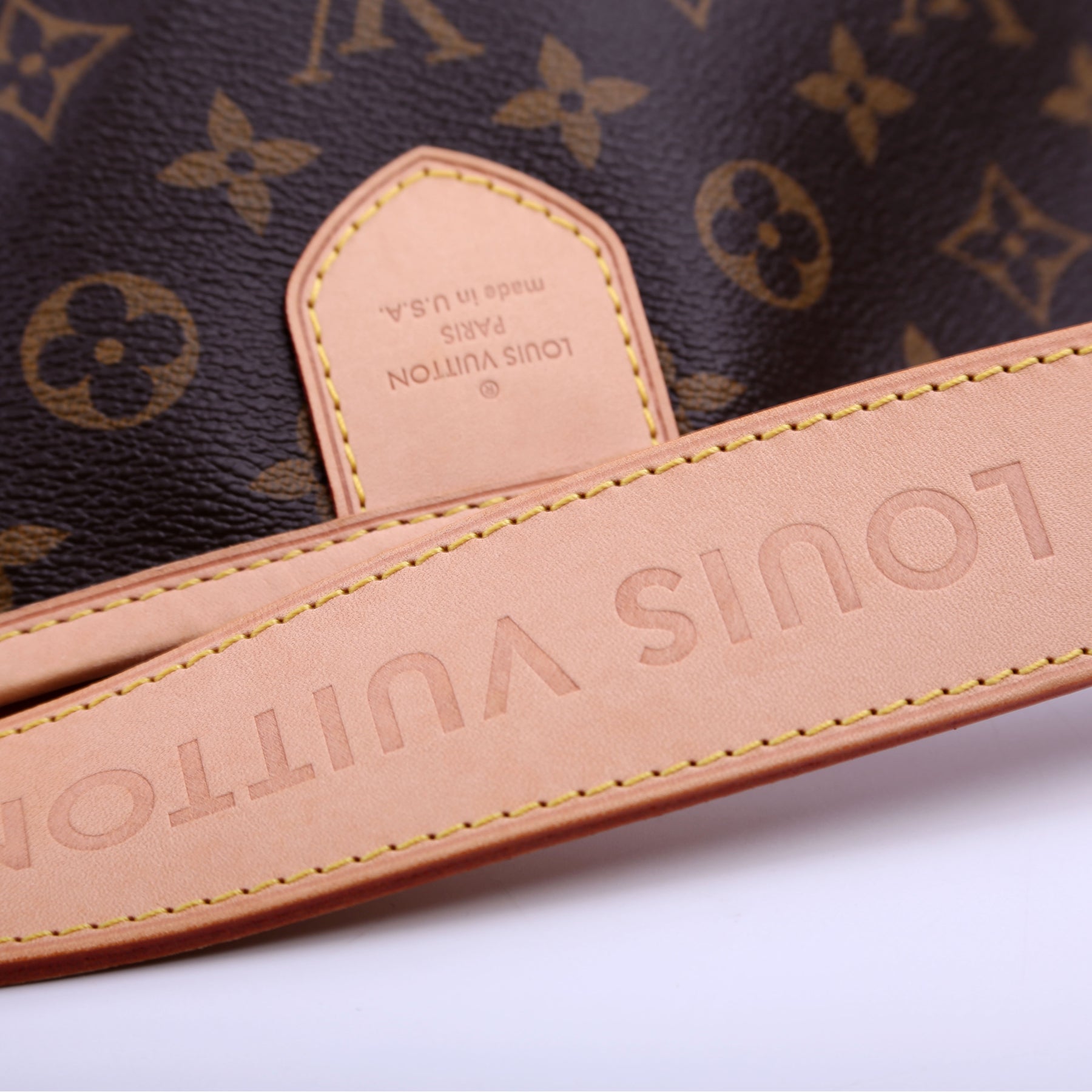 This pre-owned Louis Vuitton Delightful MM is guaranteed 100% authentic. The exterior is in the classic Louis Vuitton Monogram coated canvas.
